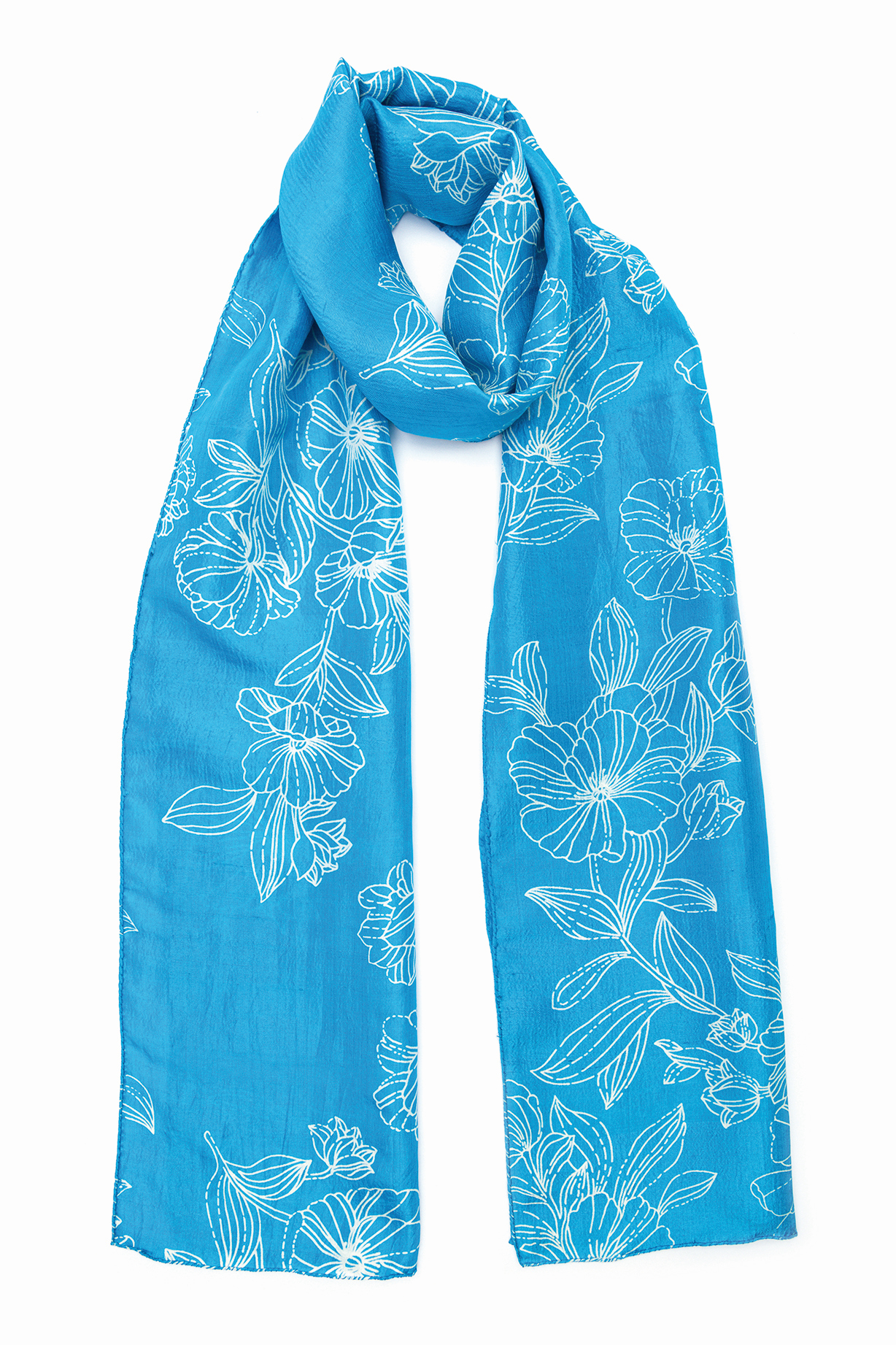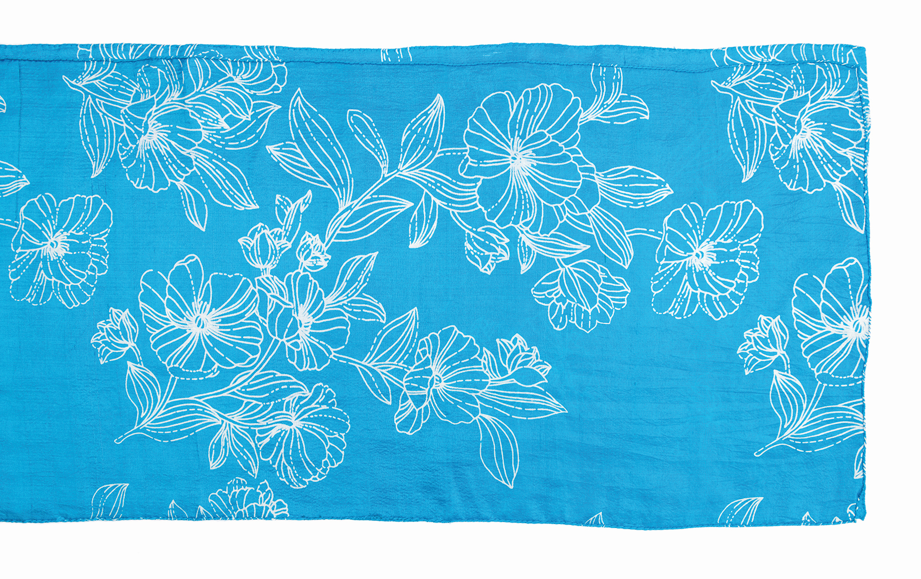 100% Seide, handgewebt und -bedruckt, blau/weiß, 30 x 180 cm