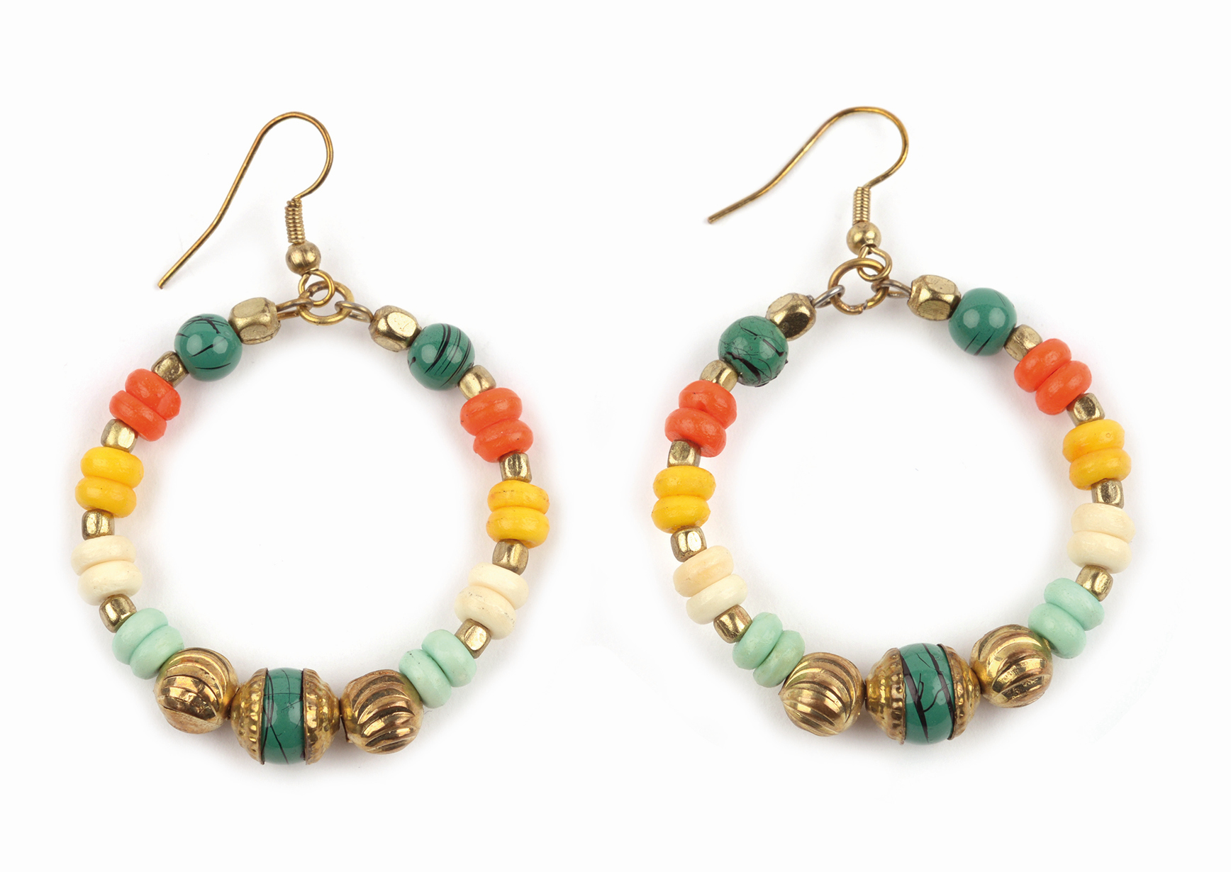 Bein-, Glas-, Messing- und Eisenperlen,, multicolor,, L 6 cm, Ø 4 cm