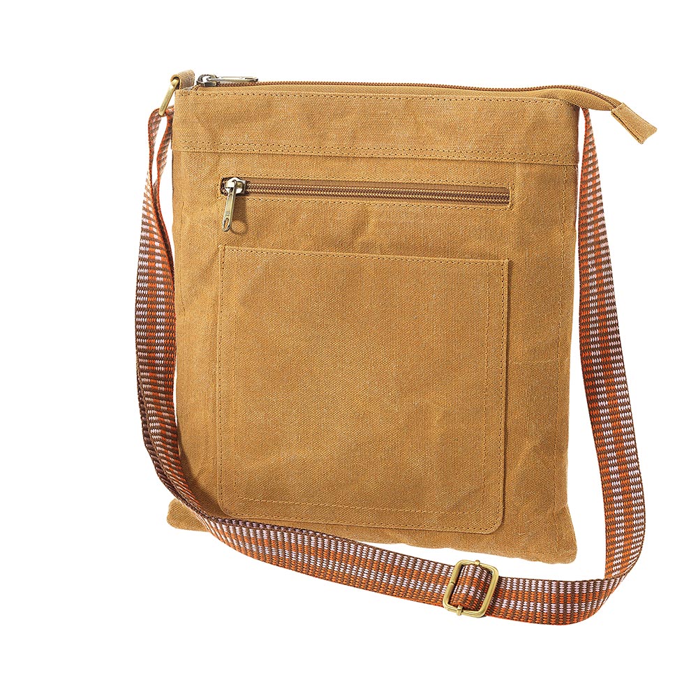 Umhängetasche, mit Reißverschluss innen und außen, kleine Innentasche, verstellbarer Tragegurt, Außenseite gewachstes Bio-Canvas, 28x26