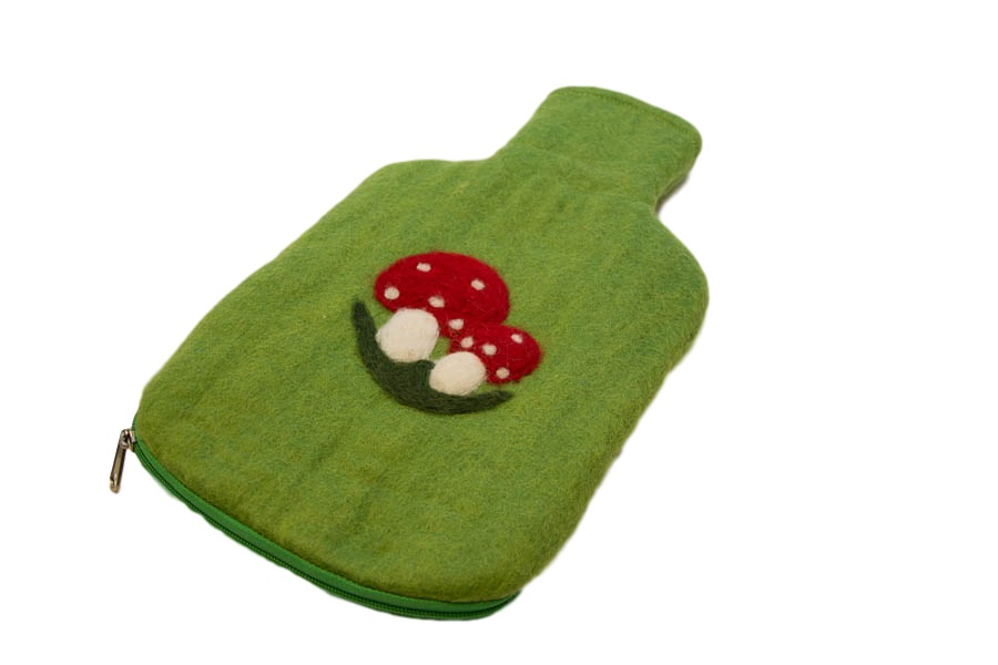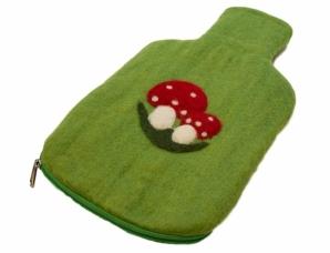 Waermflaschenueberzug, gross, Roter Pilzkopf / Gruen