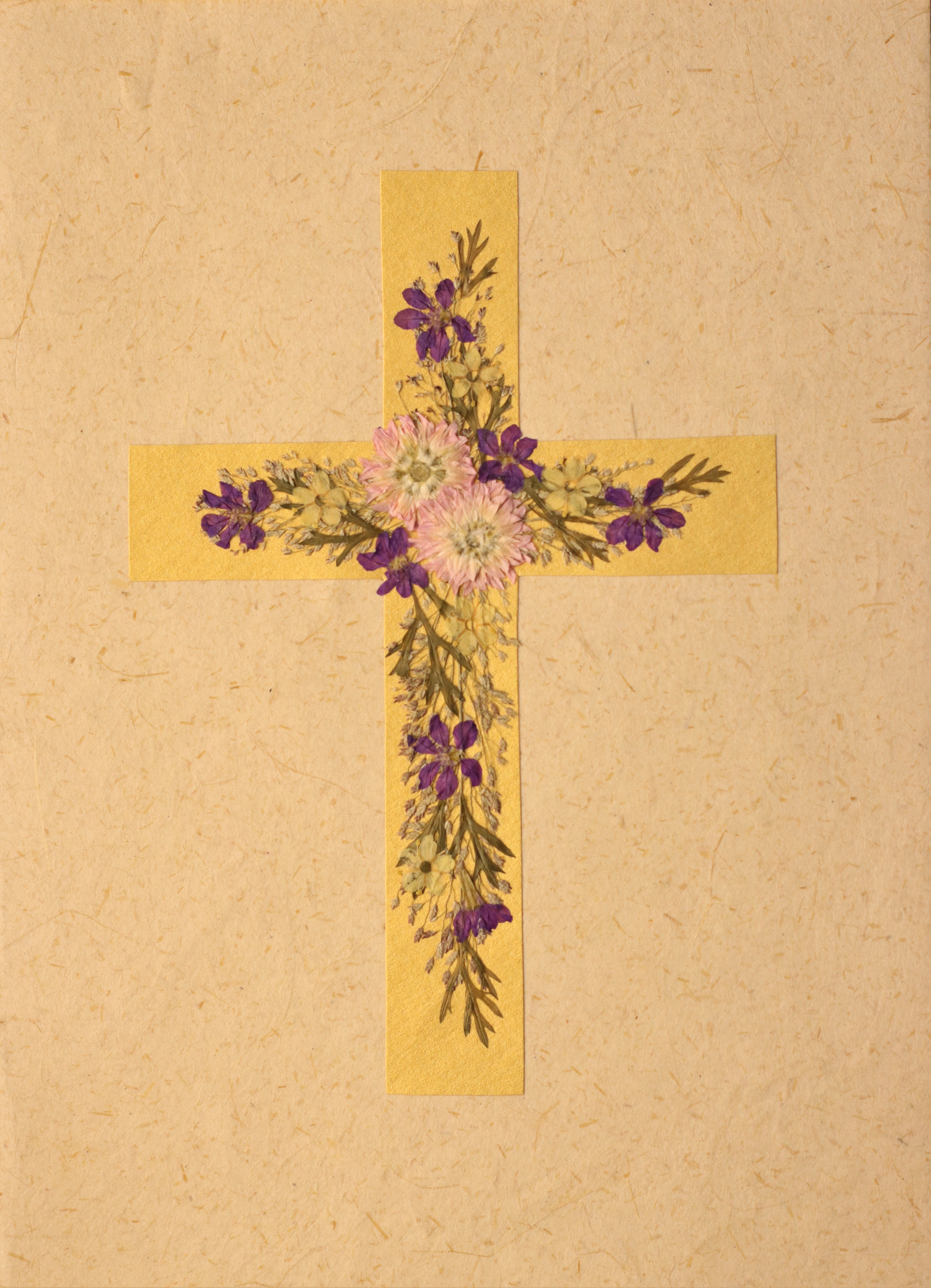 Doppelkarte mit Umschlag, mit Blüten und Applikationen, natur, 12 x 17 cm