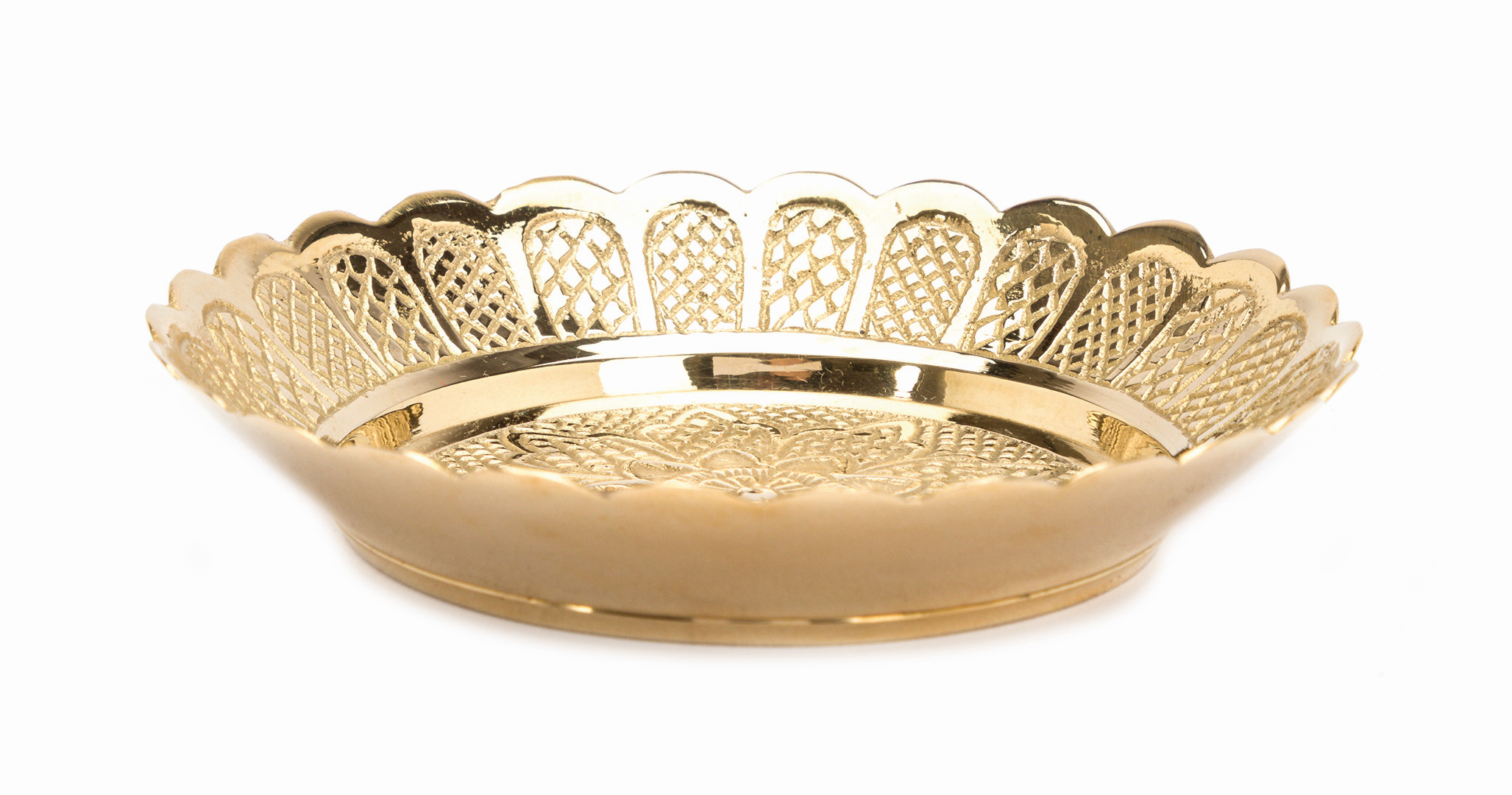 geeignet als Kerzenteller oder als Schmuckablage, Aluminium, gold, Ø 11 cm, H 2 cm