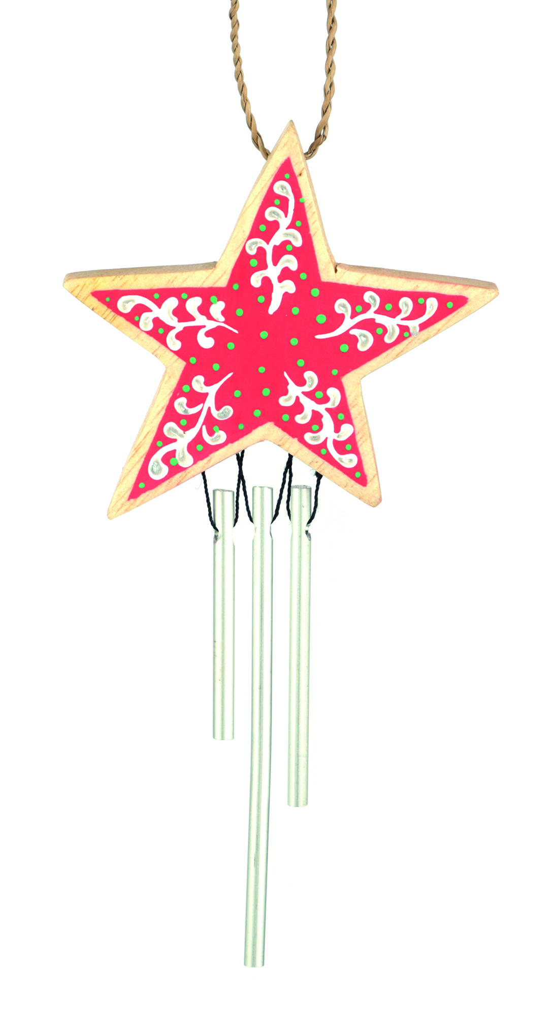 handbemalt, Albesia-Holz und Aluminium, natur/rot/weiß, 8 x 15,5 cm