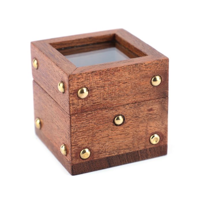 Akazien-Holz, Messing-Einlagen, 5 x 5 x 5 cm
