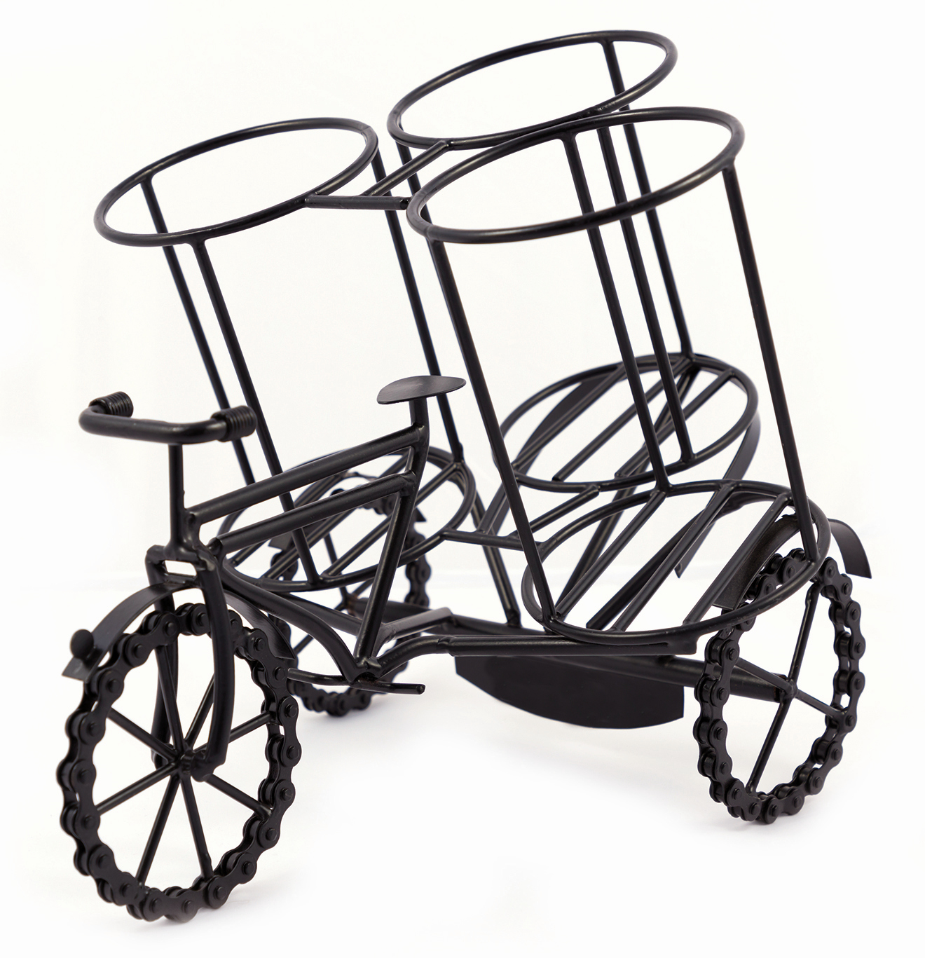 für 3 Flaschen, Eisen mit Pulverbeschichtung, schwarz, 34 x 24 x 26 cm
