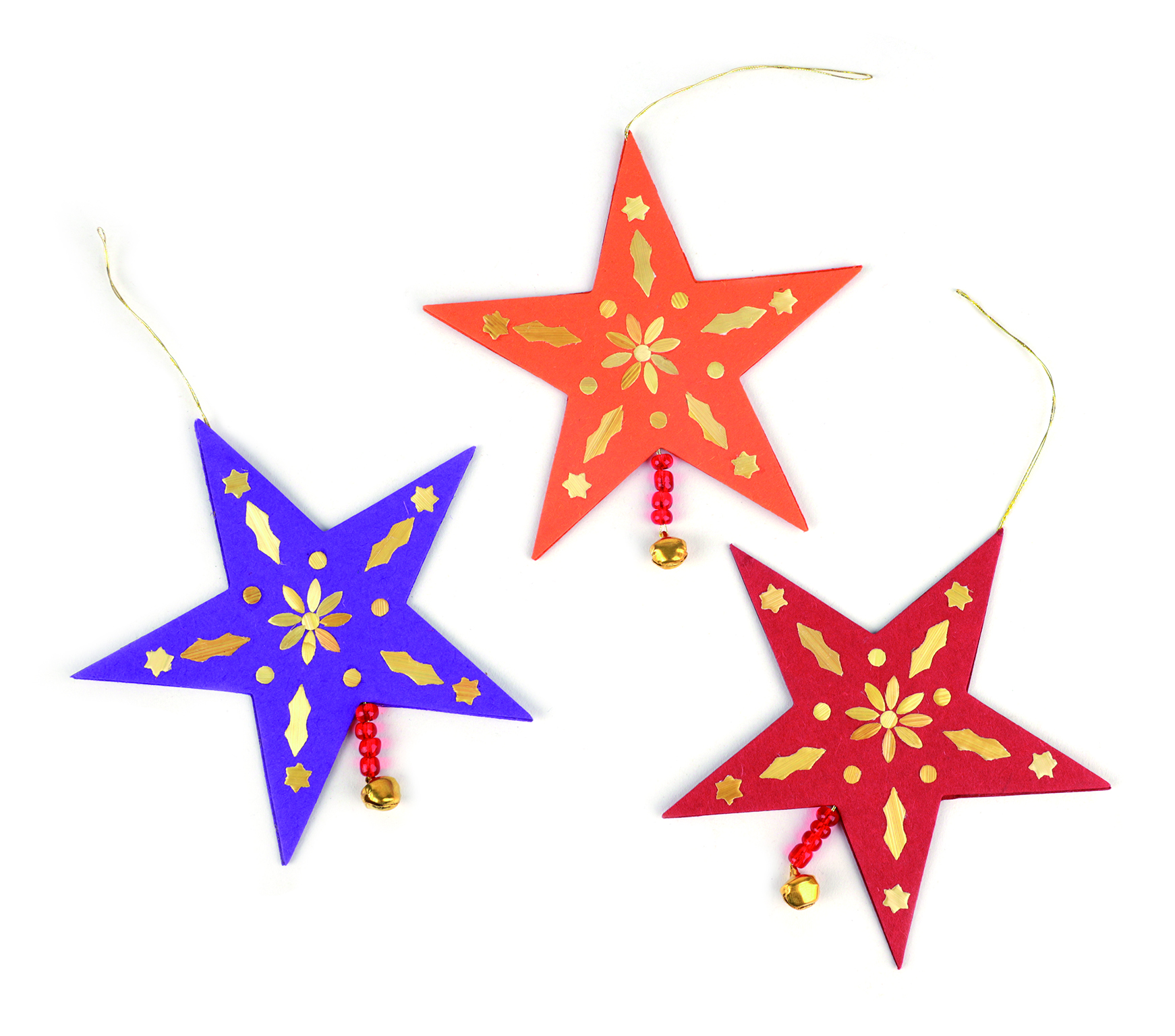 handgeschöpftes Papier mit Strohapplikation, und Glöckchen aus Metall, orange, rot und lila, Ø 8 cm