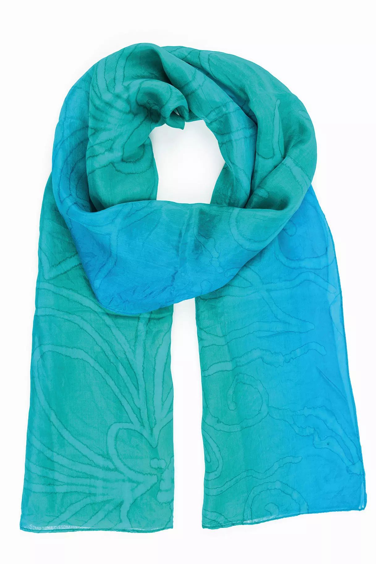 handbemalt, 100% Seide, Batik, türkis/blau, 50 x 180 cm