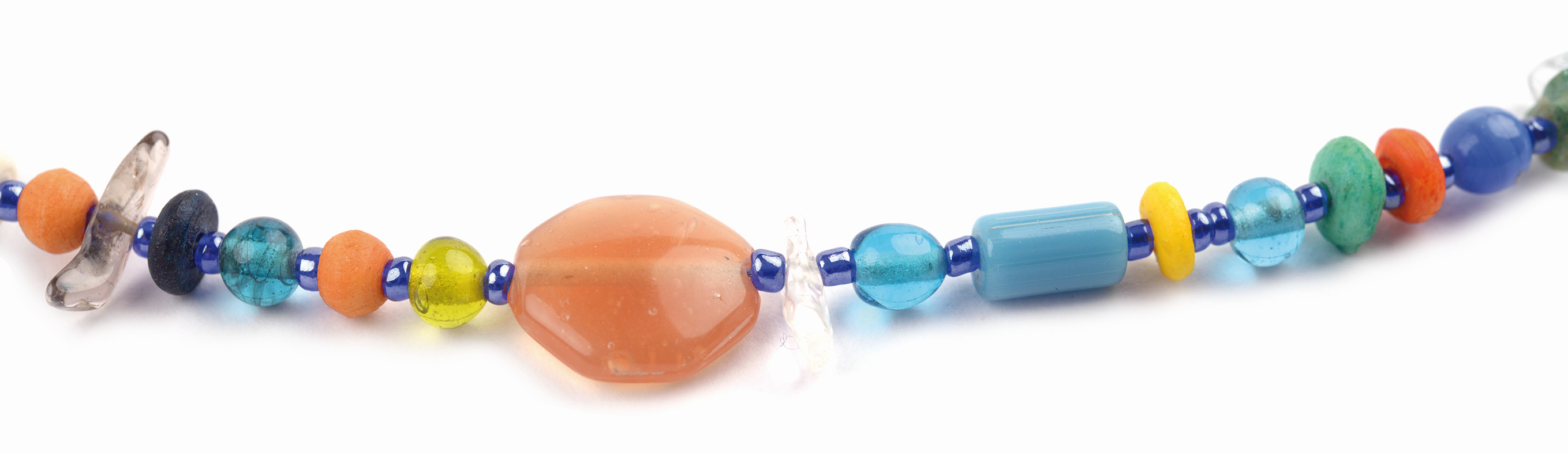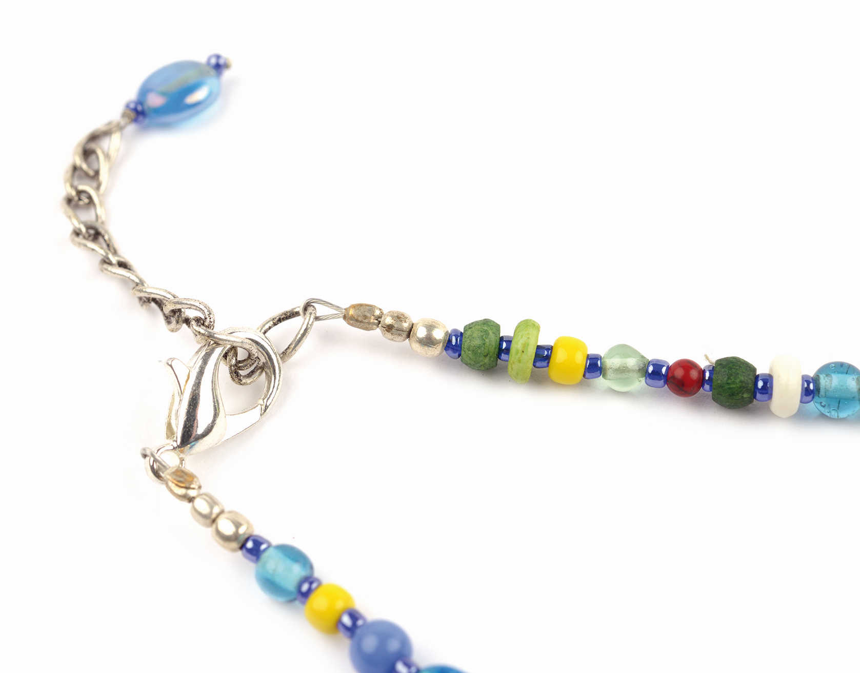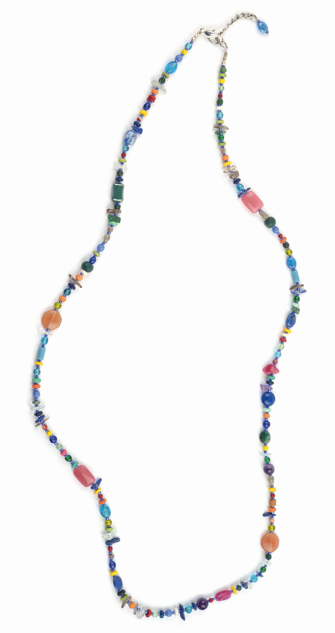 verschiedene Schmucksteine, Glasperlen und Bein, multicolor, L 35 cm