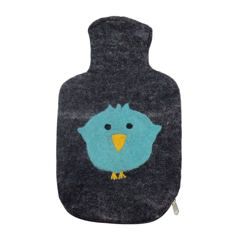 Waermflaschenueberzug Piepmatz (anthrazit) - gross (2,0l)