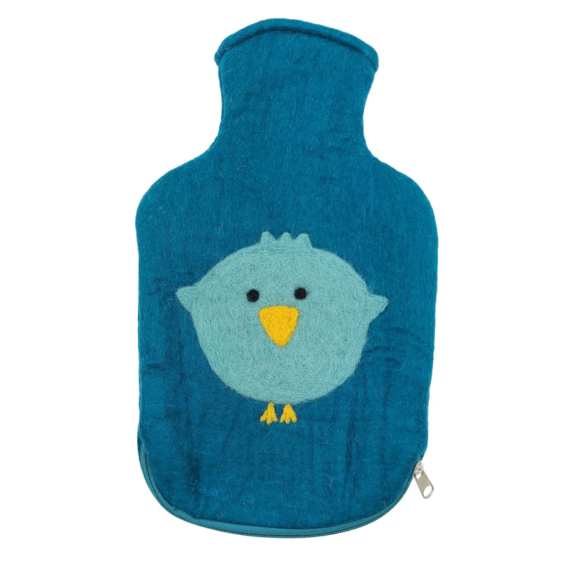 Waermflaschenueberzug Piepmatz (tuerkis) - klein (0,8l)