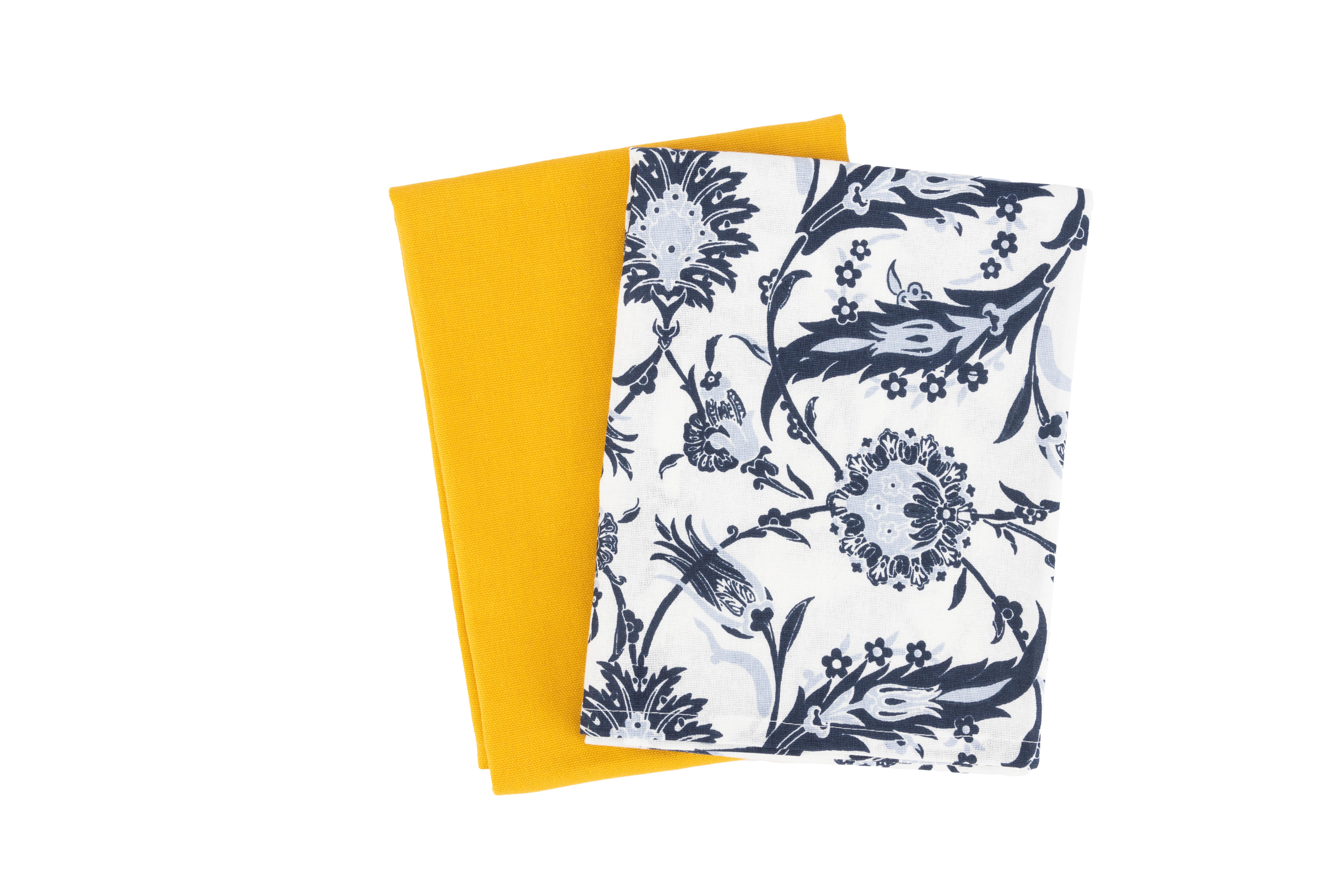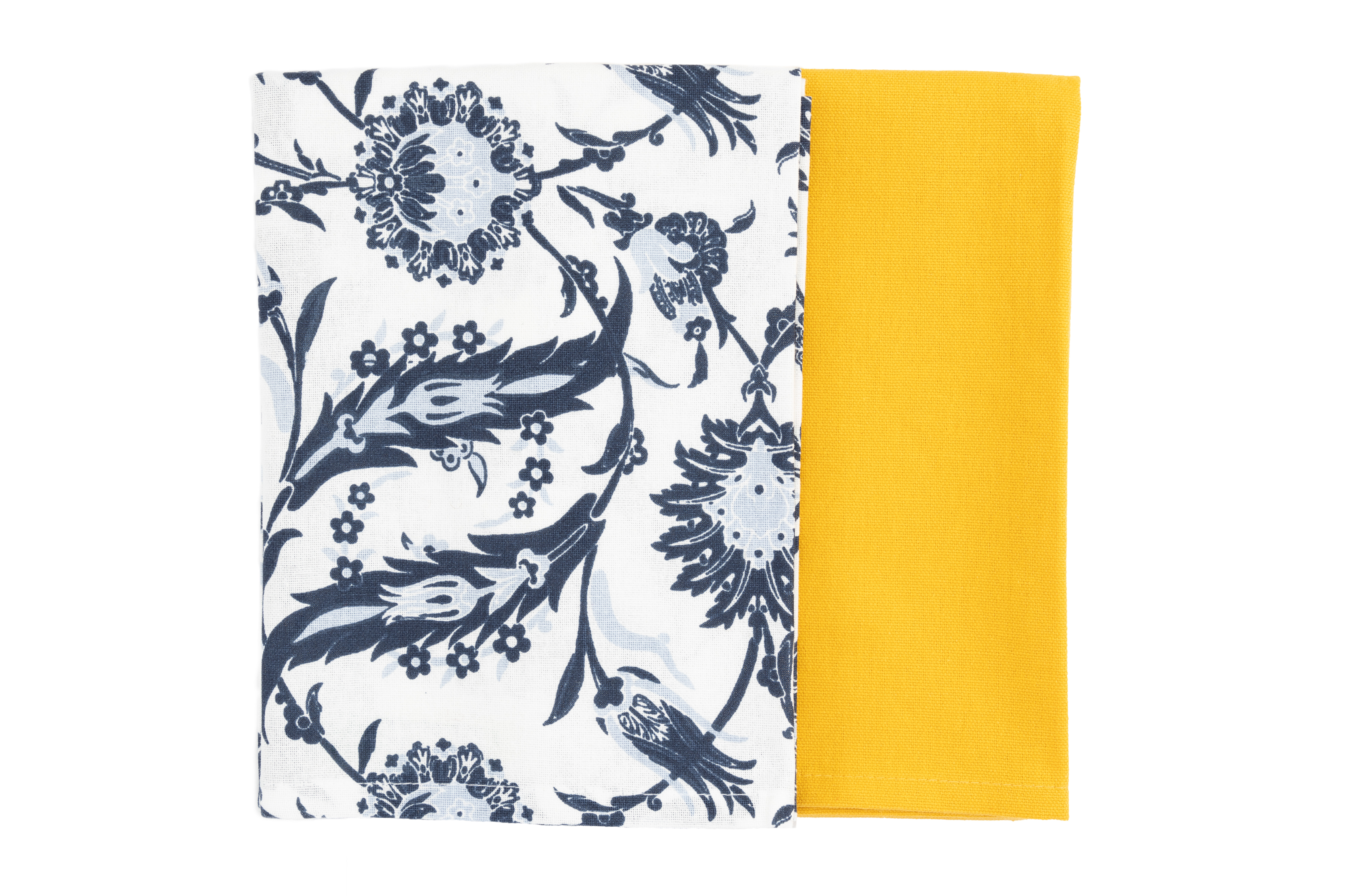 100% Baumwolle, blau/weiß und senfgelb, 50 x 70 cm