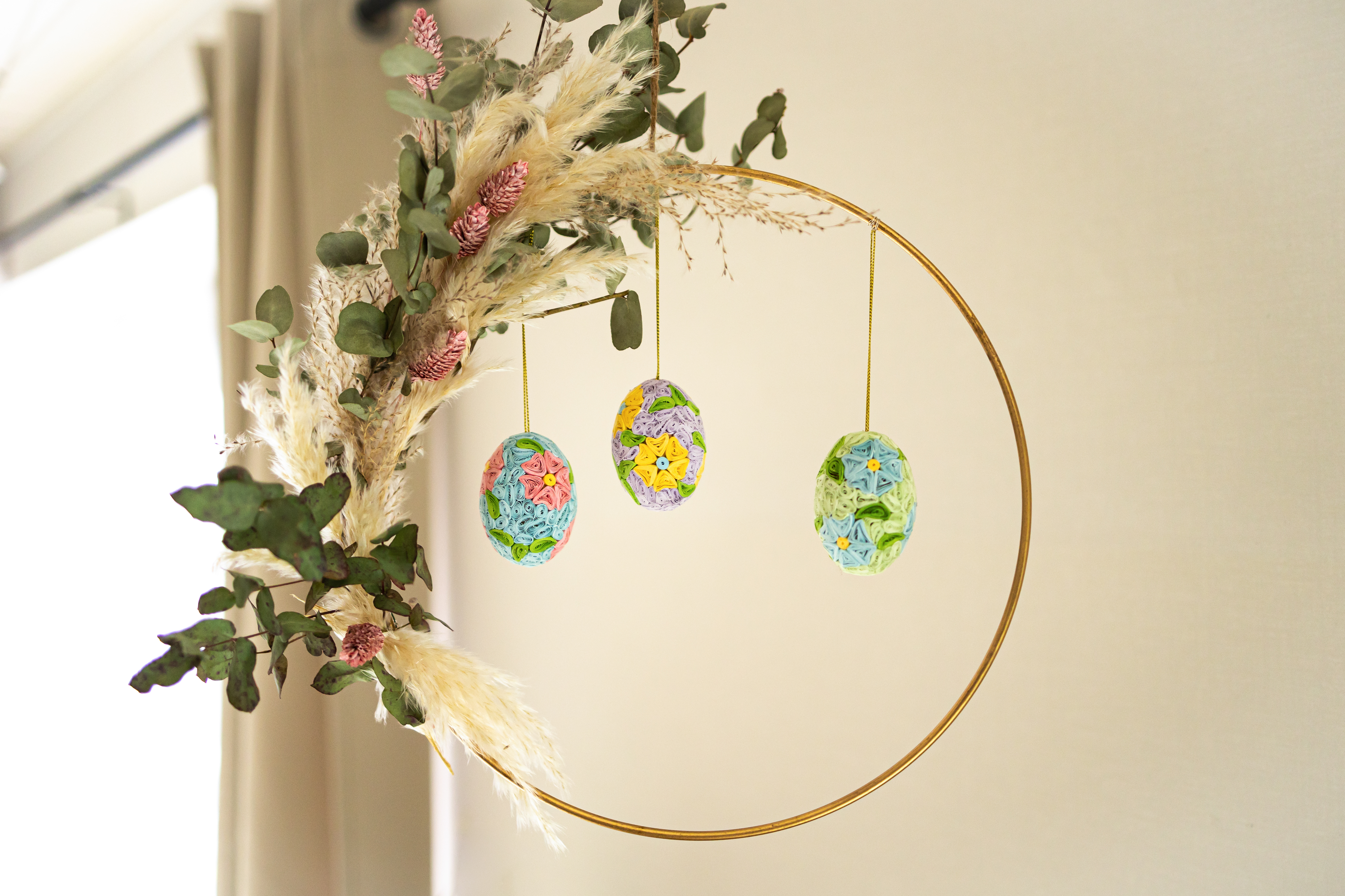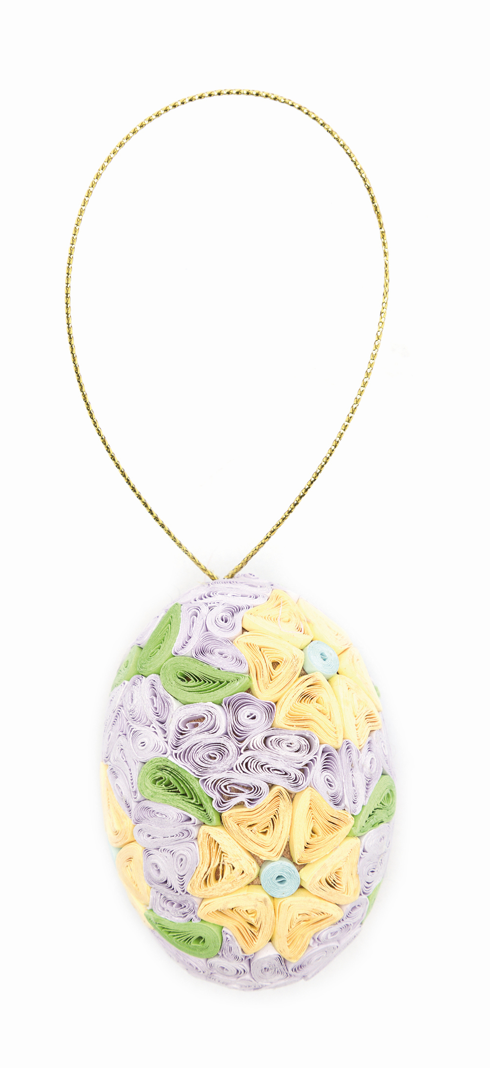 aus kunstvoll gerolltem Papier, lila/hellblau/gelb, H 5,5 cm