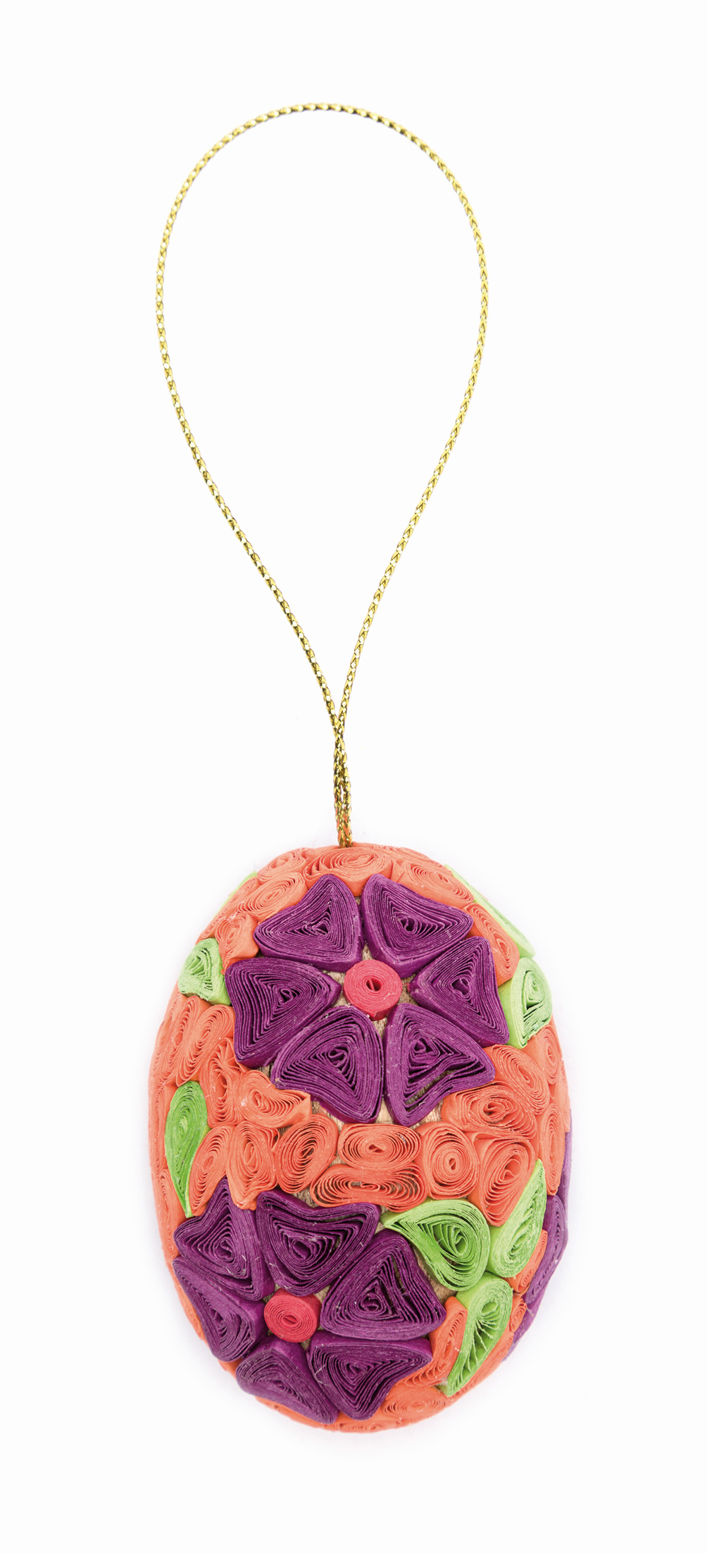 aus kunstvoll gerolltem Papier, orang/lila/grün, H 5,5 cm
