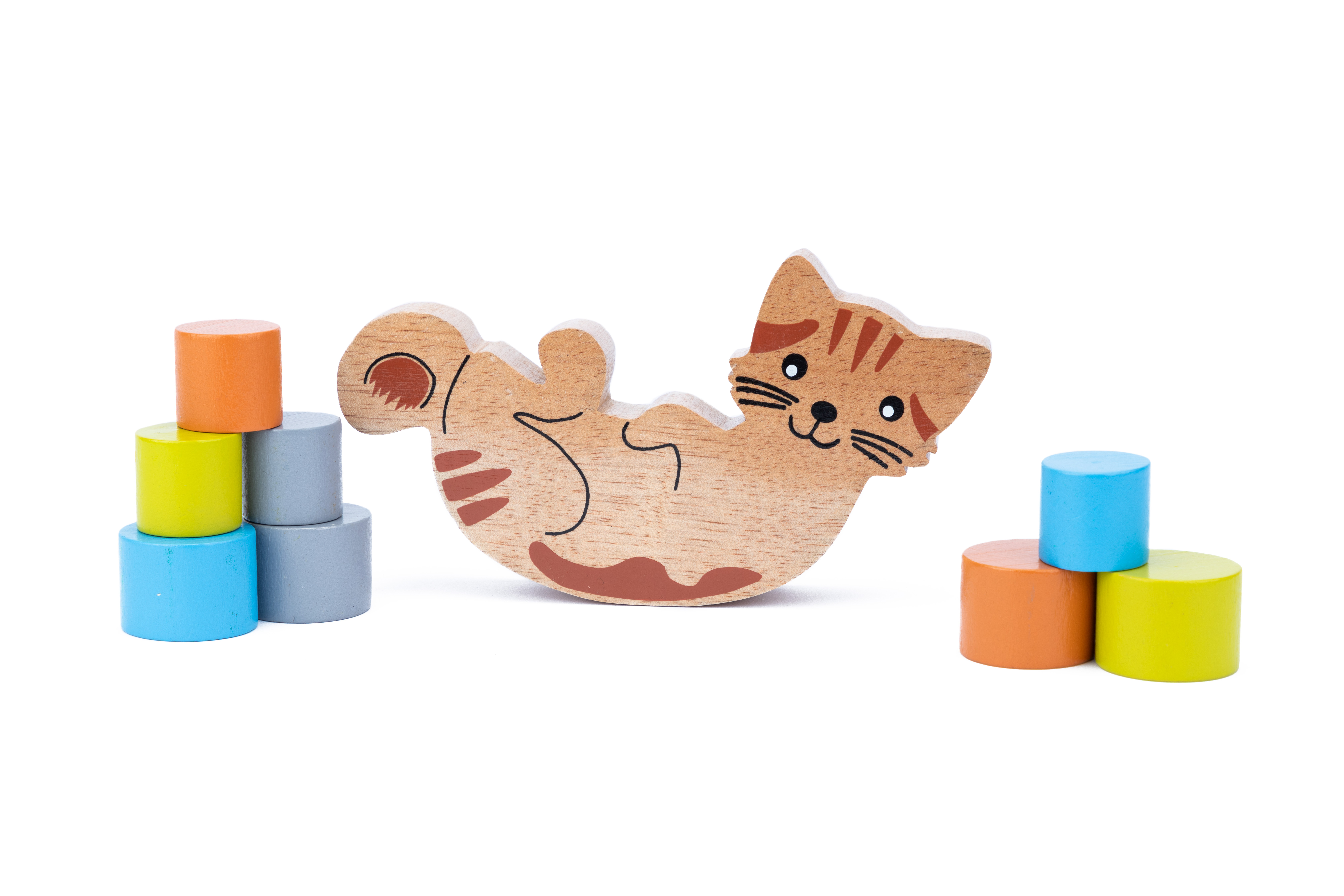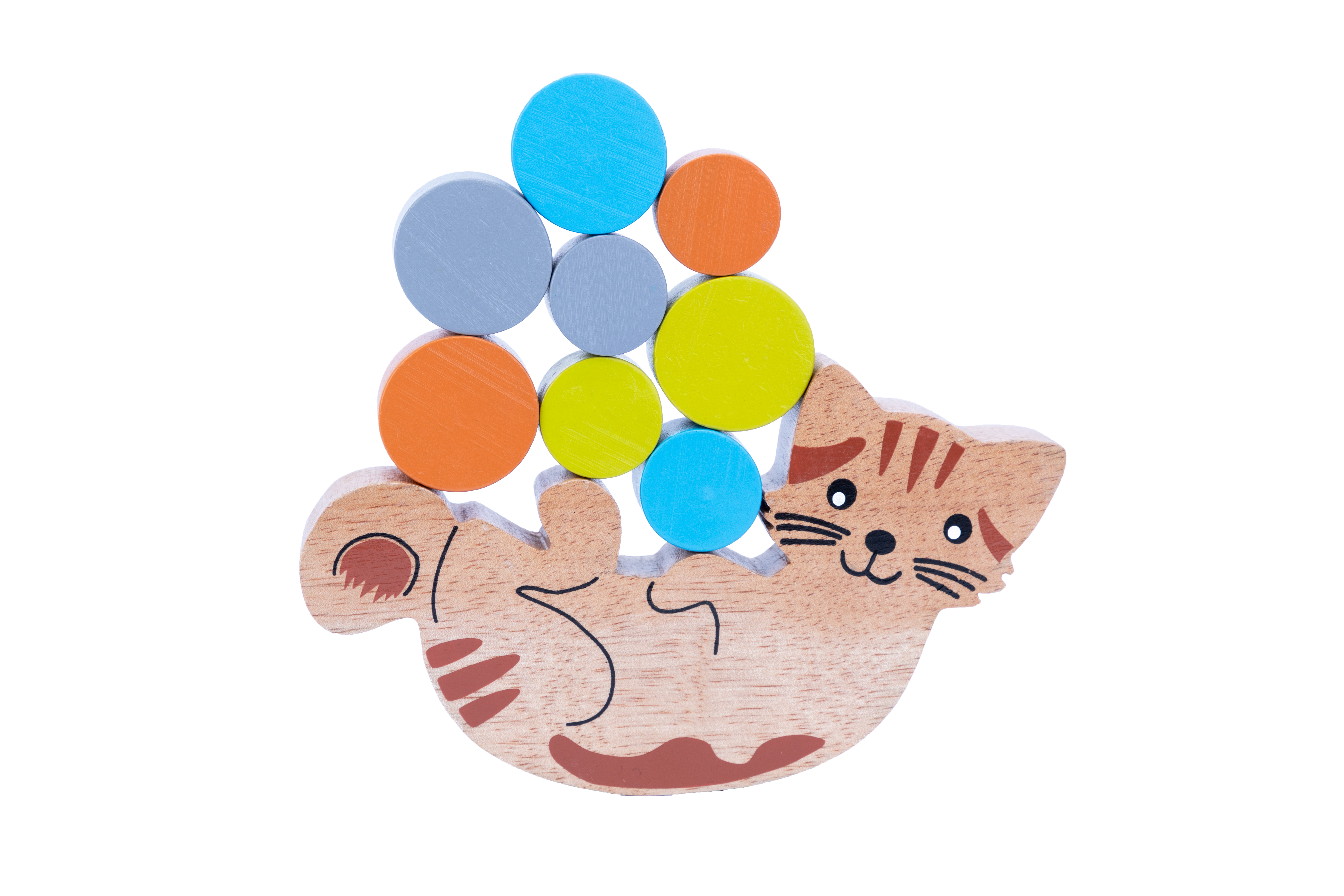 mit 8 bunten Bällen zum Stapeln, 9-teilig, Kautschuk- und Alstonia-Holz, natur/bunt, L 20 cm