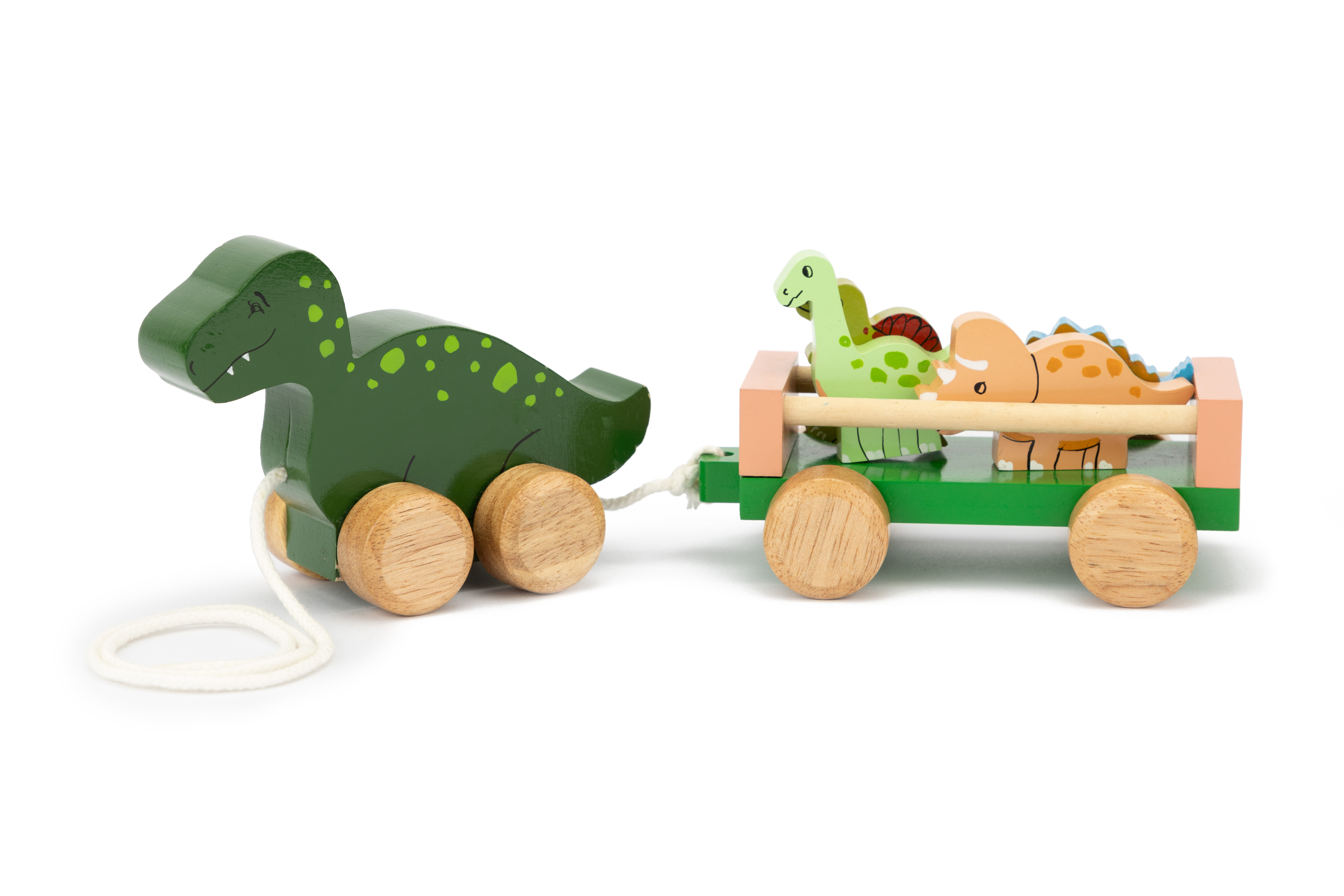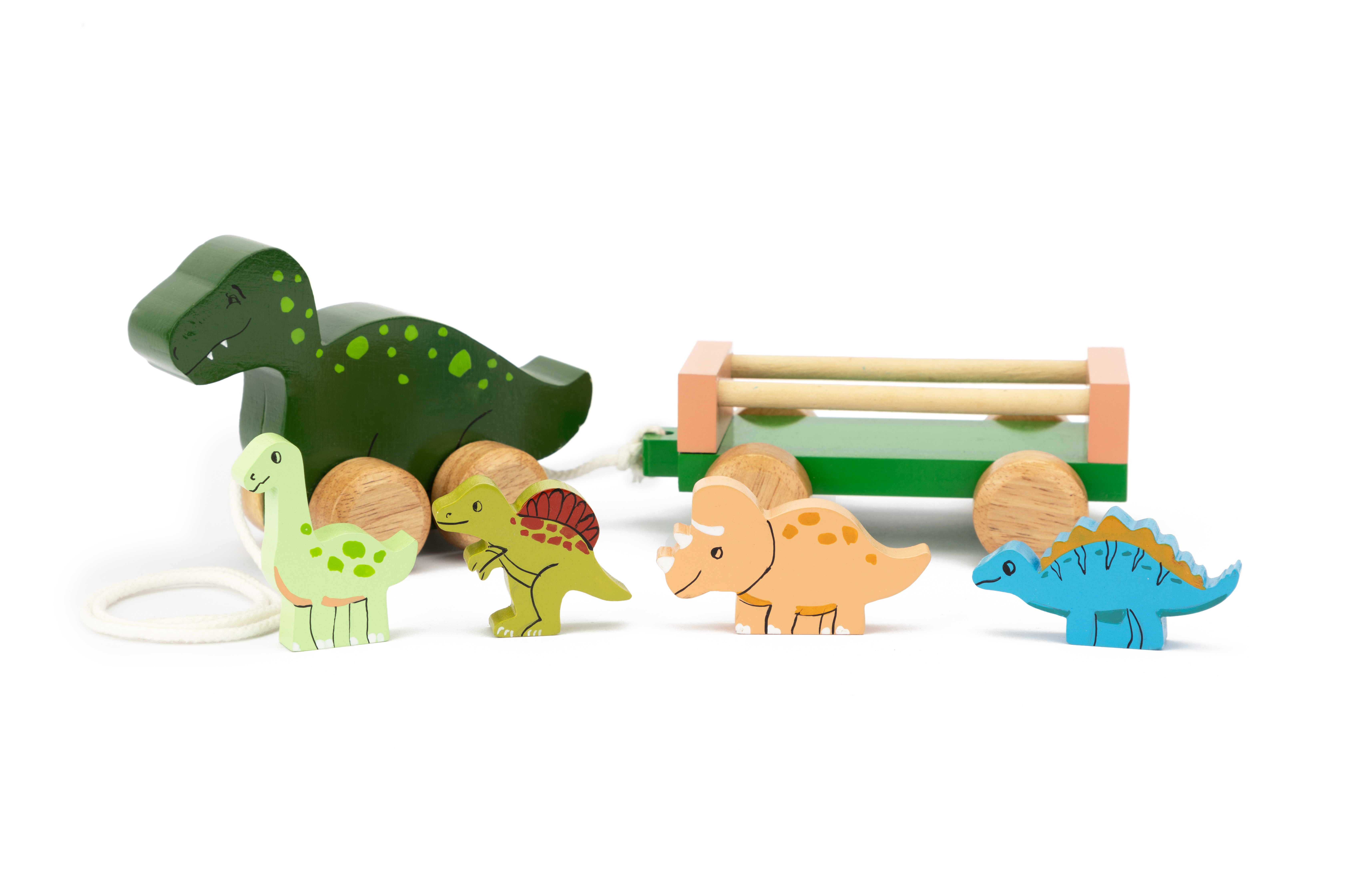 mit Anhänger und verschiedenen Dinos, 6-teilig, Kautschuk- und Alstonia-Holz, grün/bunt, L 33 cm