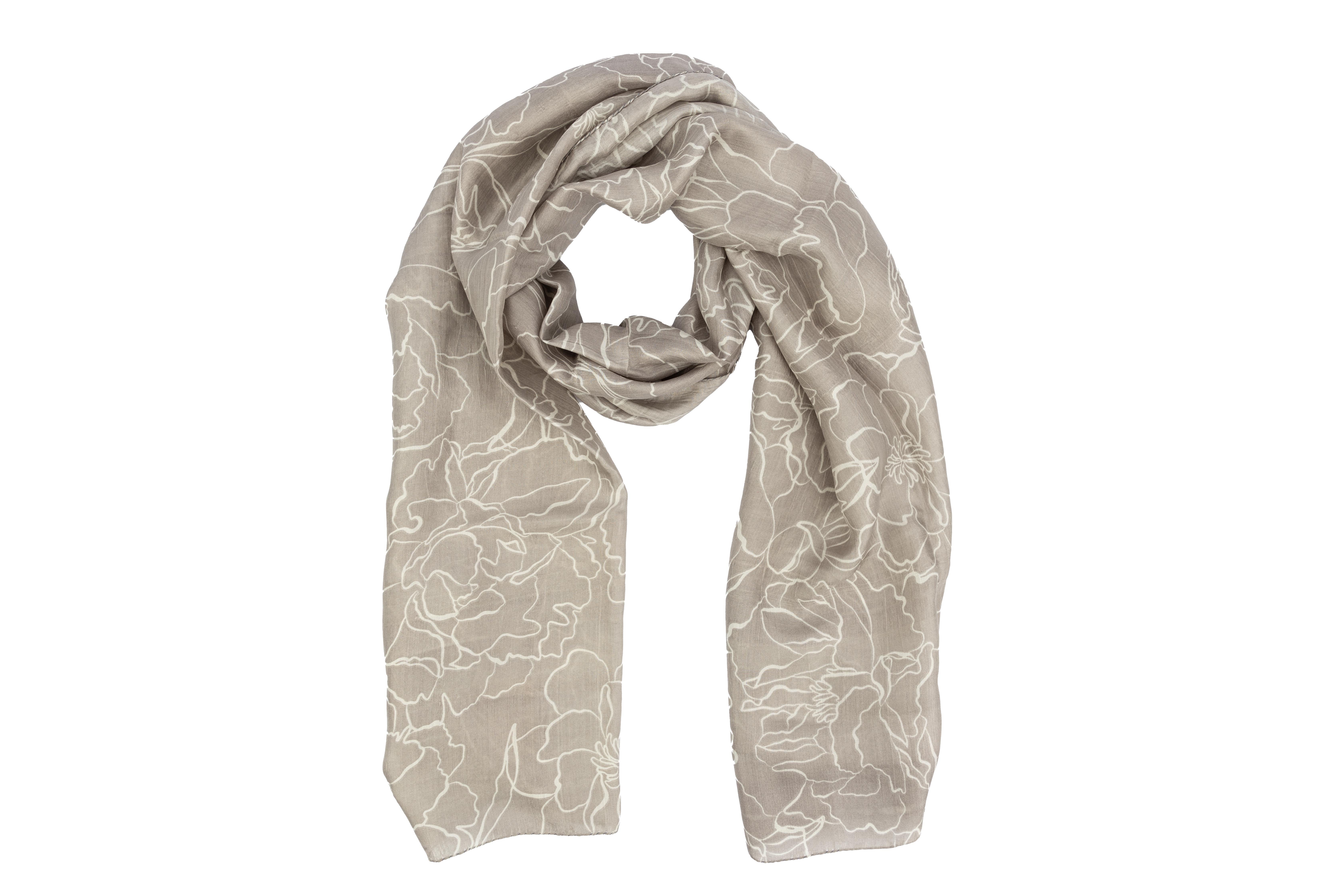 handgewebt und -bedruckt, 100% Seide, grau/weiß, 45 x 180 cm