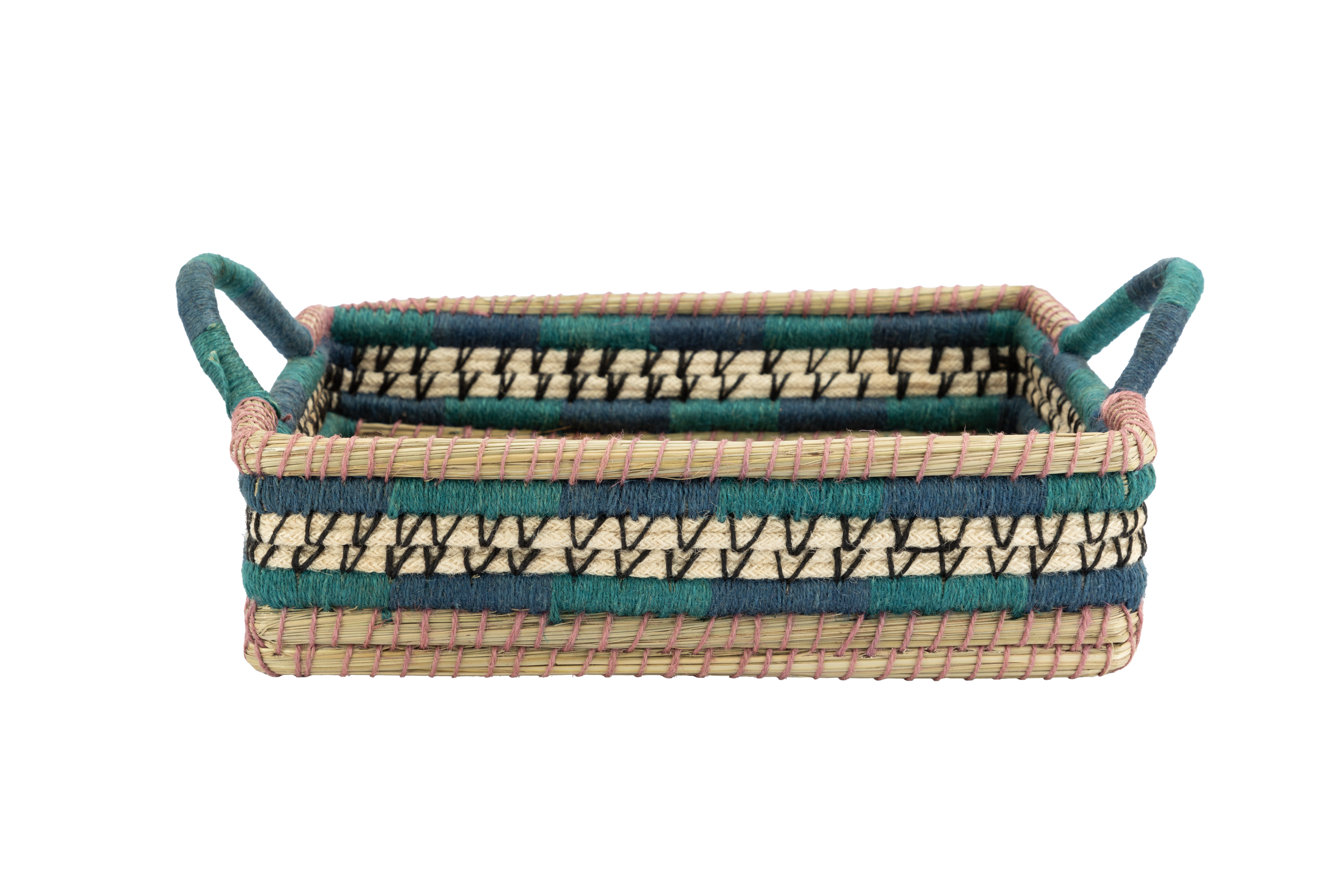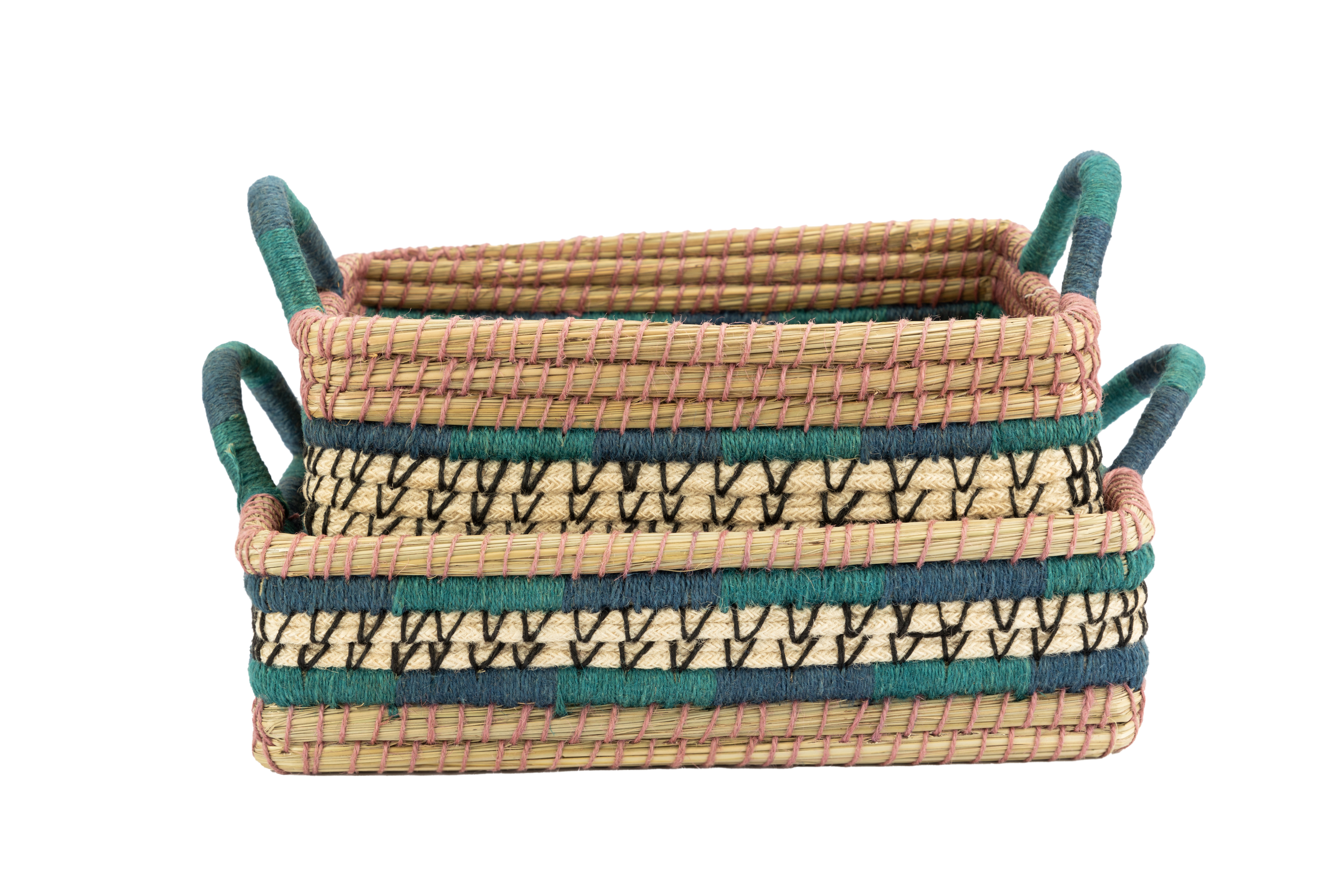 Kaisa-Gras und Umwicklung aus gefärbter Jute, natur/multicolor, 37 x 28 x 10 cm und 32 x 22 x 16 cm