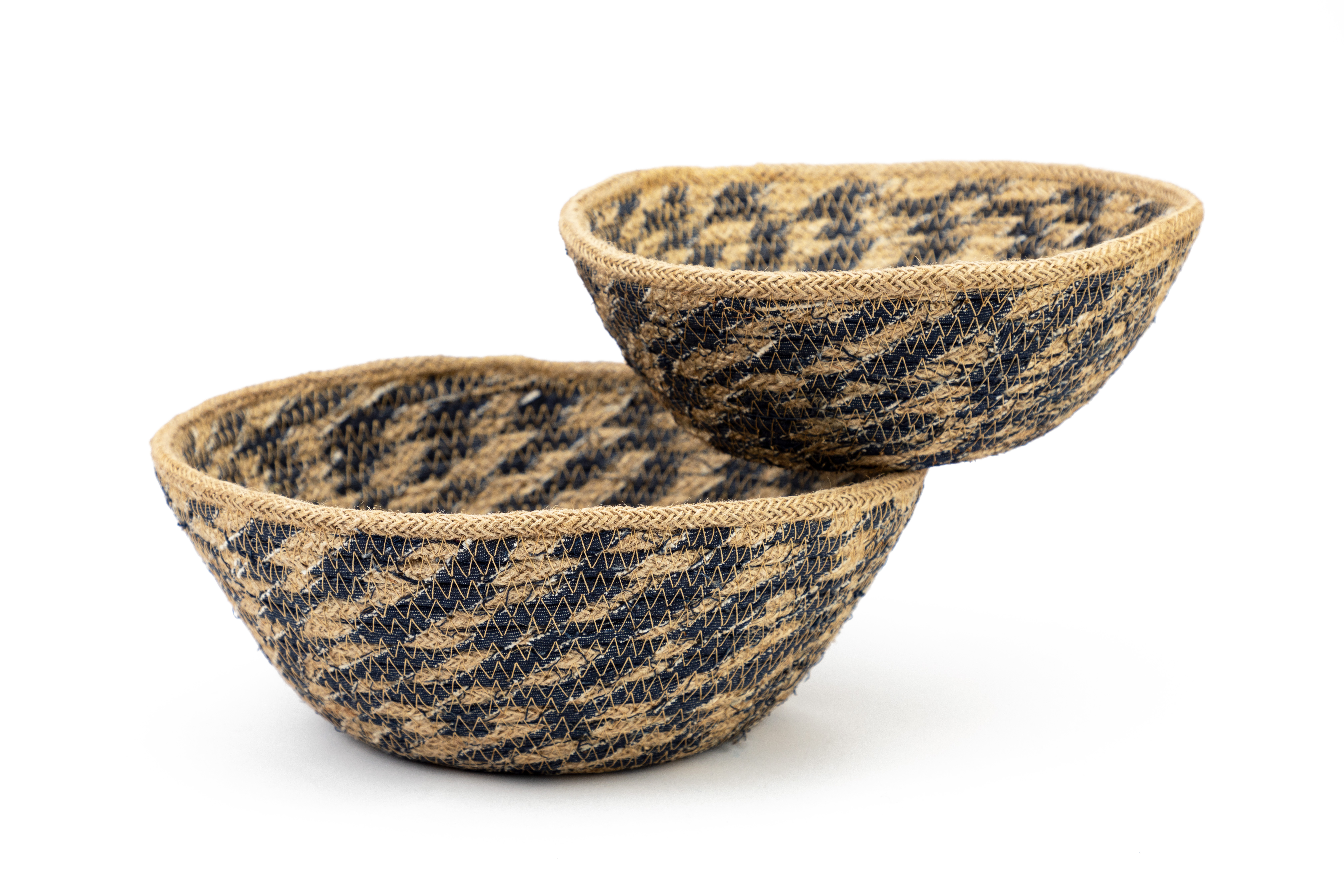 Jute und recycelter Jeans-Stoff (100% Baumwolle), natur/blau, 26 x 10 cm und 22 x 8 cm