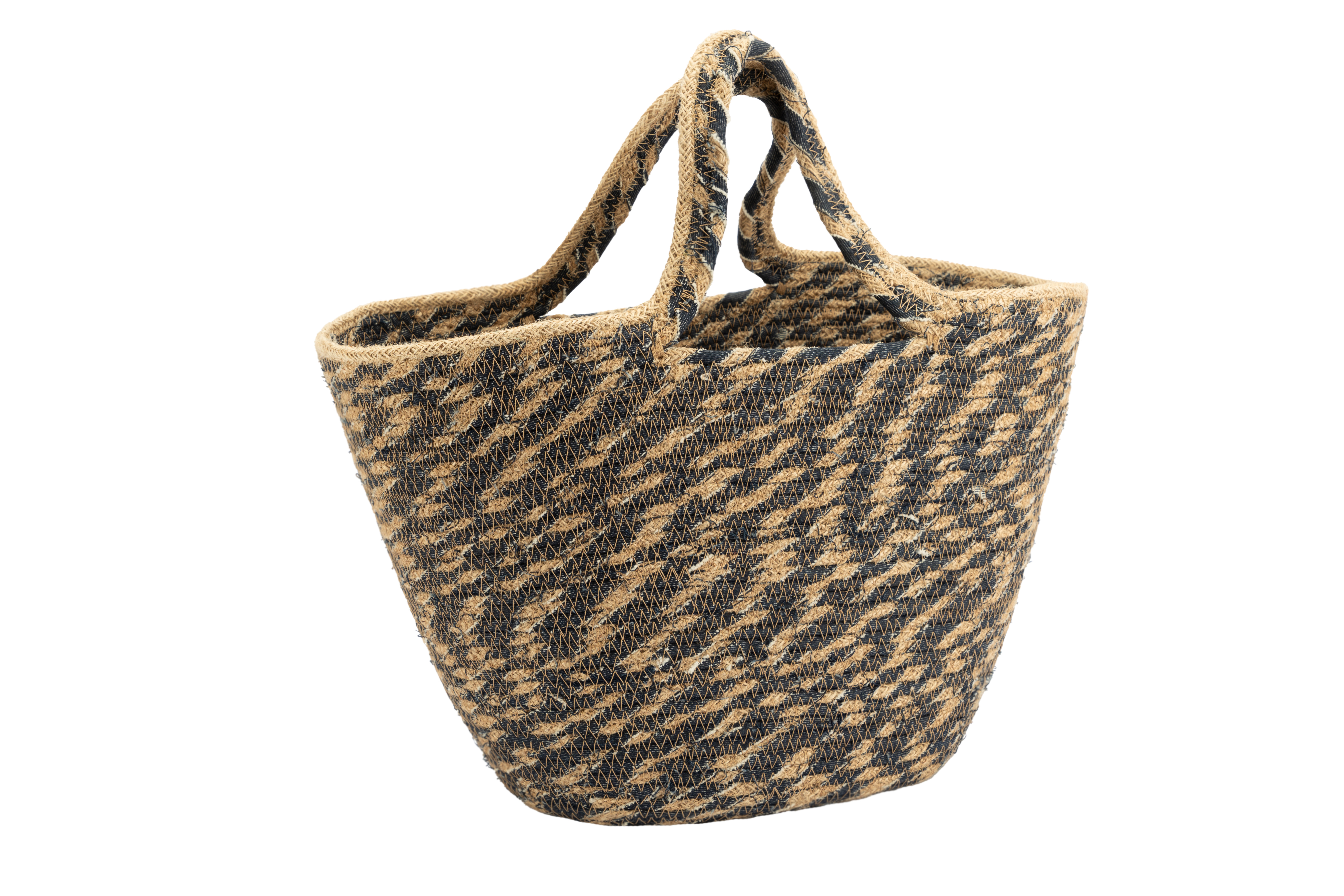 Jute und recycelter Jeans-Stoff (100% Baumwolle), natur/blau, 45 x 15 x 45 cm