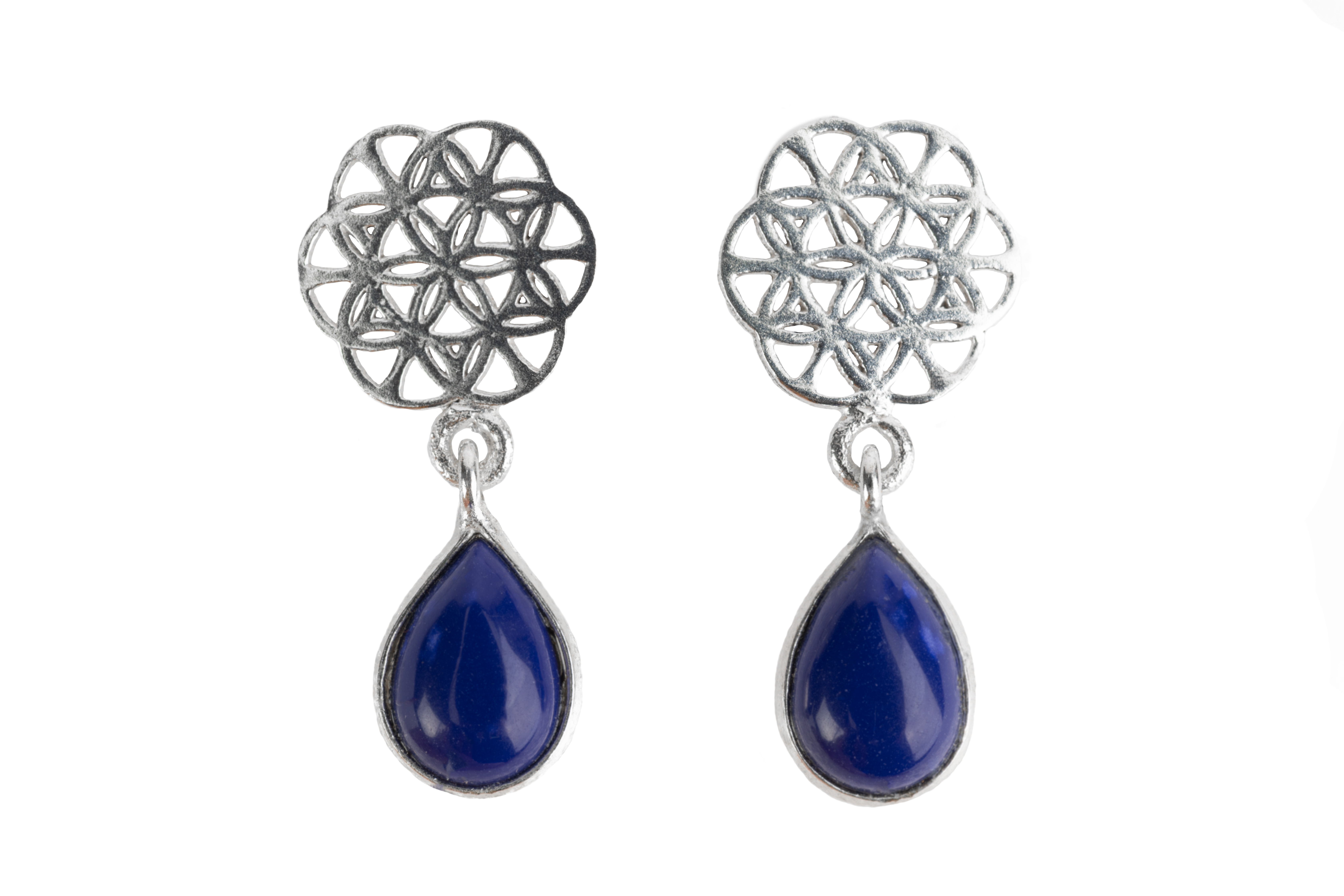 Messing und Kunstharz, silber/blau, L 2,7 cm
