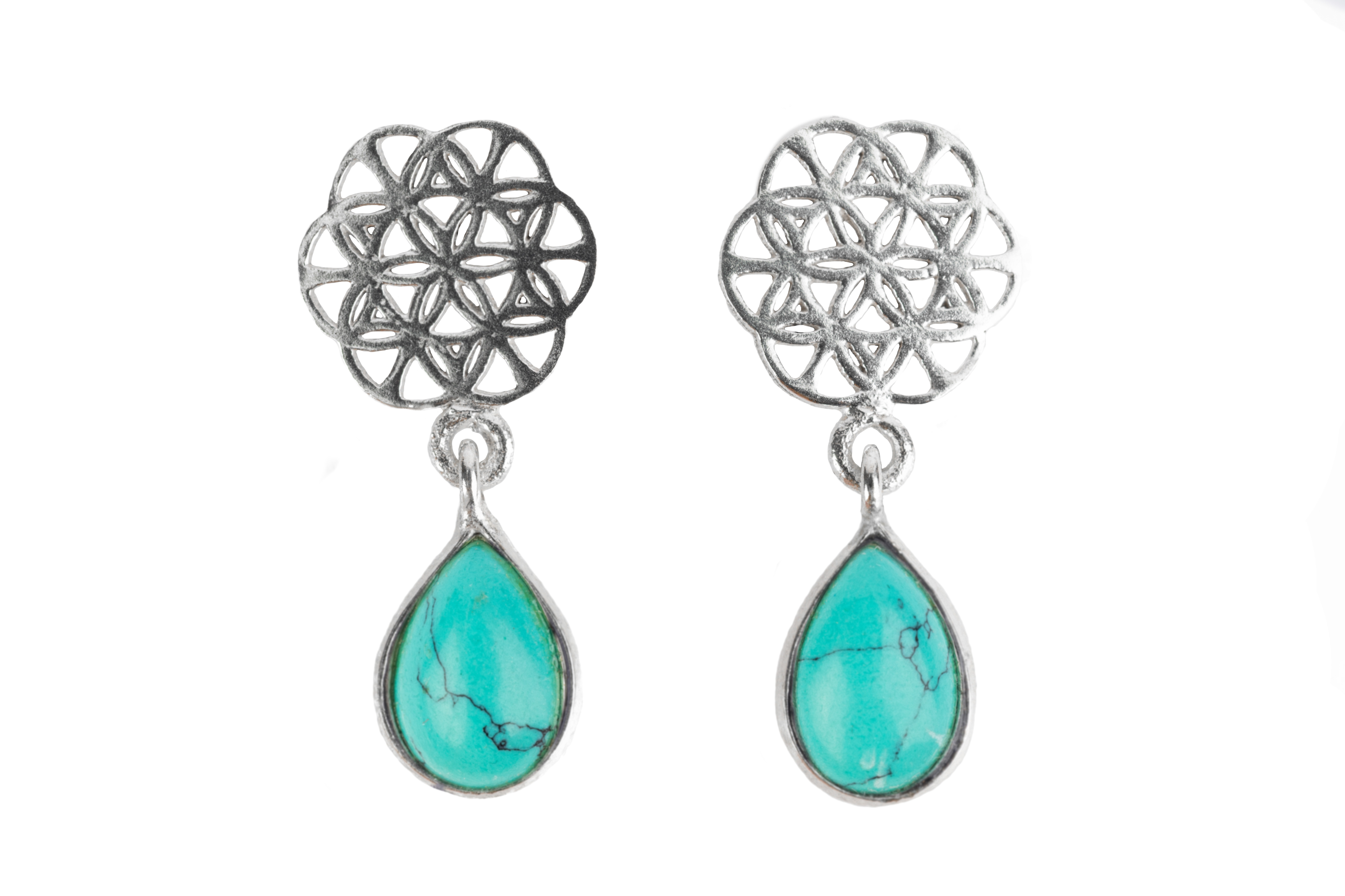 Messing und Kunstharz, silber/türkis, L 2,7 cm