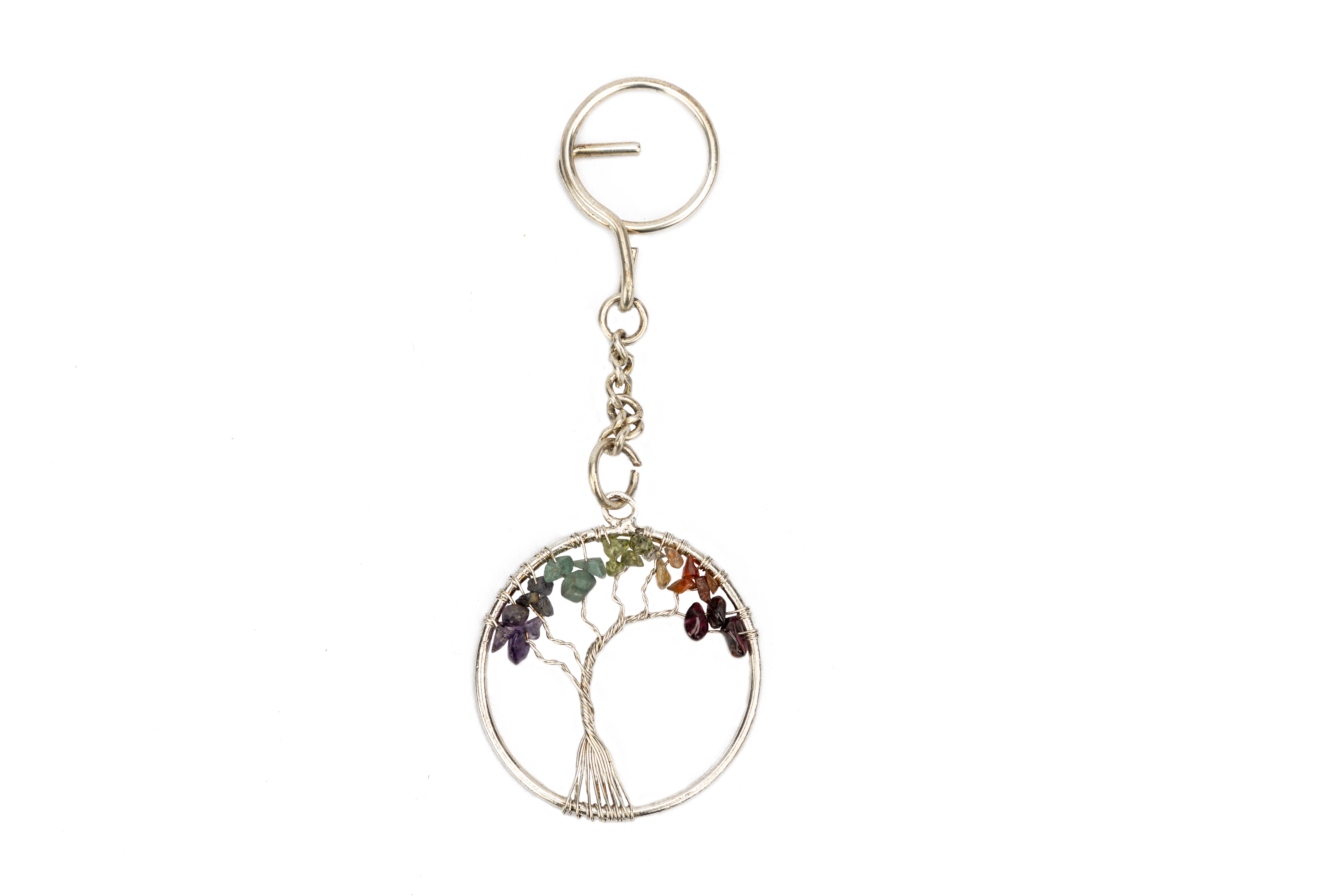 Messing/verschiedene Halbedelsteine, silber/bunt, L 12 cm, Ø 4 cm