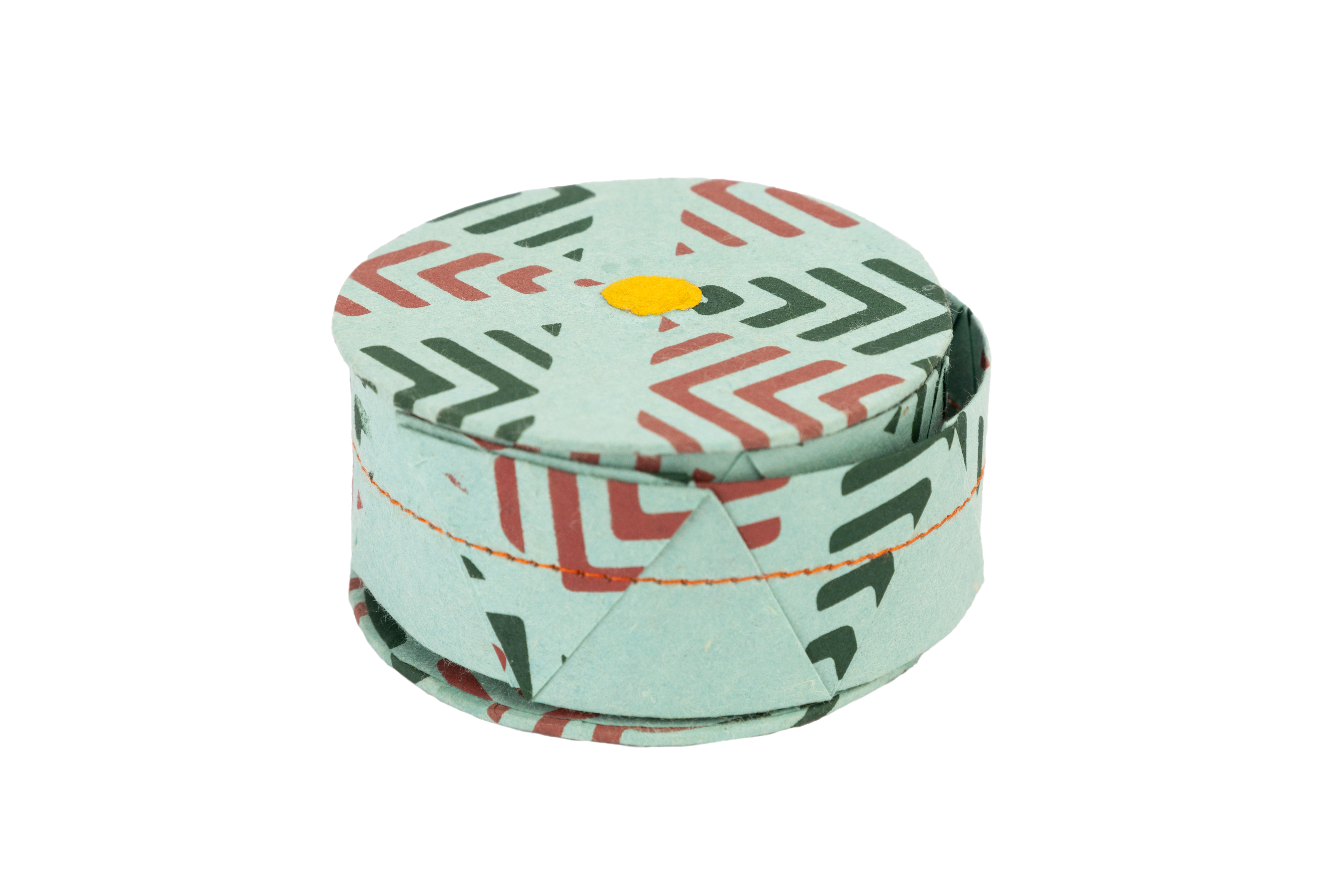 handgeschöpftes Jutepapier,, mintfarbenes Papier mit rotem und grünem Muster, 5 m x 2,5 cm,