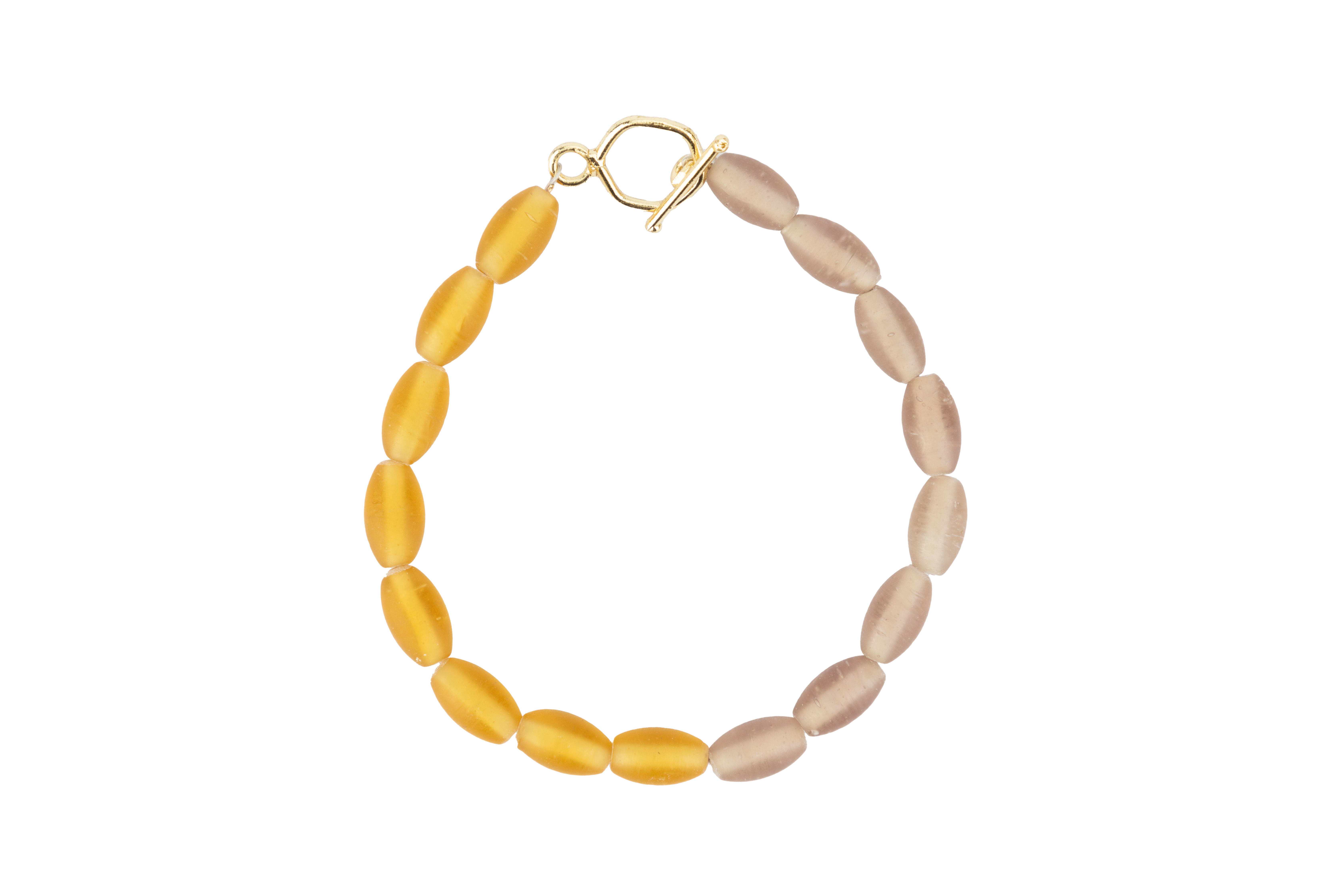 Glasperlen, Verschluss aus Messing, gelb/rosé, L 20 cm