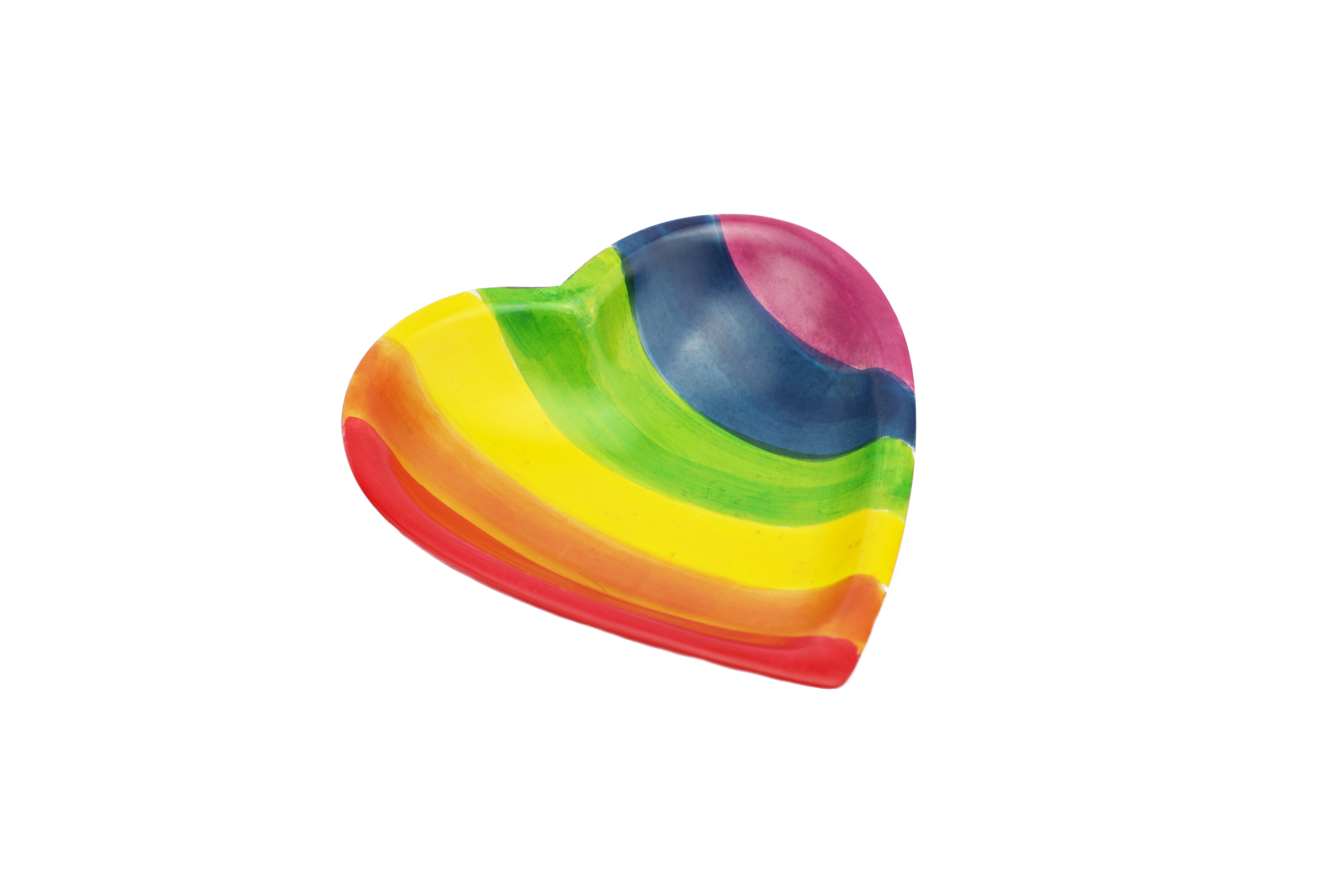 in Herzform, Regenbogen/bunt, ca. 10 cm