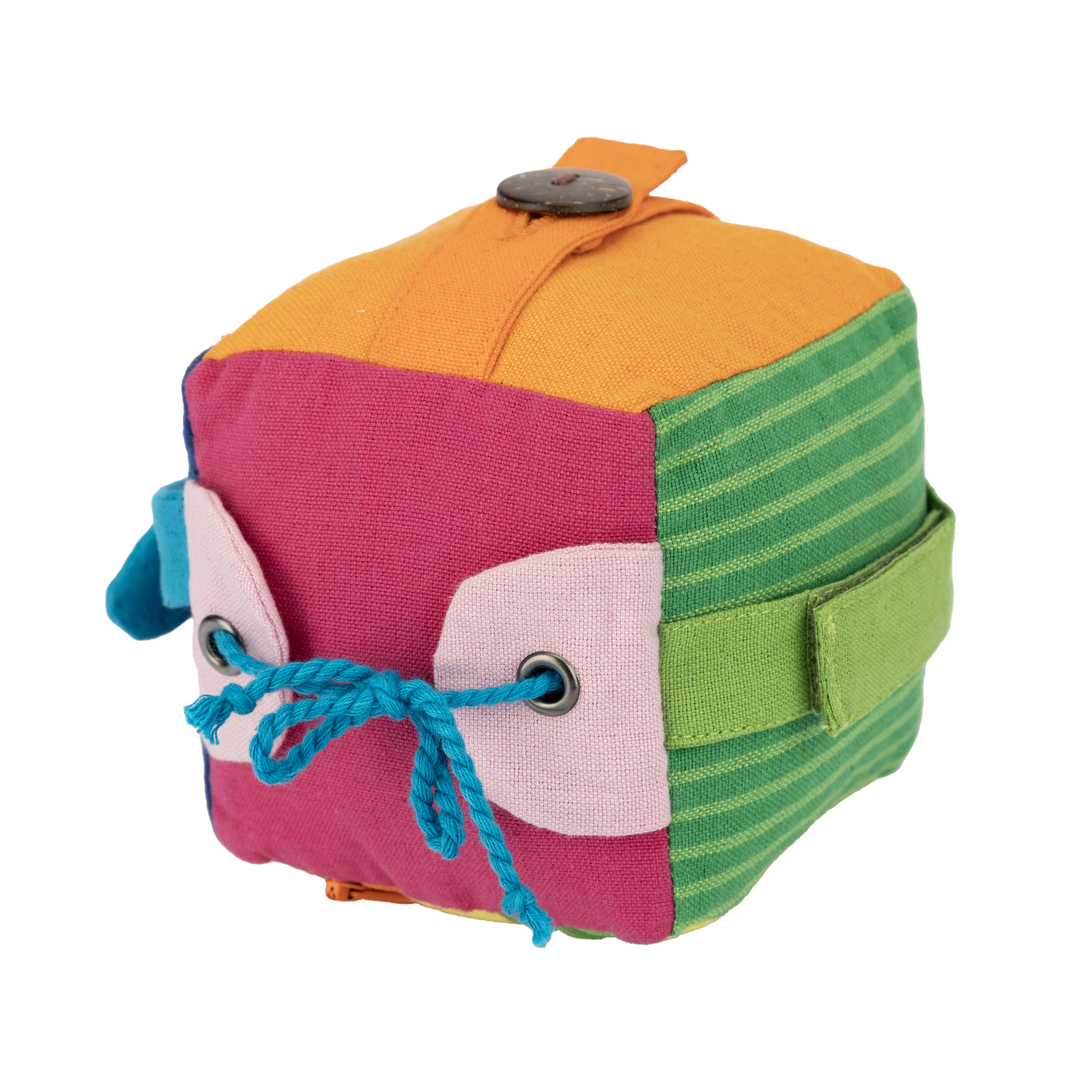 100% handgewebte Baumwolle, Füllung: Polyester, mit verschiedenen Funktionen: Klettverschluss, Knopf mit Knopfloch, Druckknopf, Reißverschluss, Kordel, Schnallenverschluss, bunt, 12 x 12 cm