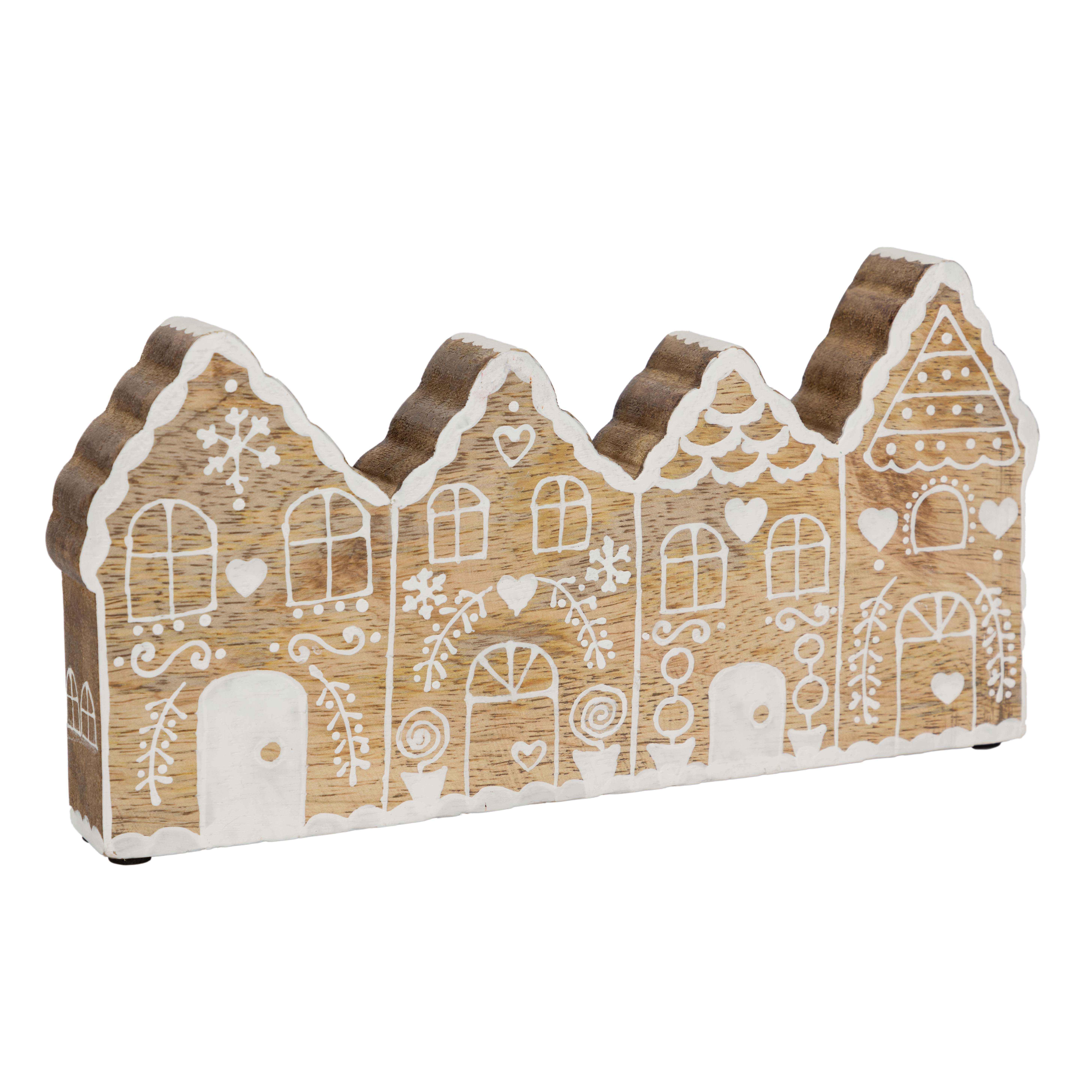 Mango-Holz, handbemalt, natur/weiß, 25 x 13 x 3 cm