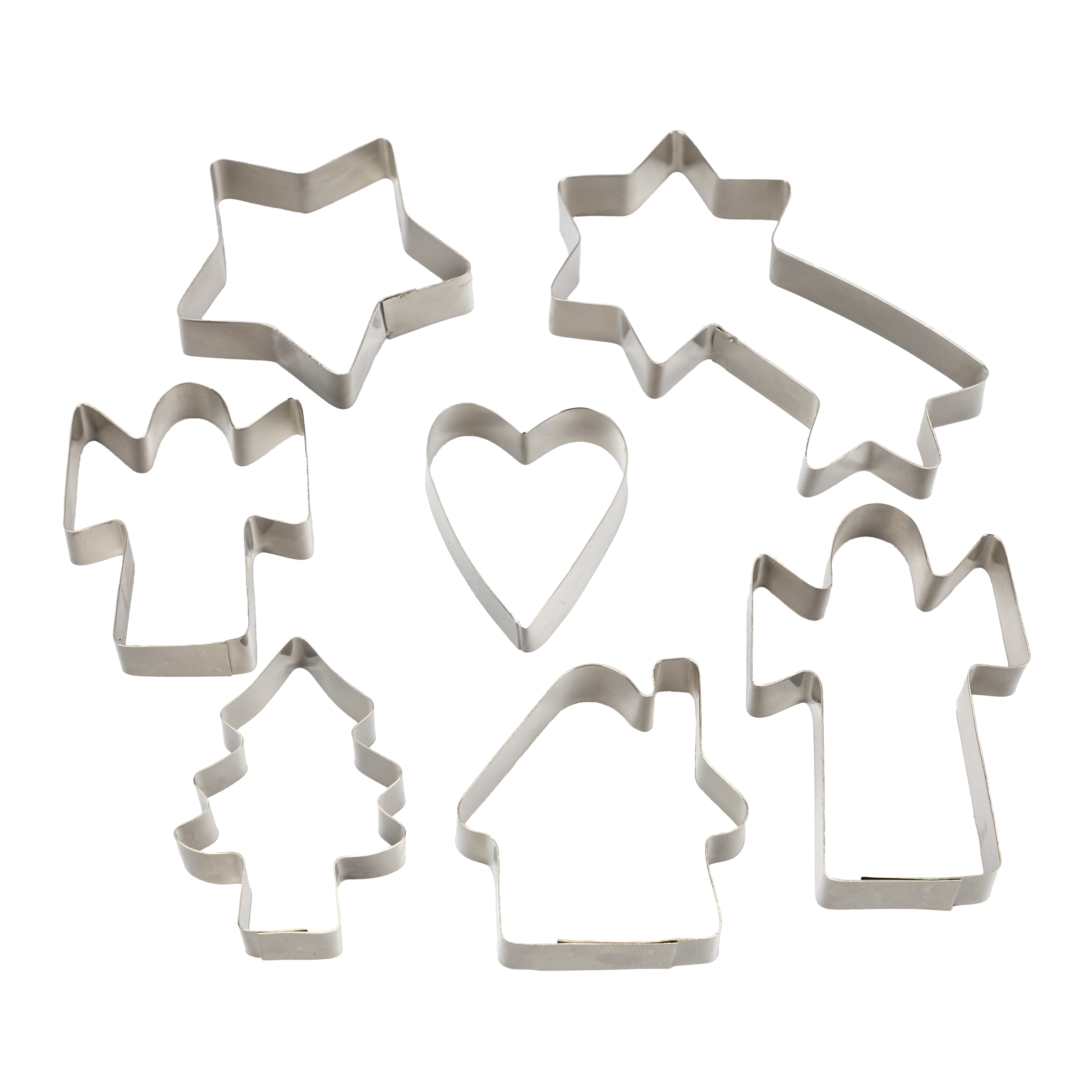 Edelstahl, Engel/Sternschnuppe/Herz/Stern/Tannenbaum/Haus, jeweils ca. 5 x 5,5 cm