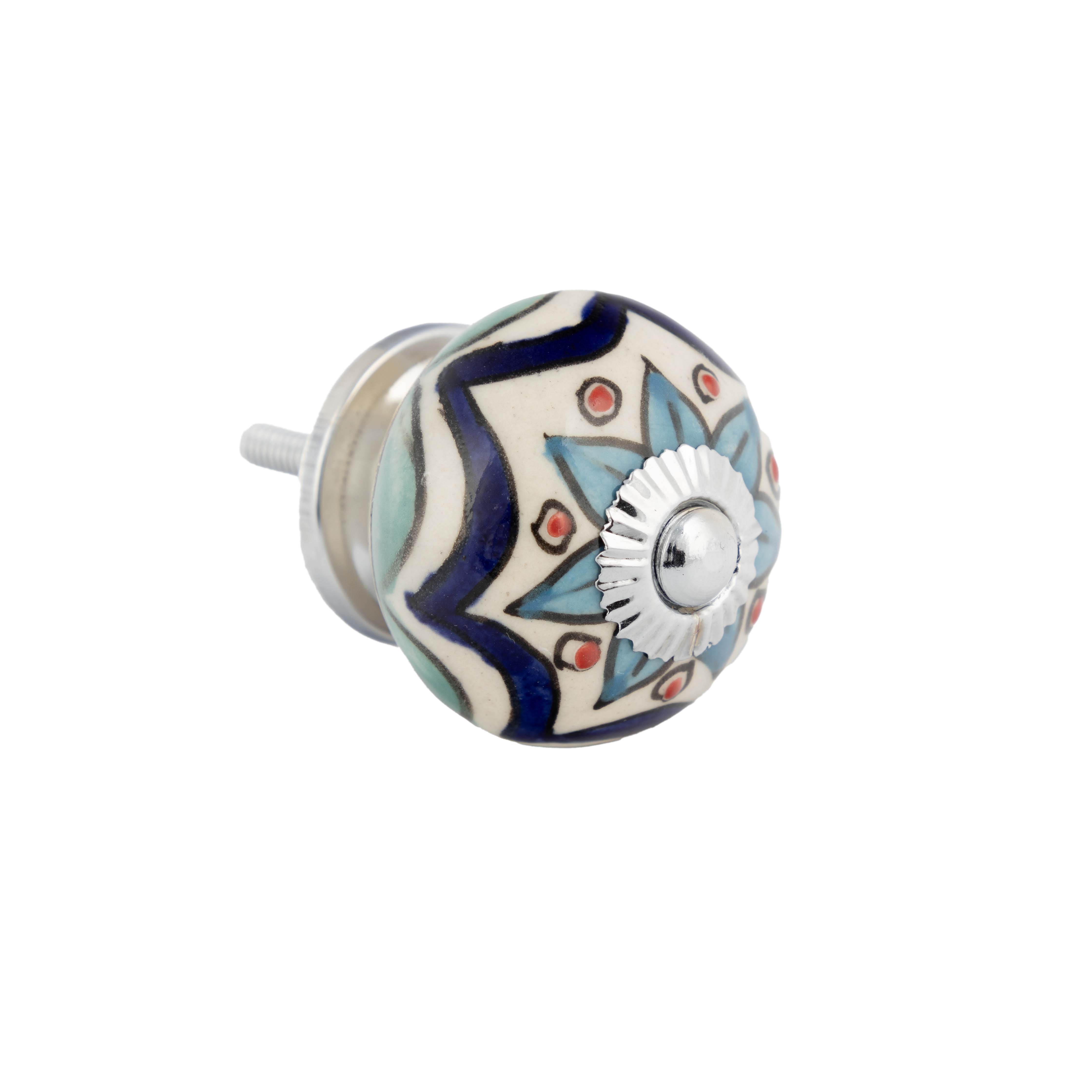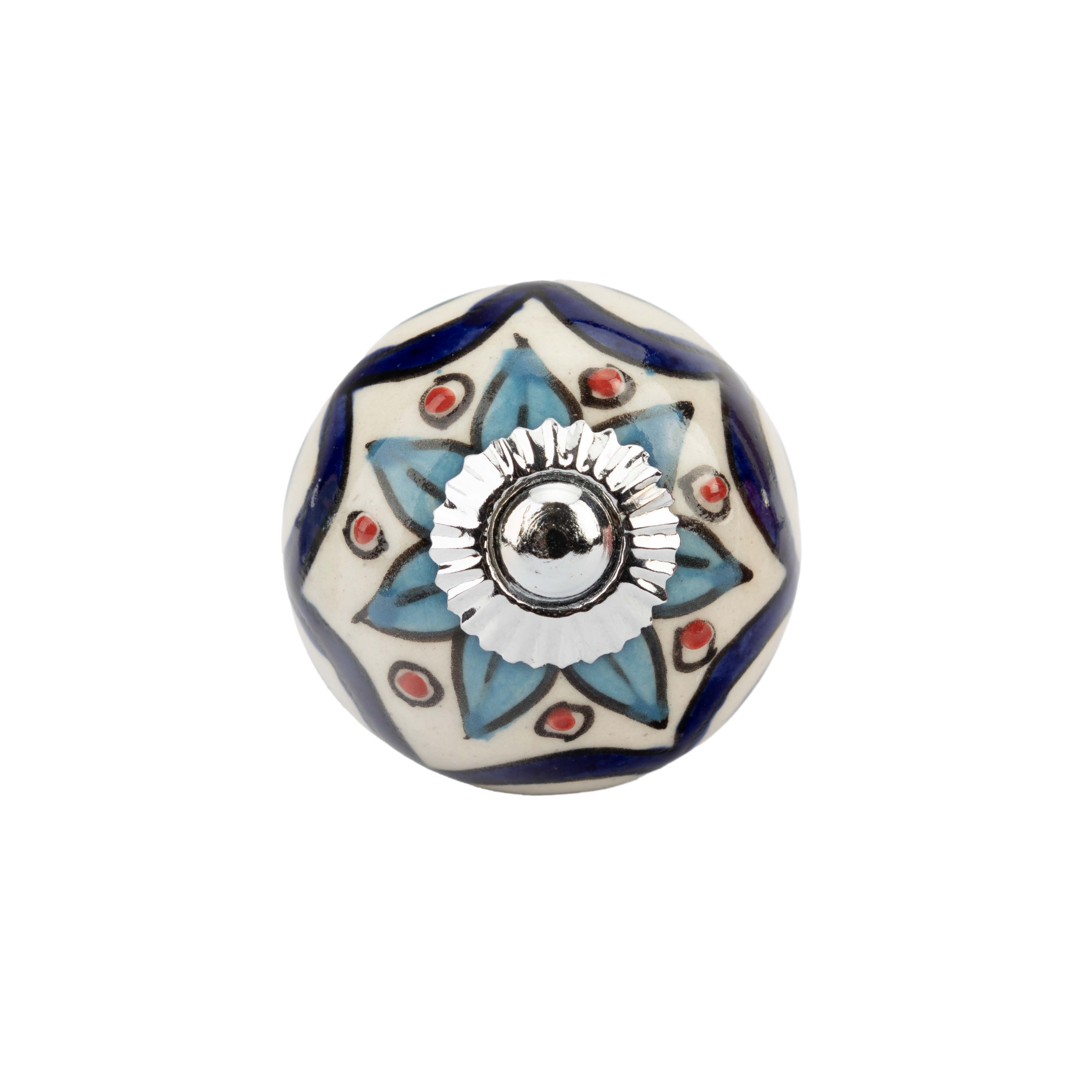 Keramik, mit Metallschraube und Zubehör, weiß/blau/rot, Ø 4,5 cm