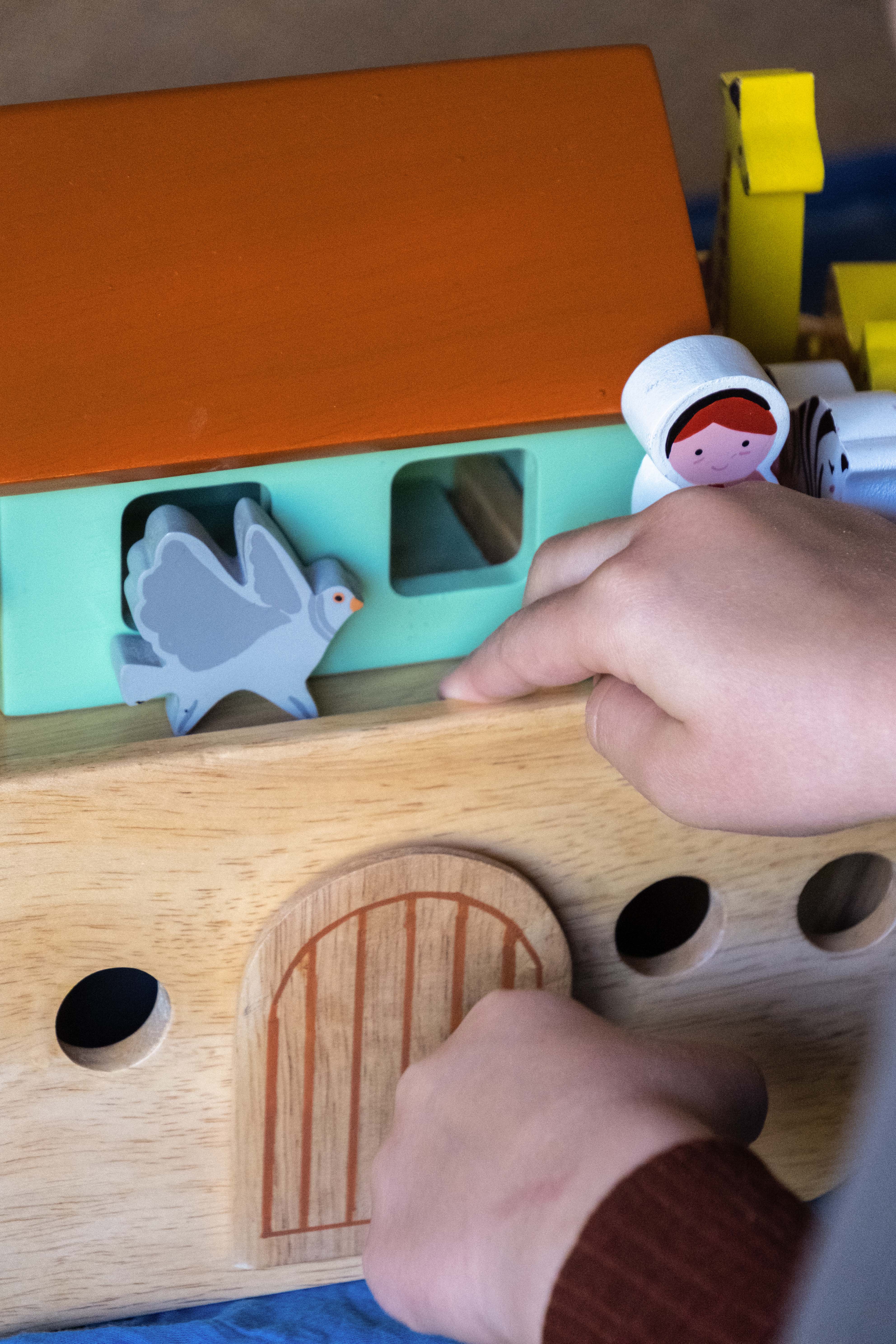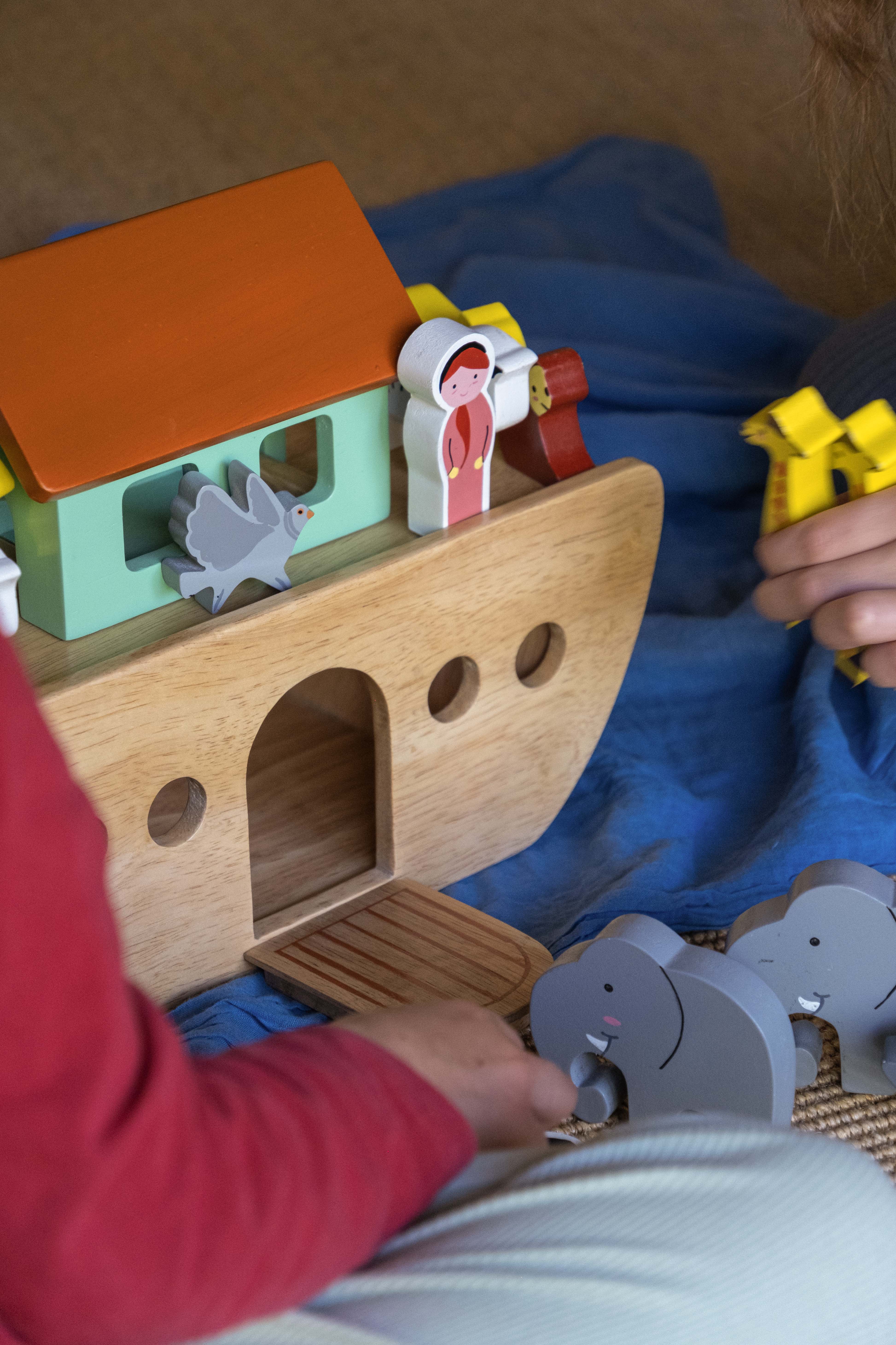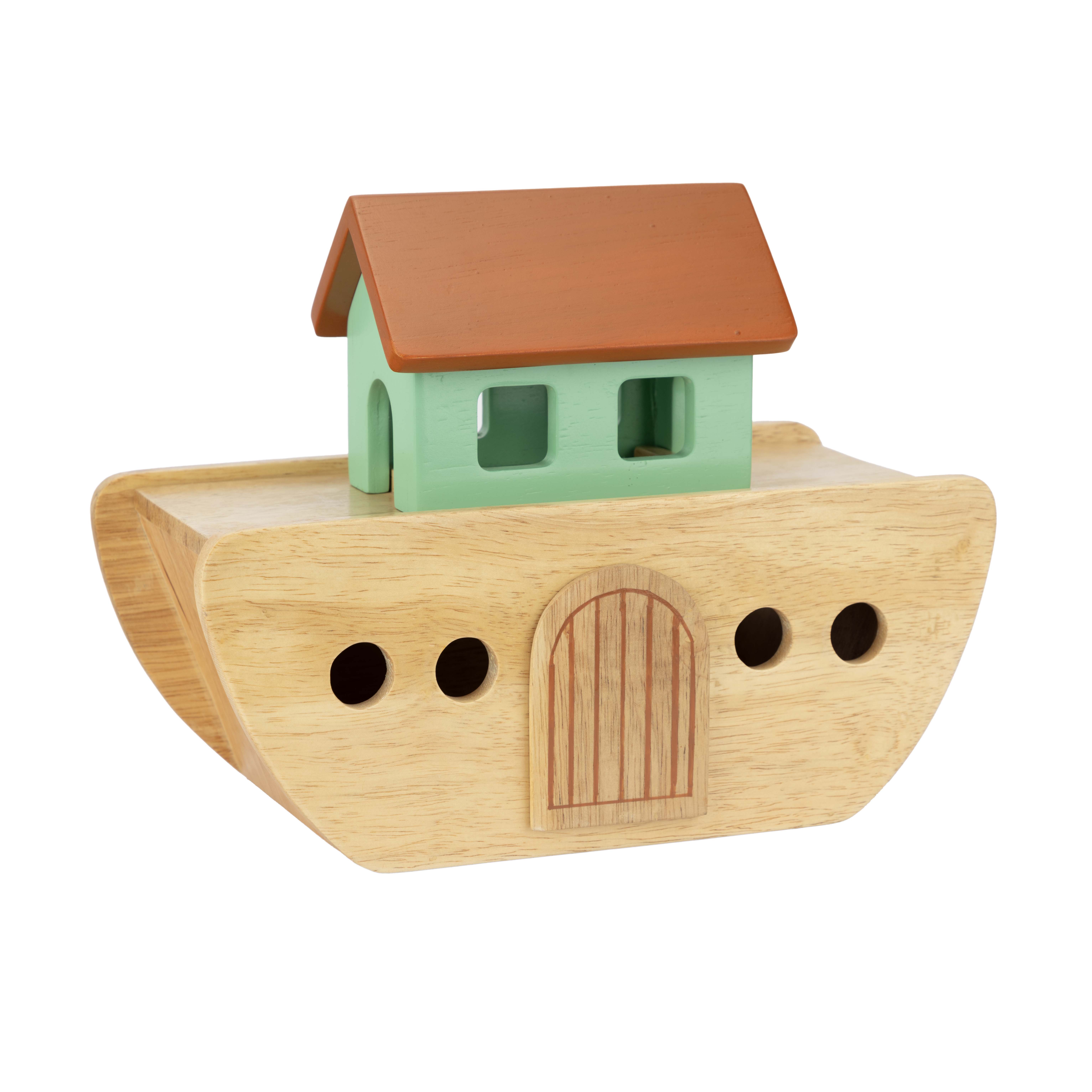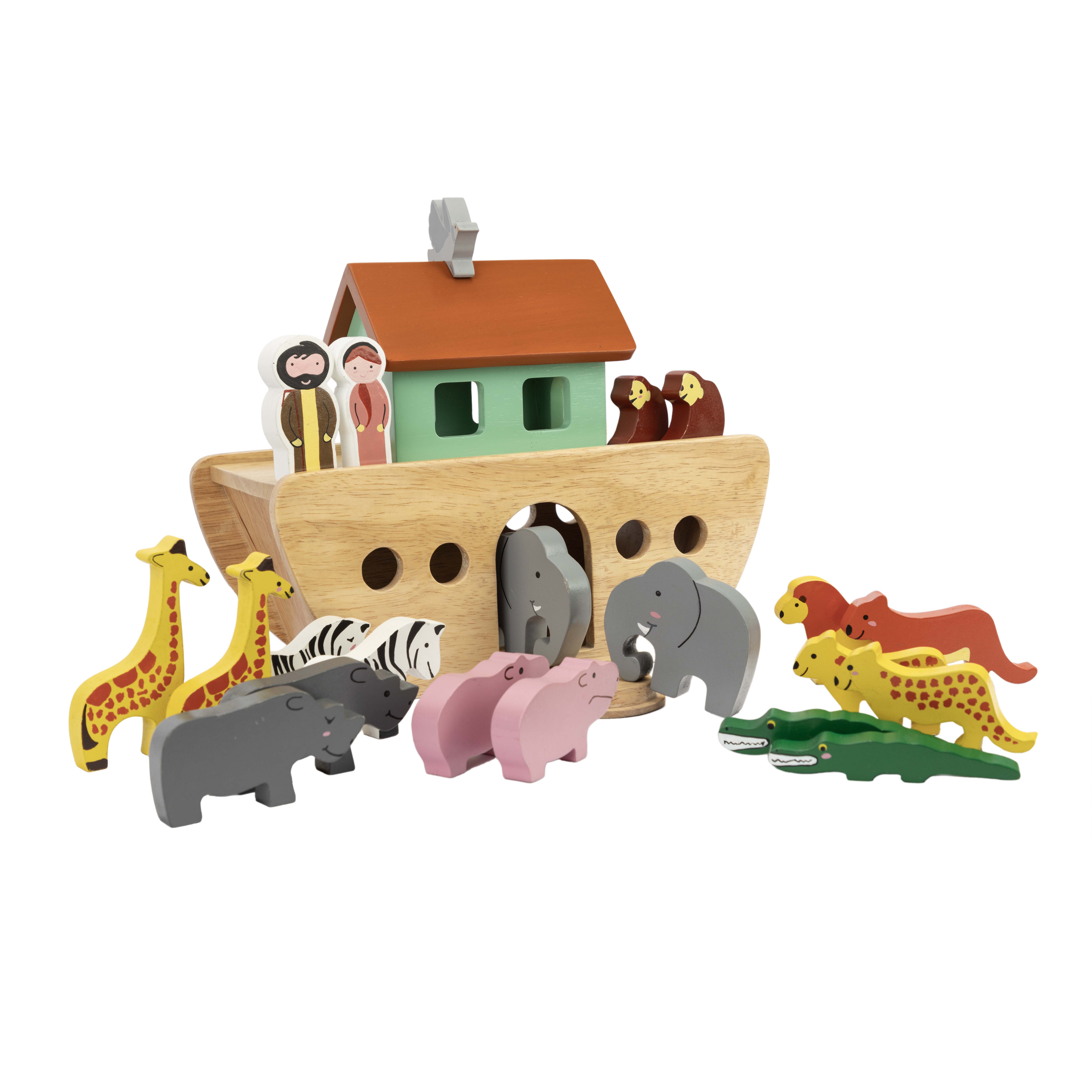 Gummibaum-Holz, bemalt, mit 19 Tieren, Noah und seiner Frau, bunt, 25-teilig, 30 x 15 x 25 cm