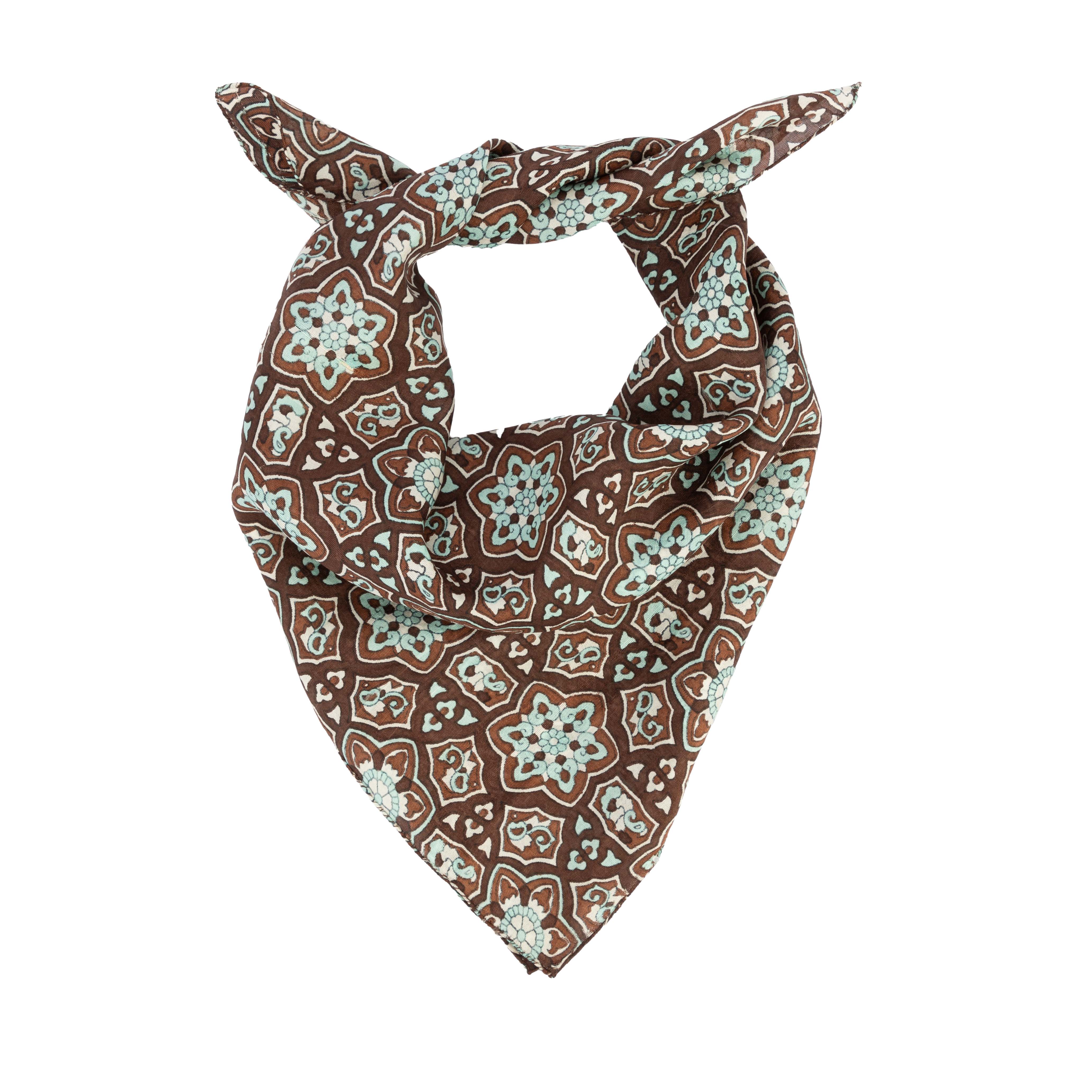 100% Seide, handgewebt und -bedruckt, braun/türkis/weiß, 50 x 50 cm