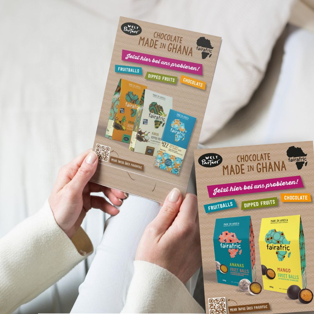 Tischaufsteller fairafric- Dipped Fruits-, A5