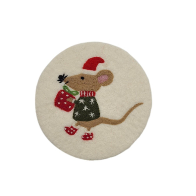 Untersetzer Maus mit Geschenk, naturweiss ( ca. 21 cm)