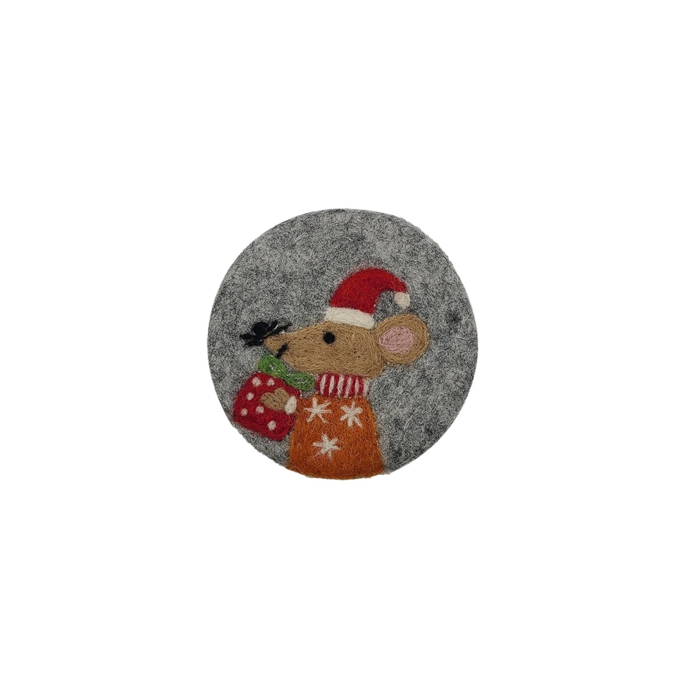 Filz Untersetzer Maus mit Weihnachtsbaum, hellrot