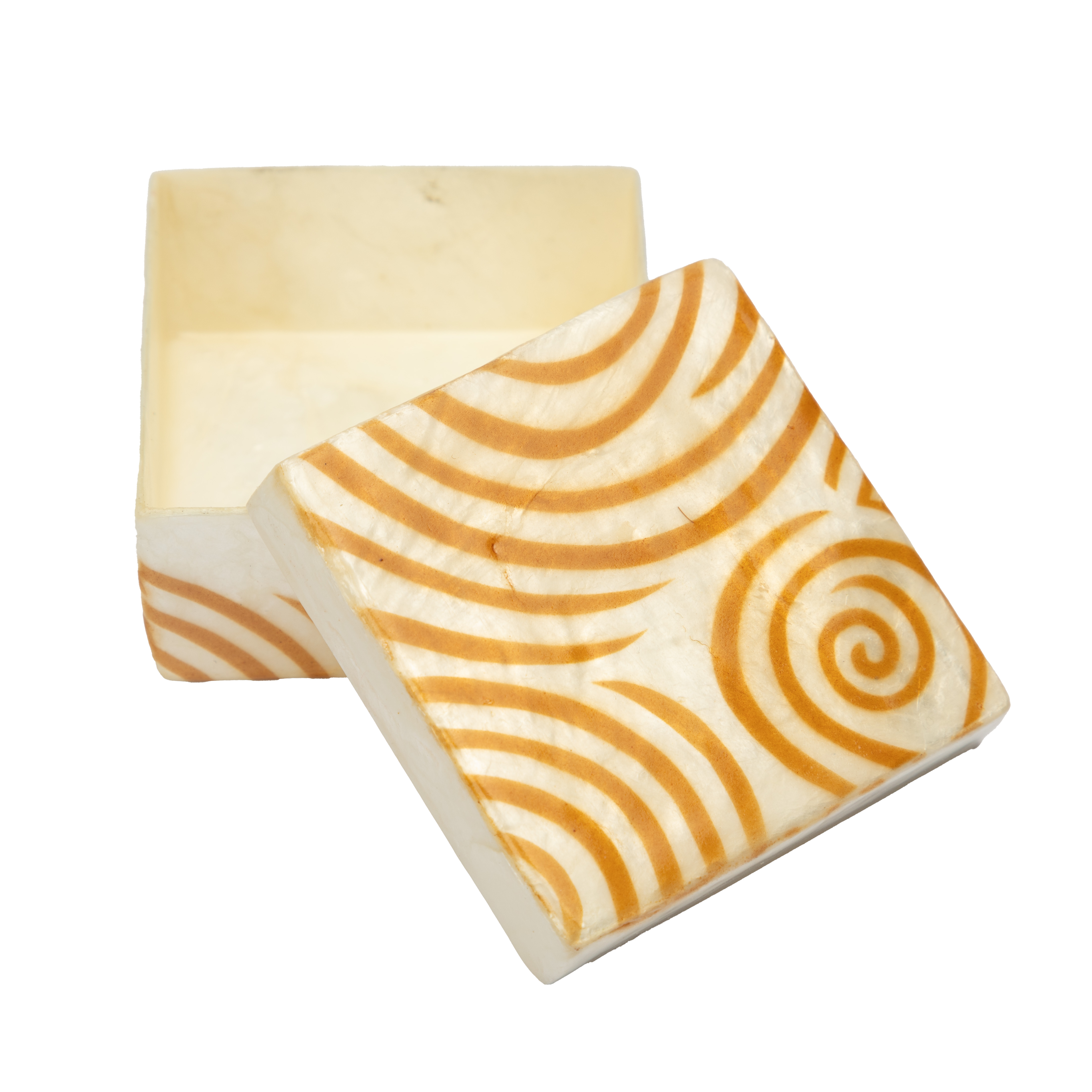 laminiertes Capiz, weiß/gelb, 6,5 x 6,5 x 3 cm