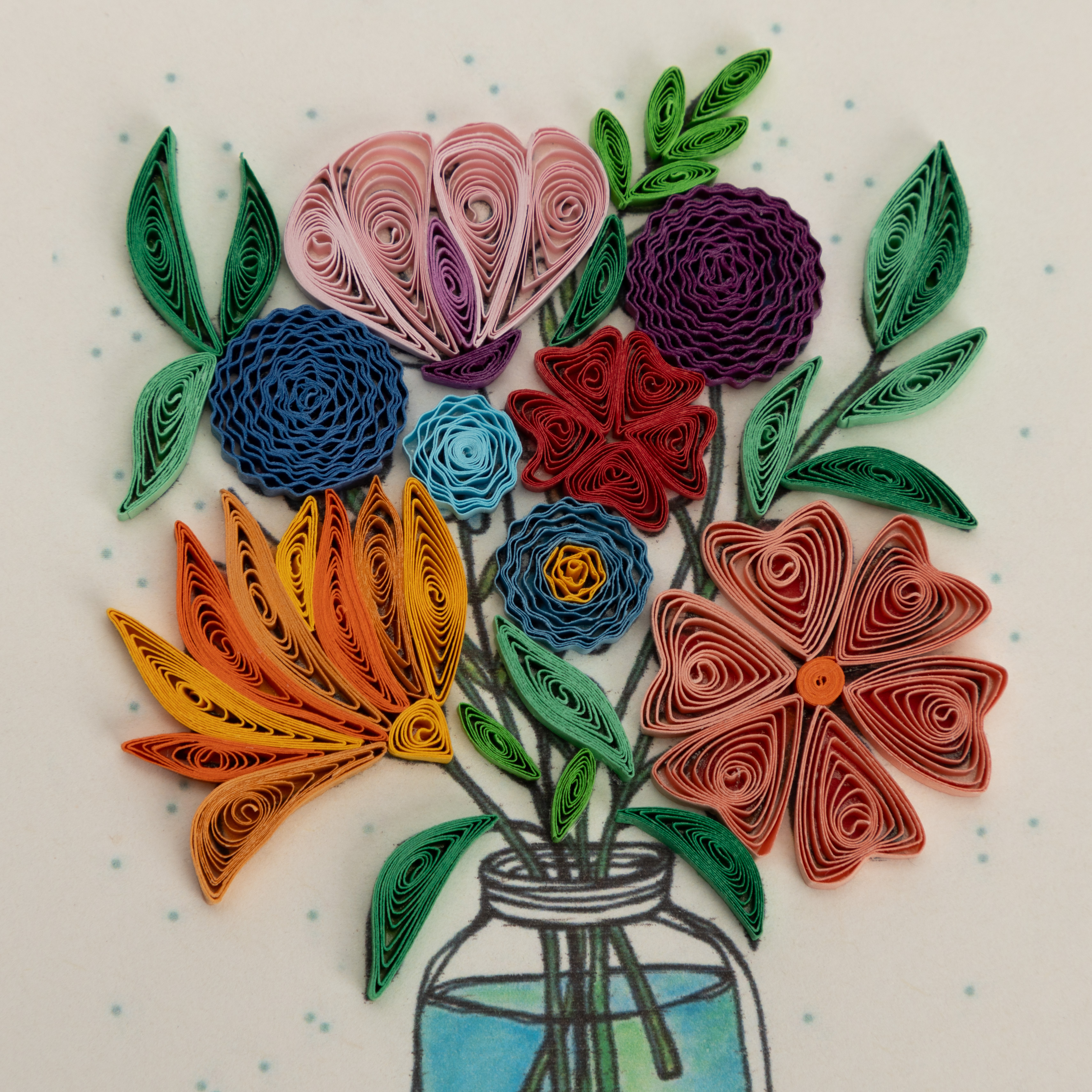 Motiv aus kunstvoll gerolltem Papier, Doppelkarte mit Umschlag, Kompaktbriefporto, 9 x 11 cm