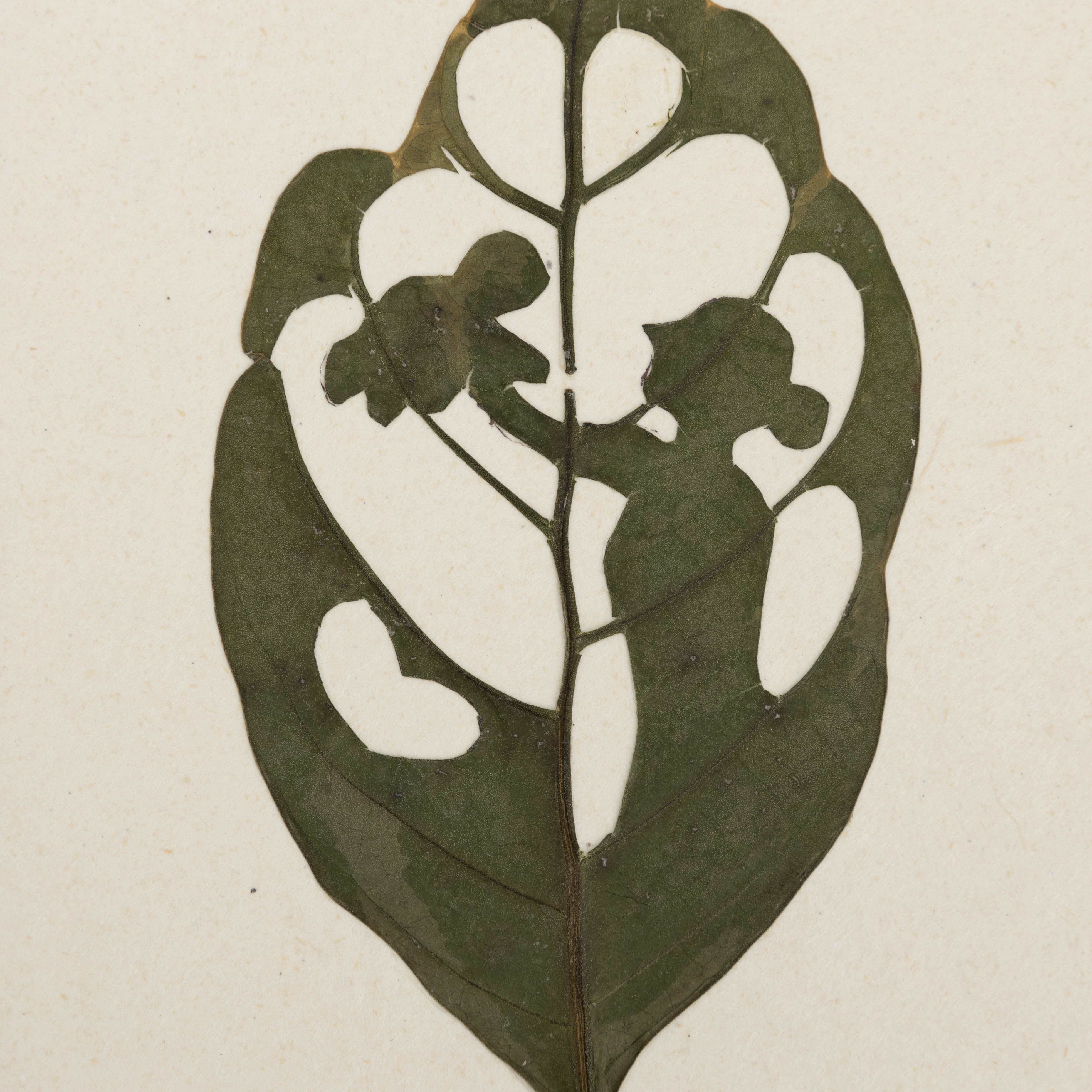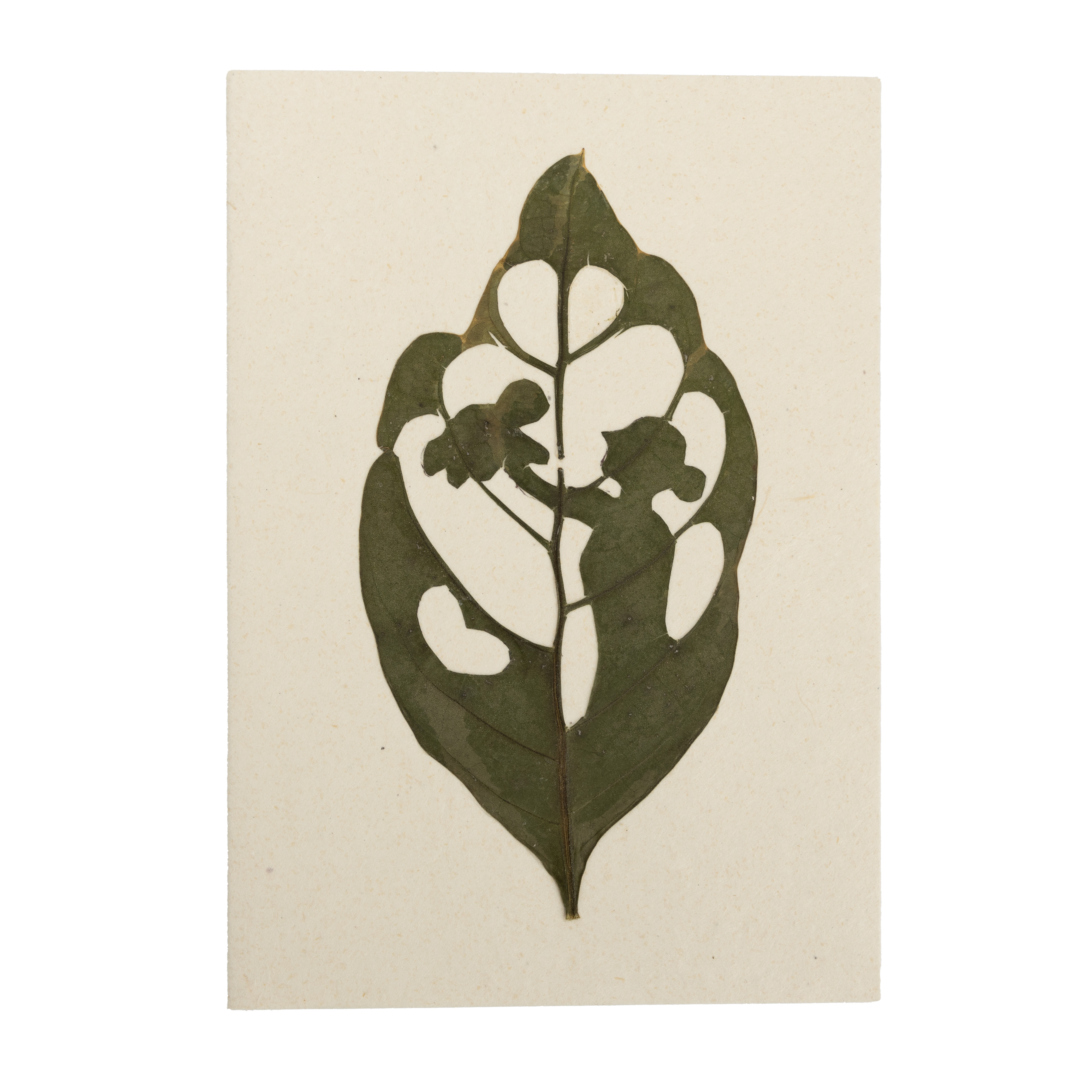 handgeschöpftes Papier, mit Blatt-Applikation, Doppelkarte mit Umschlag, natur/grün, 12 x 17 cm