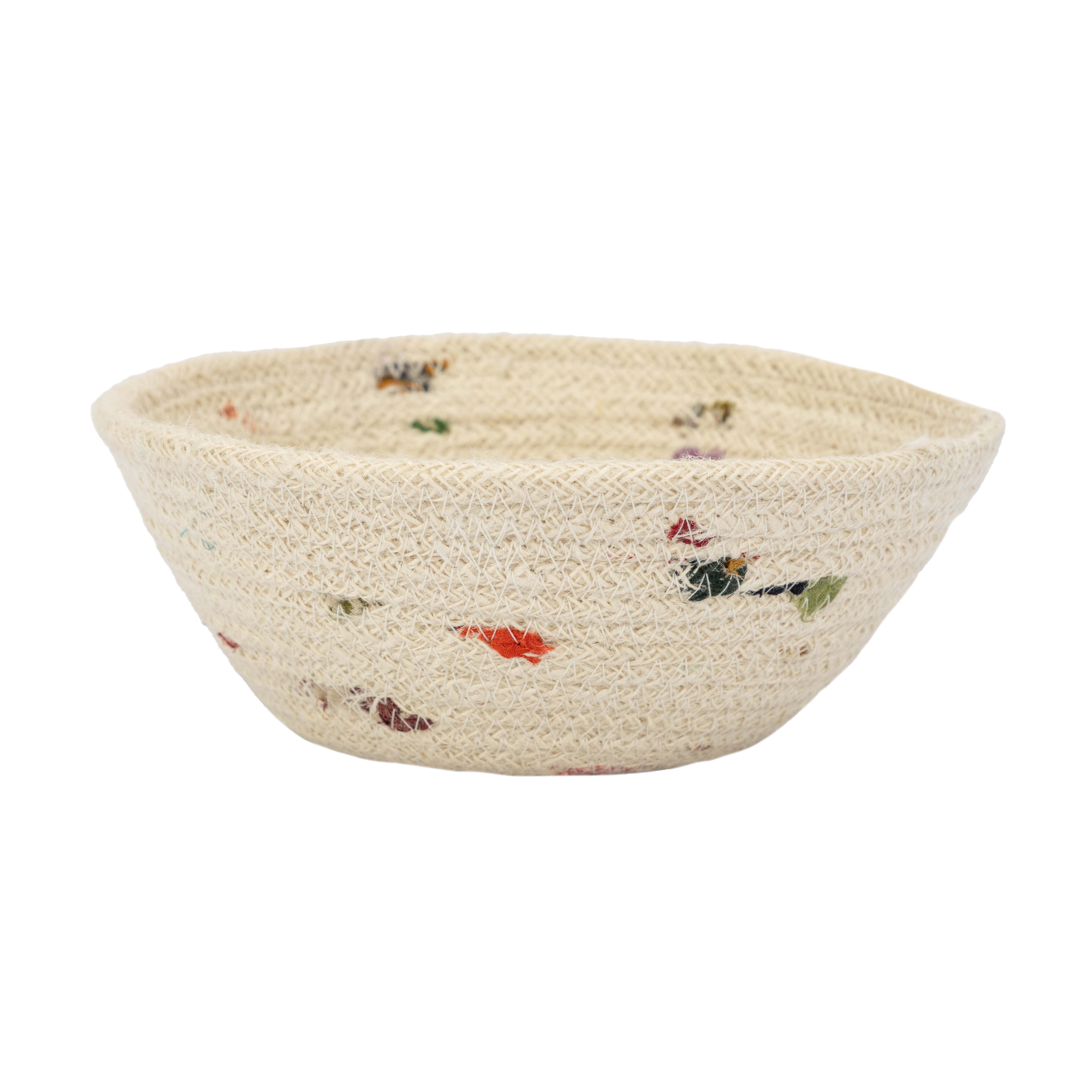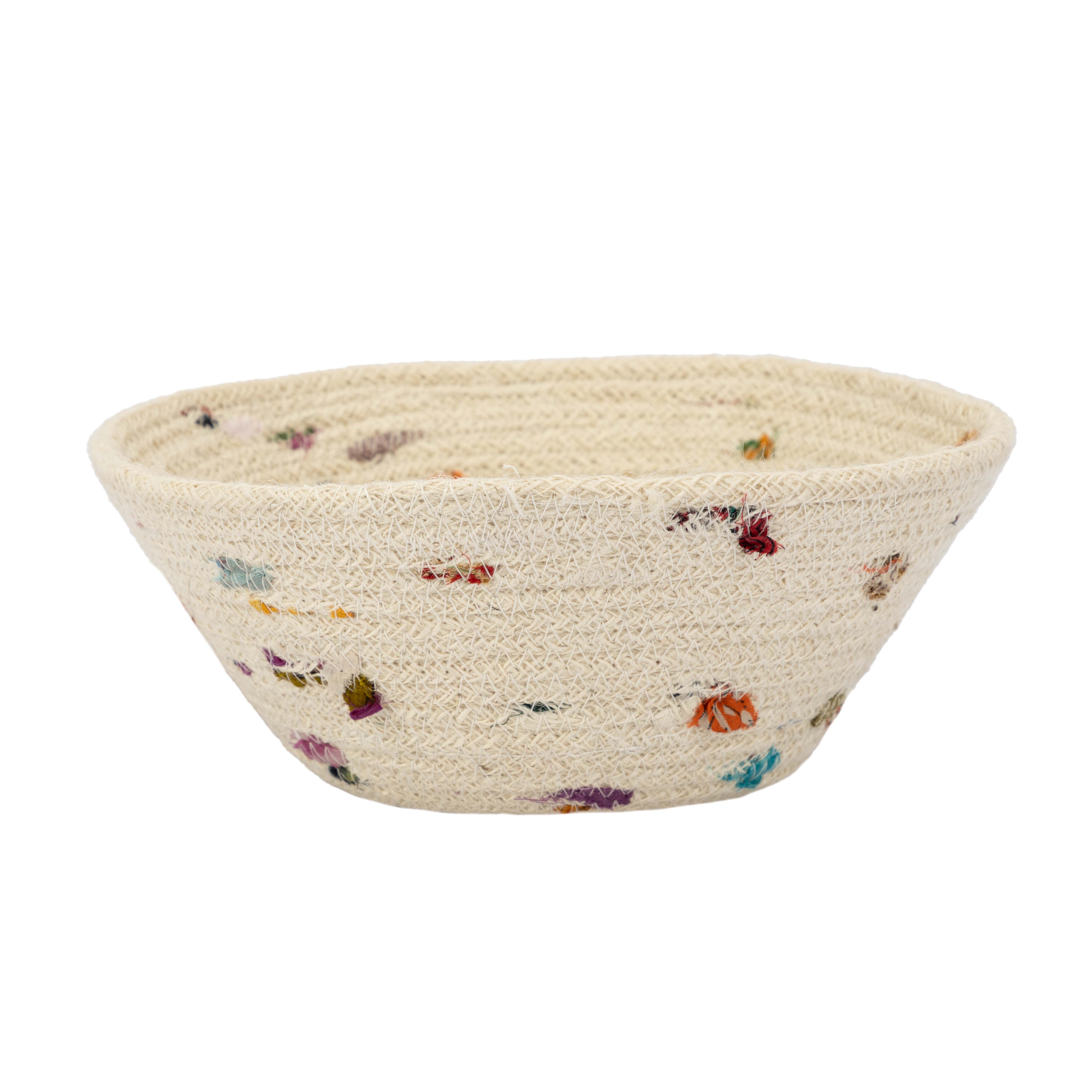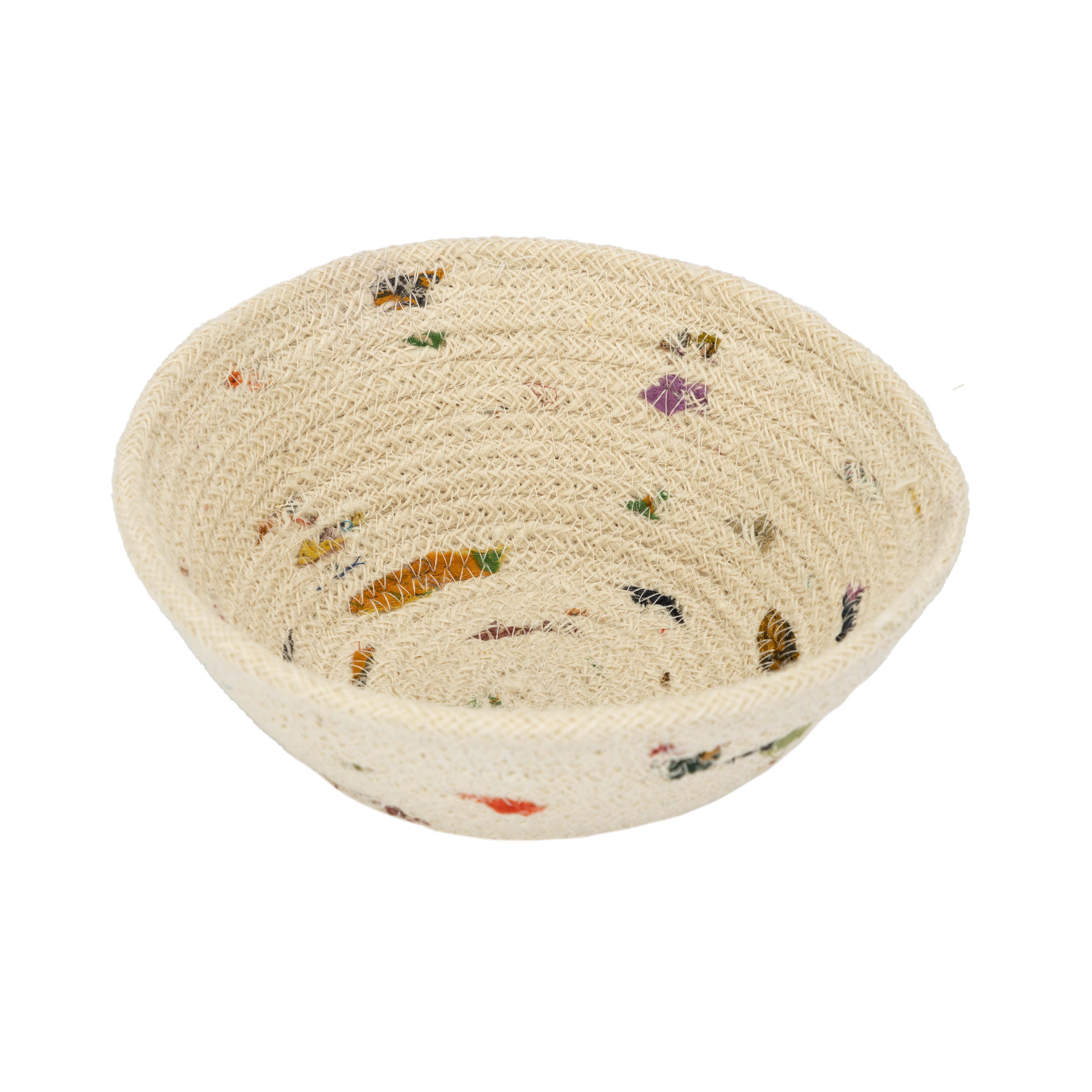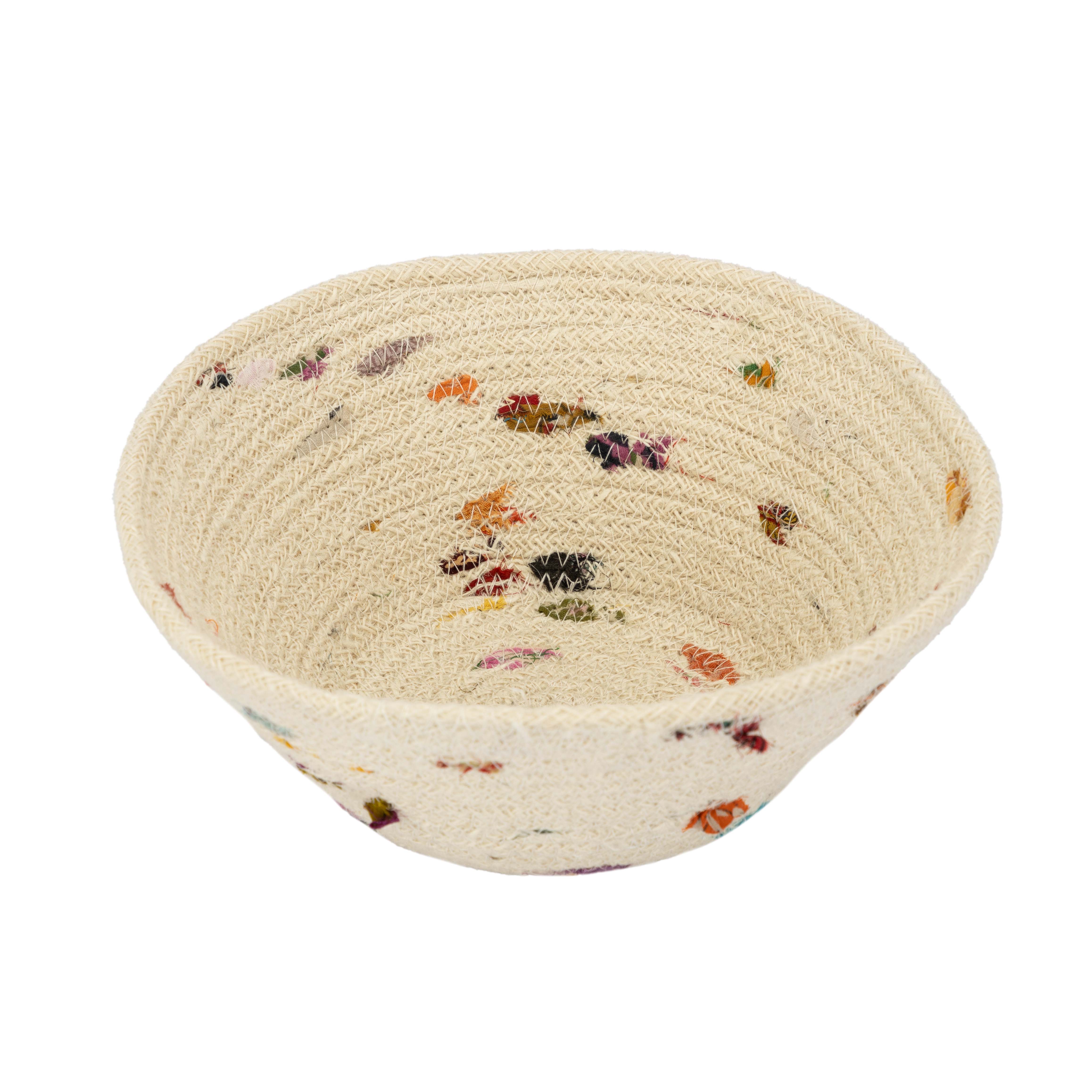 Jute, recycelte Sari-Stoffe, beige/bunt, H 11 cm, Ø 26 cm und H 8 cm, Ø 23 cm