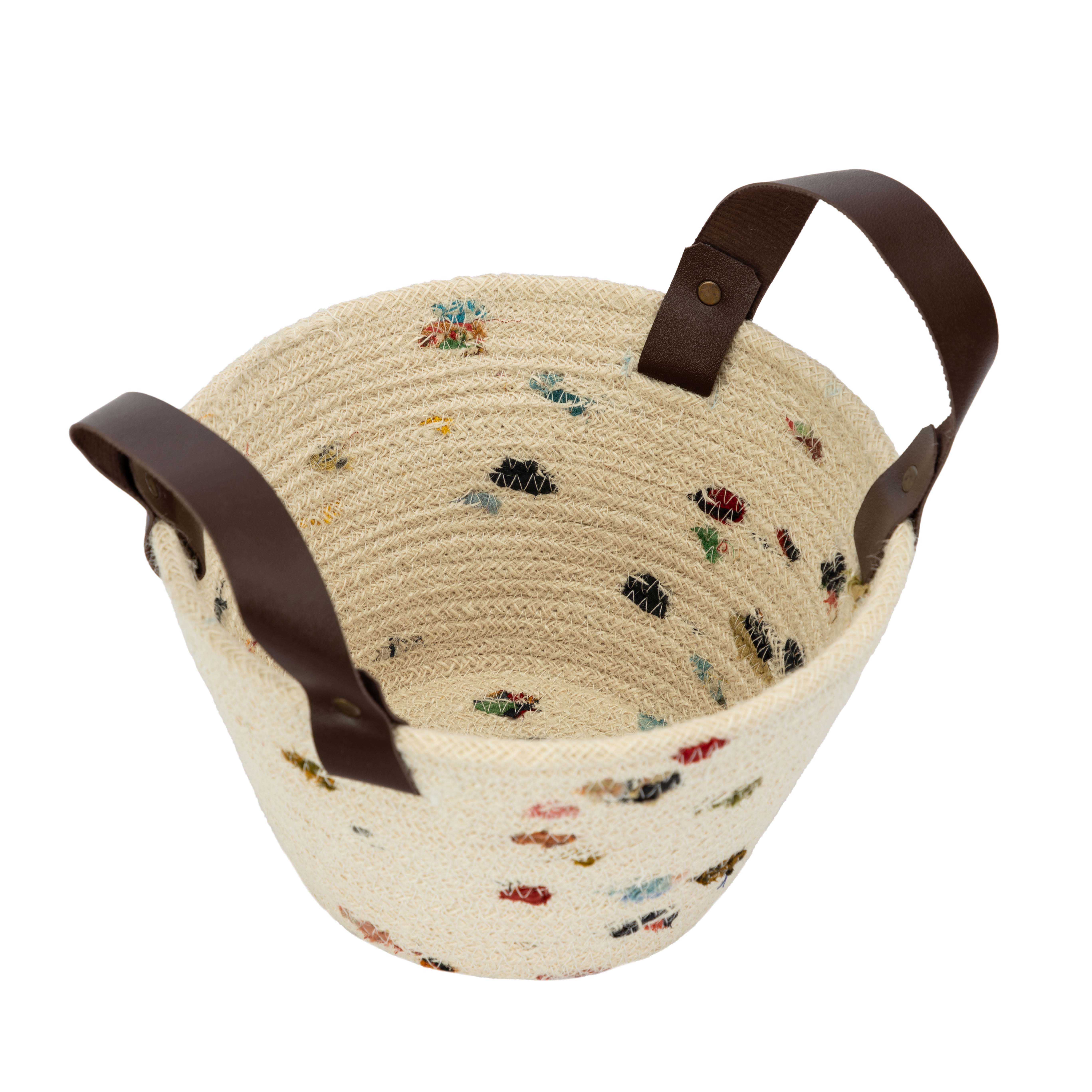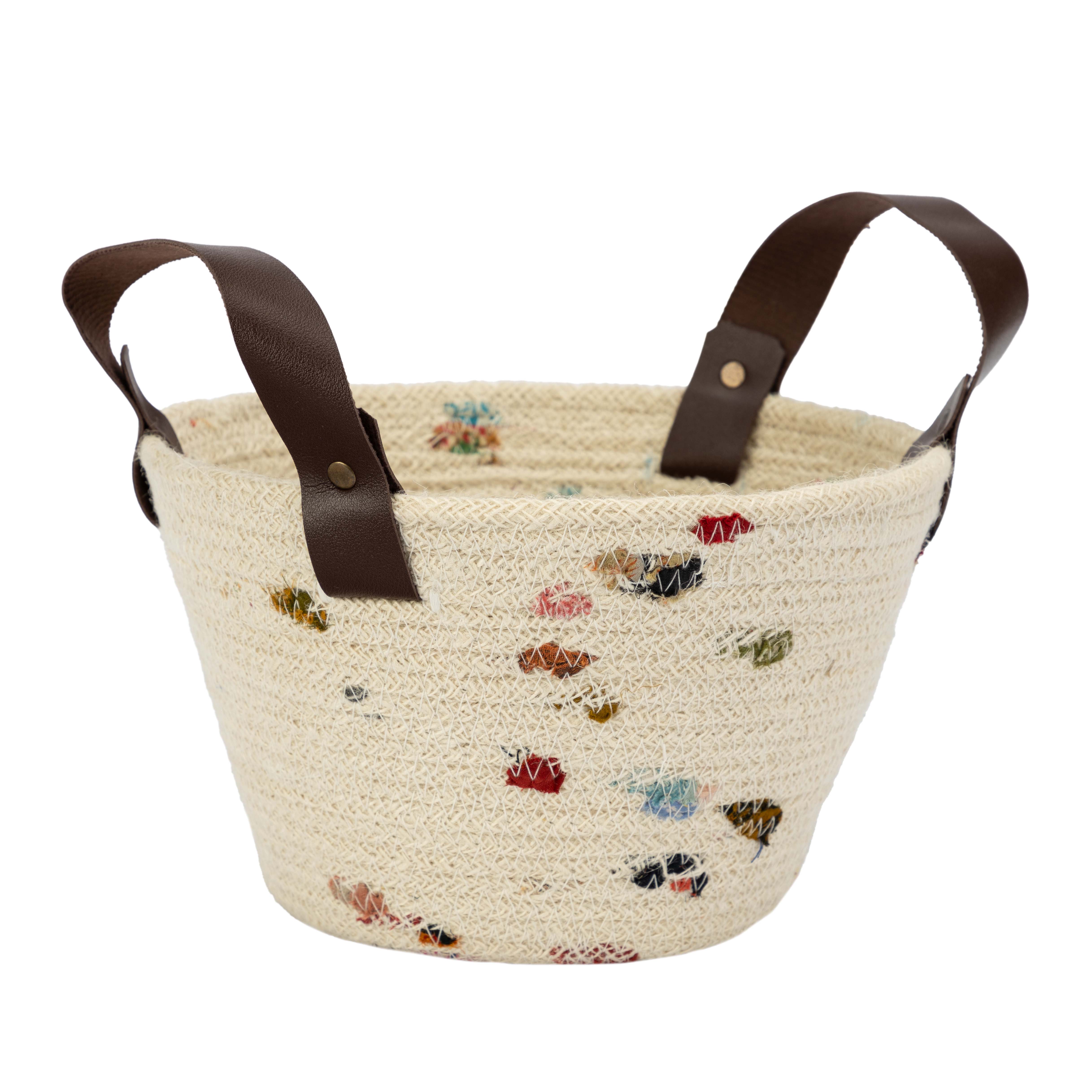 Jute, recycelte Sari-Stoffe, Kunstleder, beige/bunt, H 15 cm, Ø 24 cm