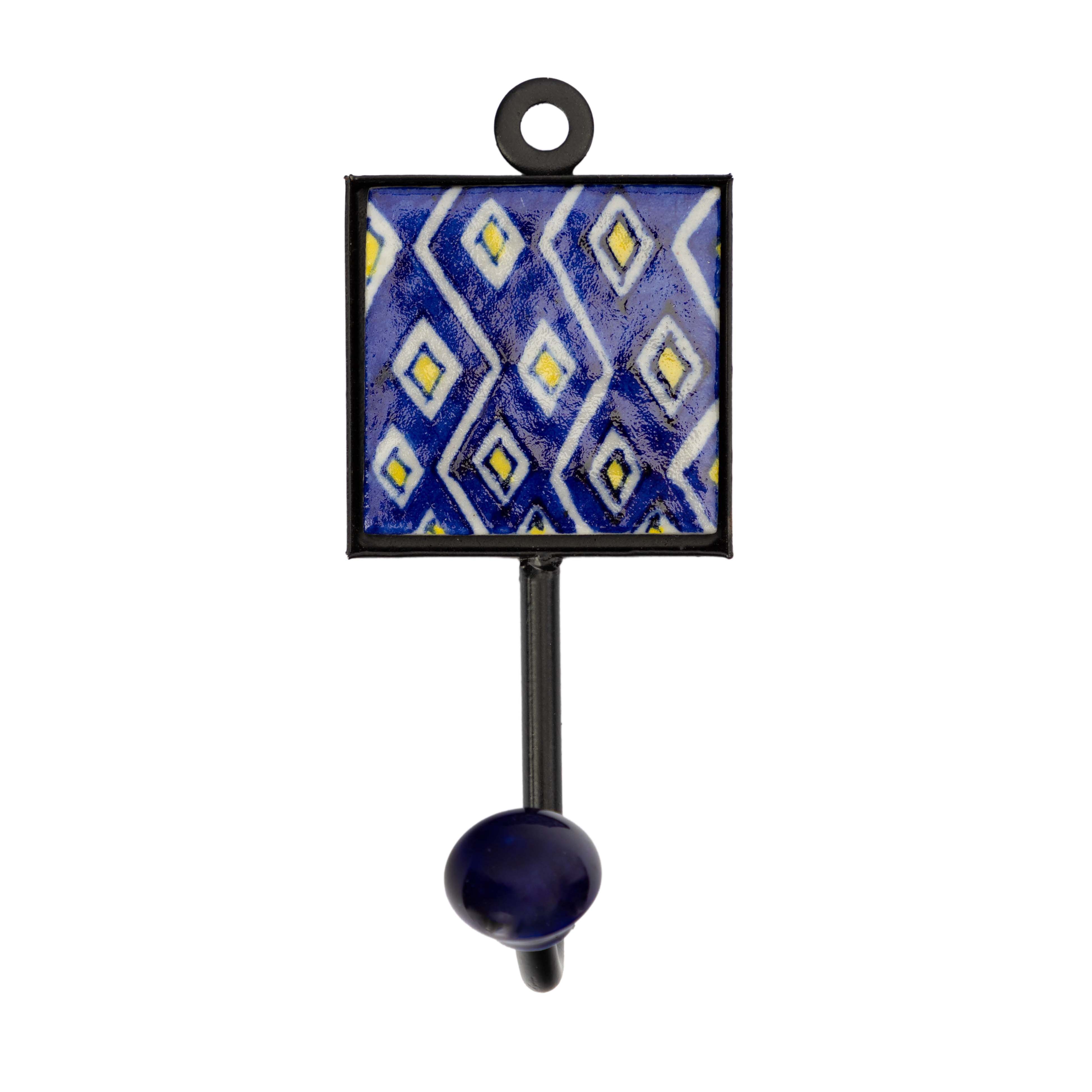 Keramikkachel, Eisen, handbemalt, blau/gelb/weiß, 5 x 5 cm