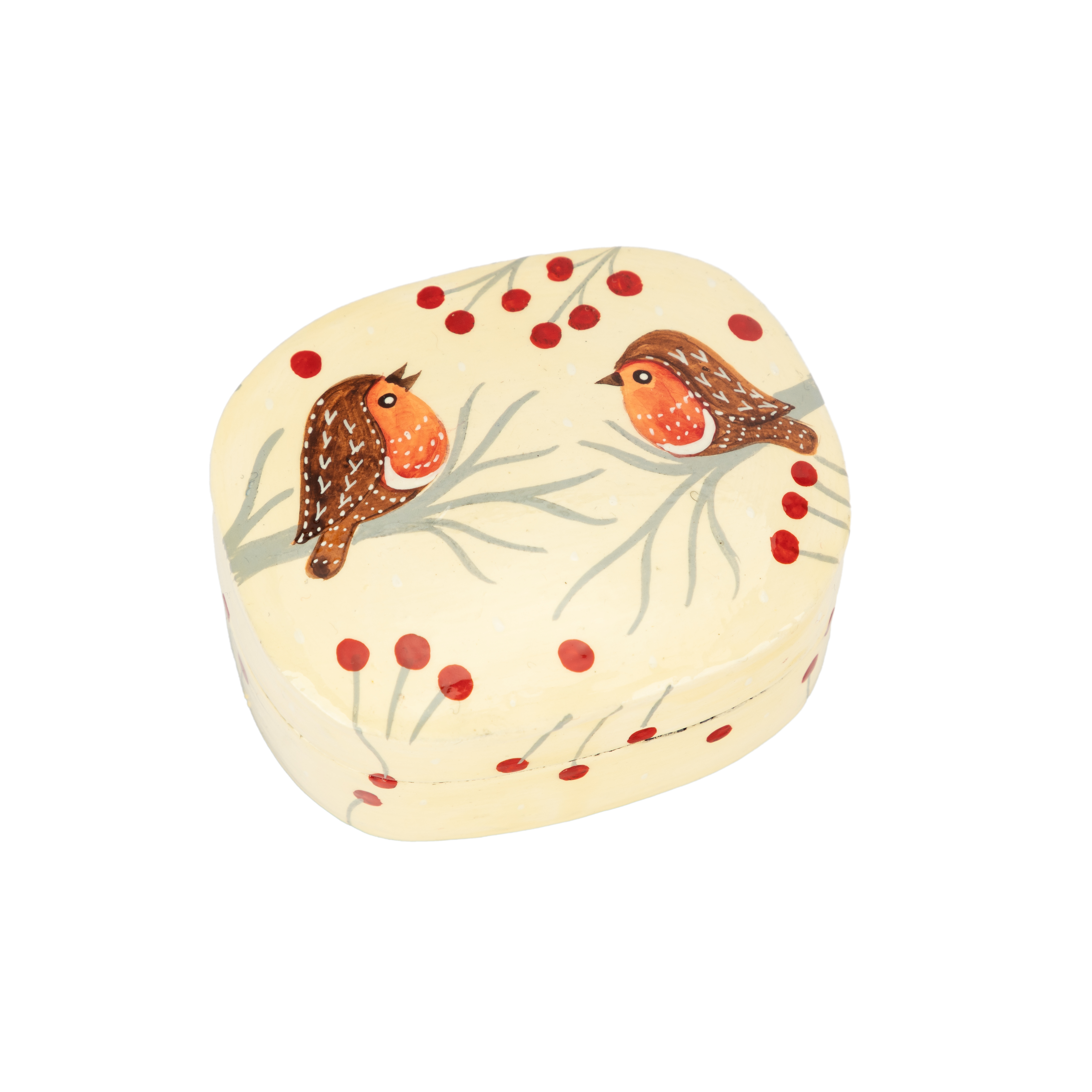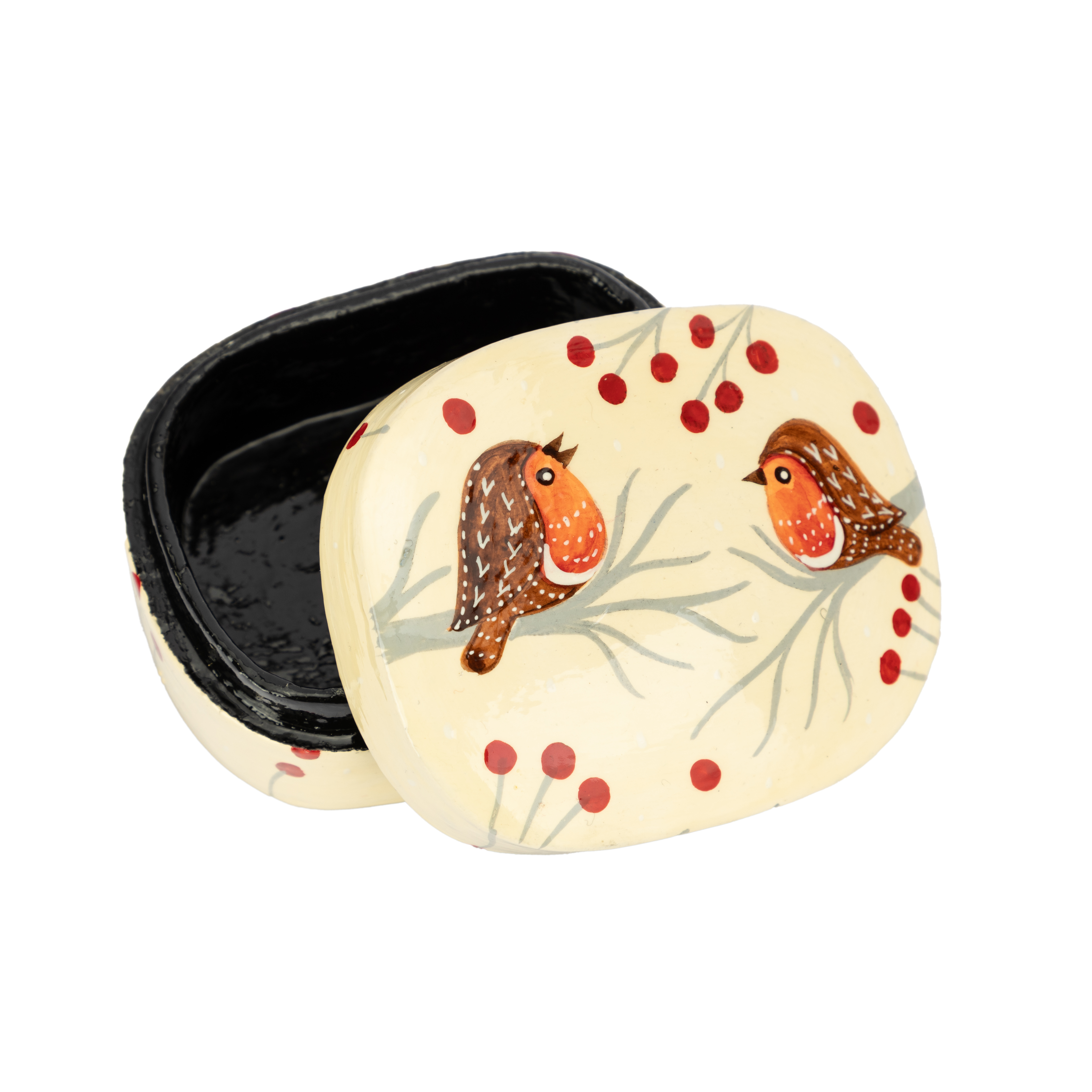 Pappmaschee, lackiert, handbemalt, creme/bunt, 8,5 x 7 x 3,5 cm