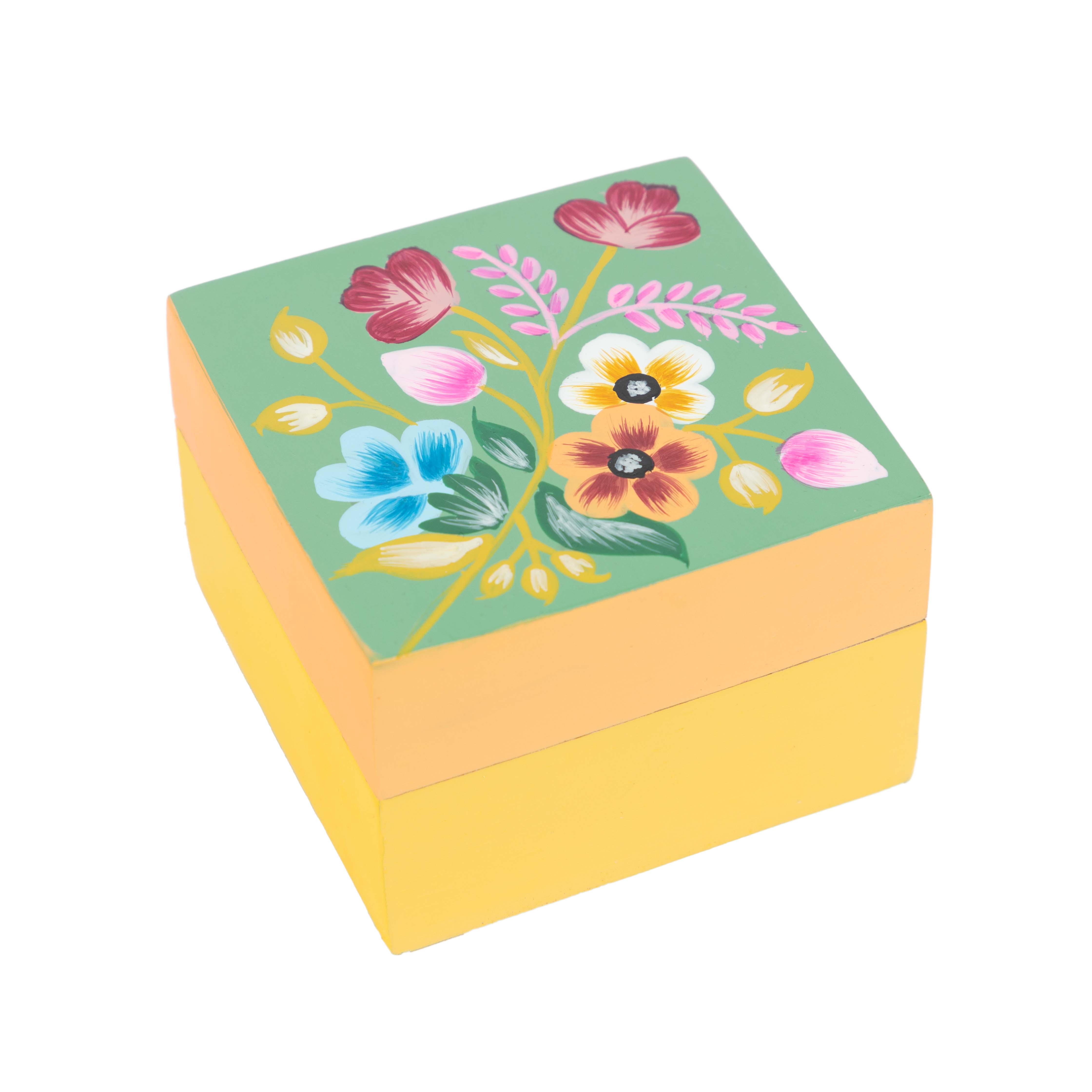 Mango-Holz, handbemalt, bunt, 7,5 x 7,5 x 4,5 cm