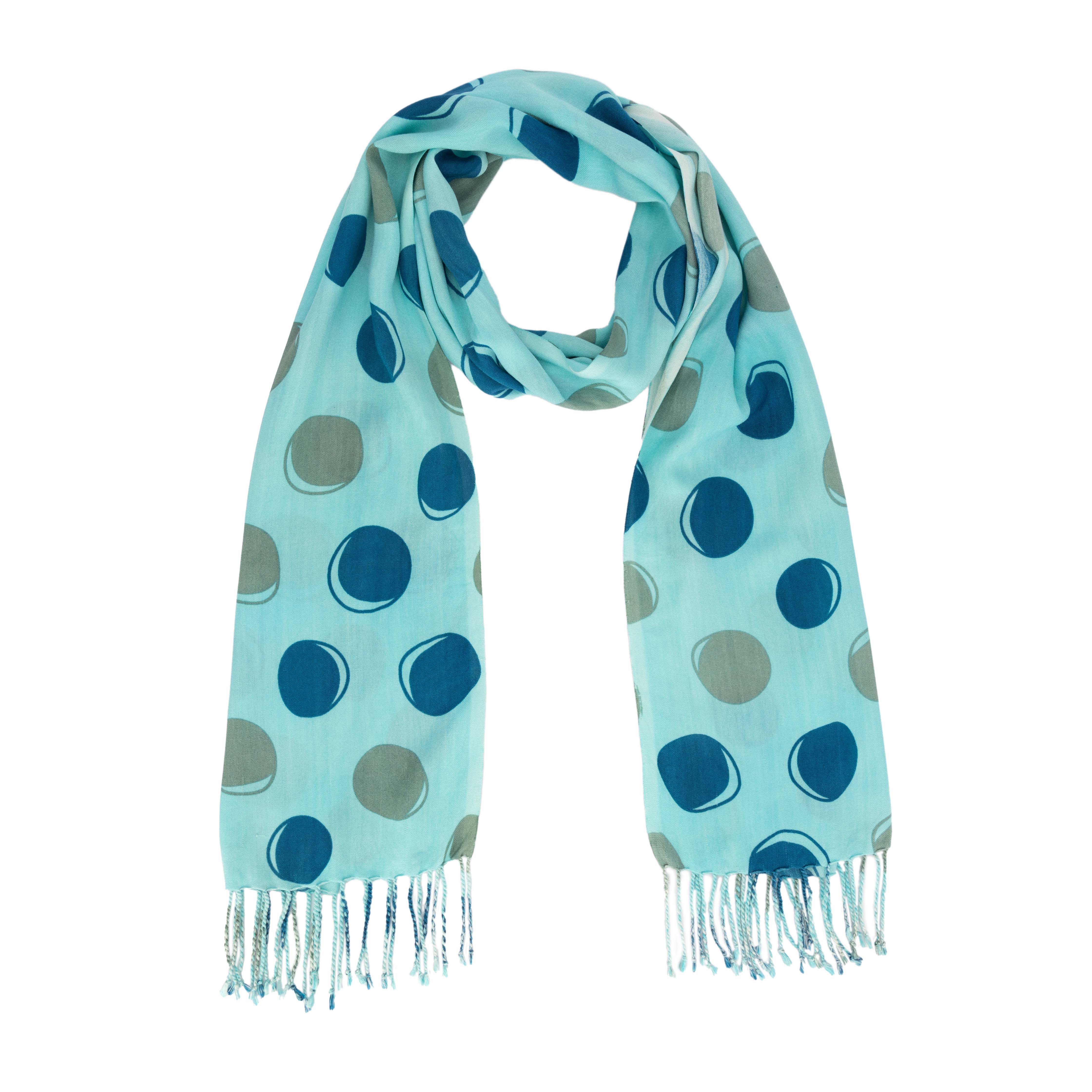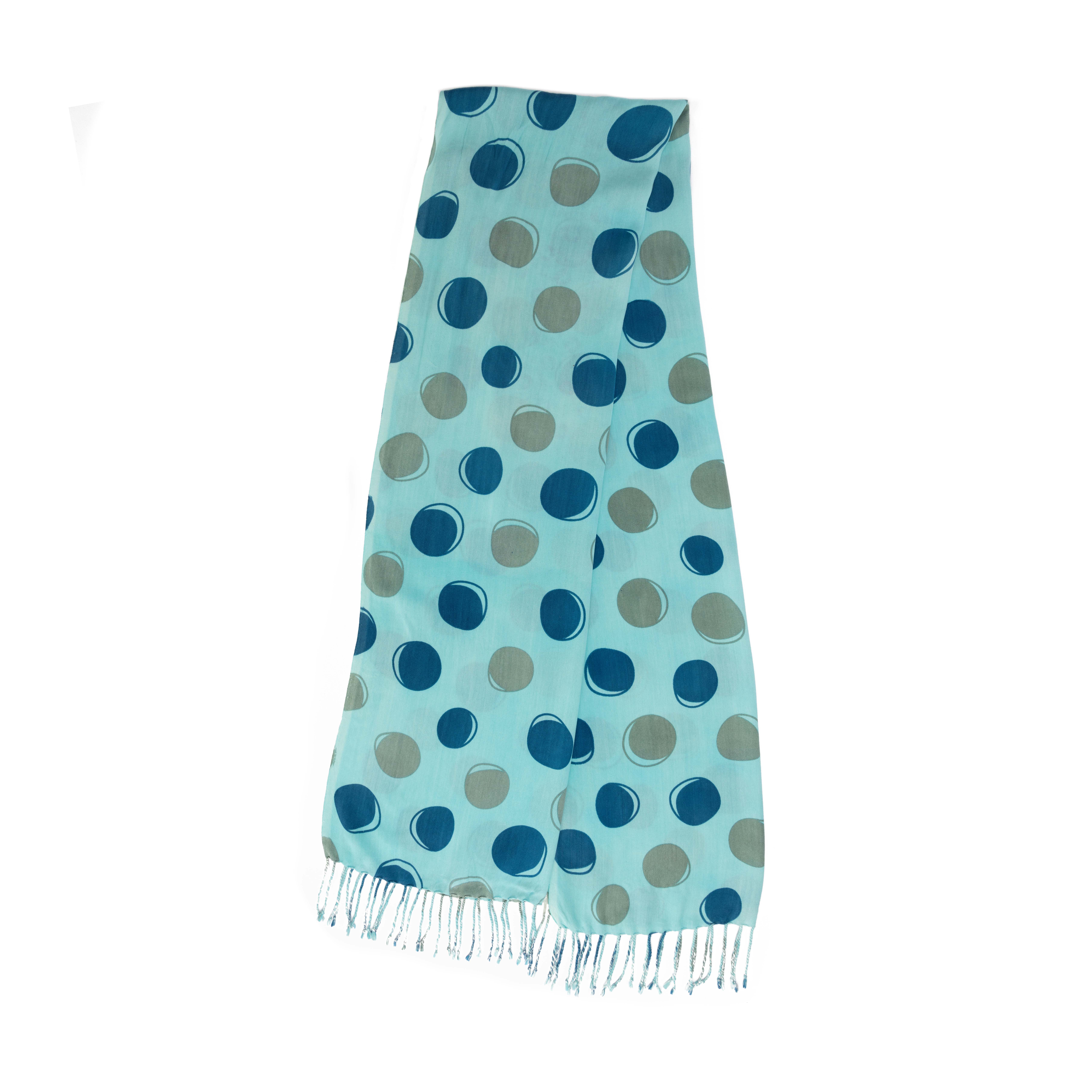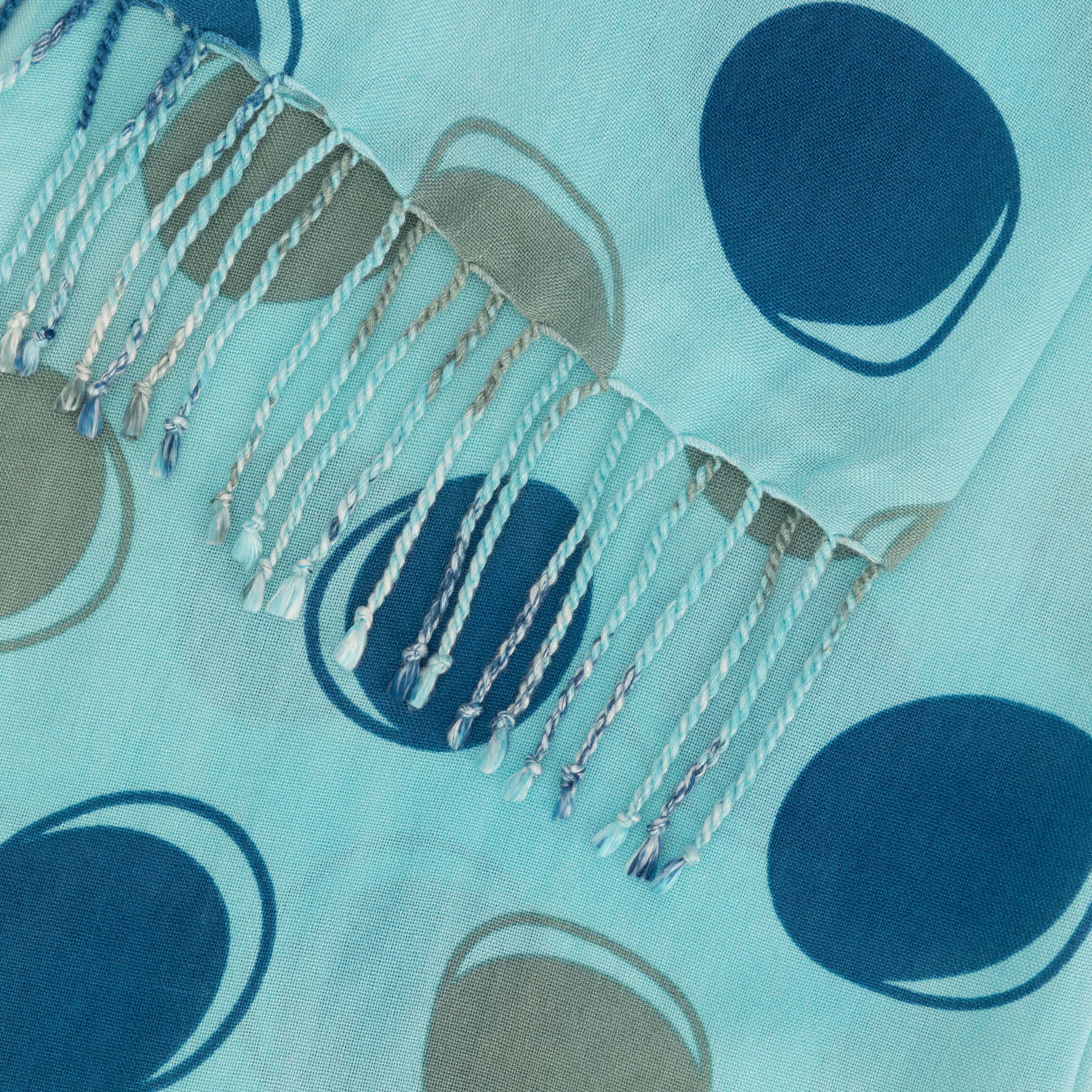 100% Viskose, handgewebt und -bedruckt, türkis/blau/grau, 50 x 180 cm