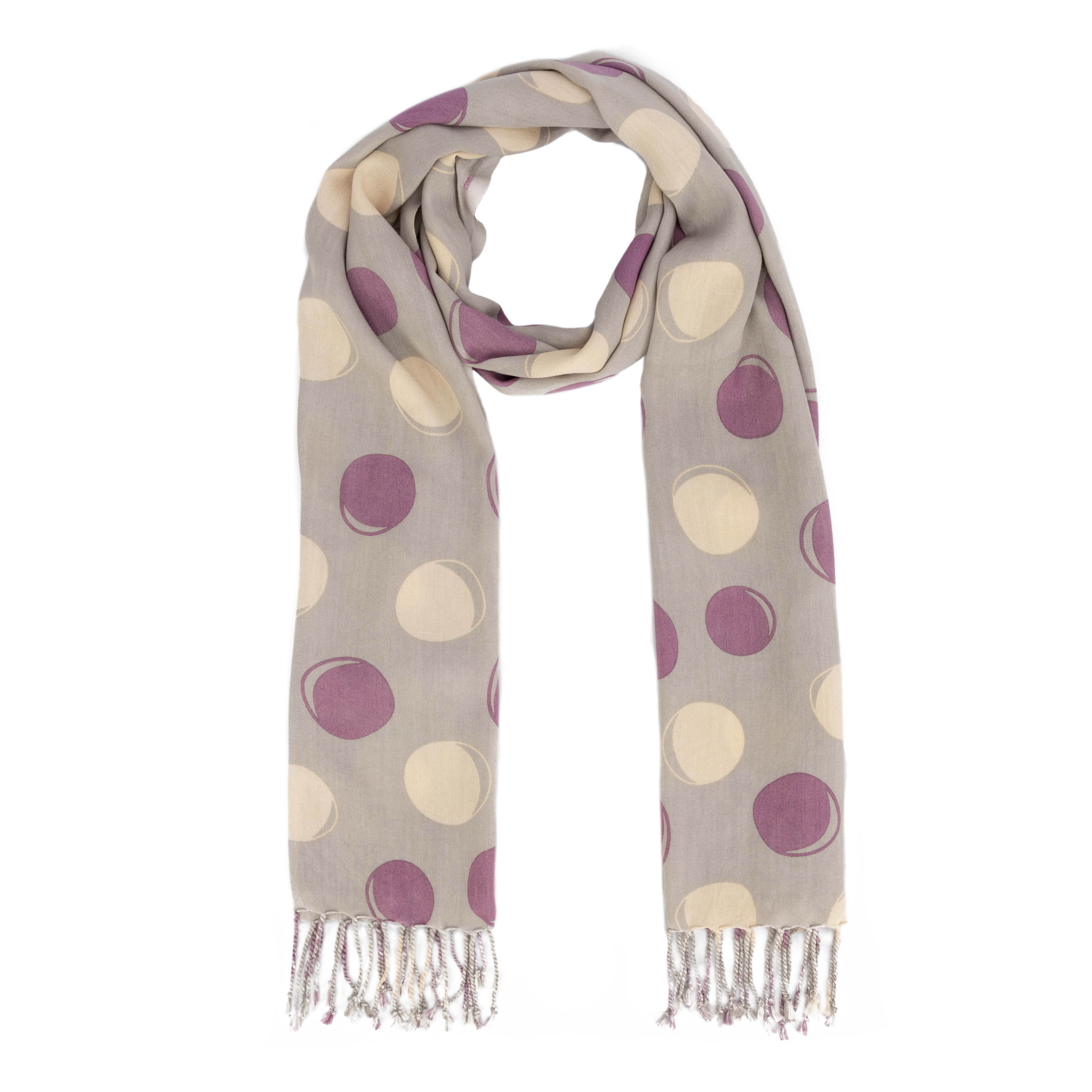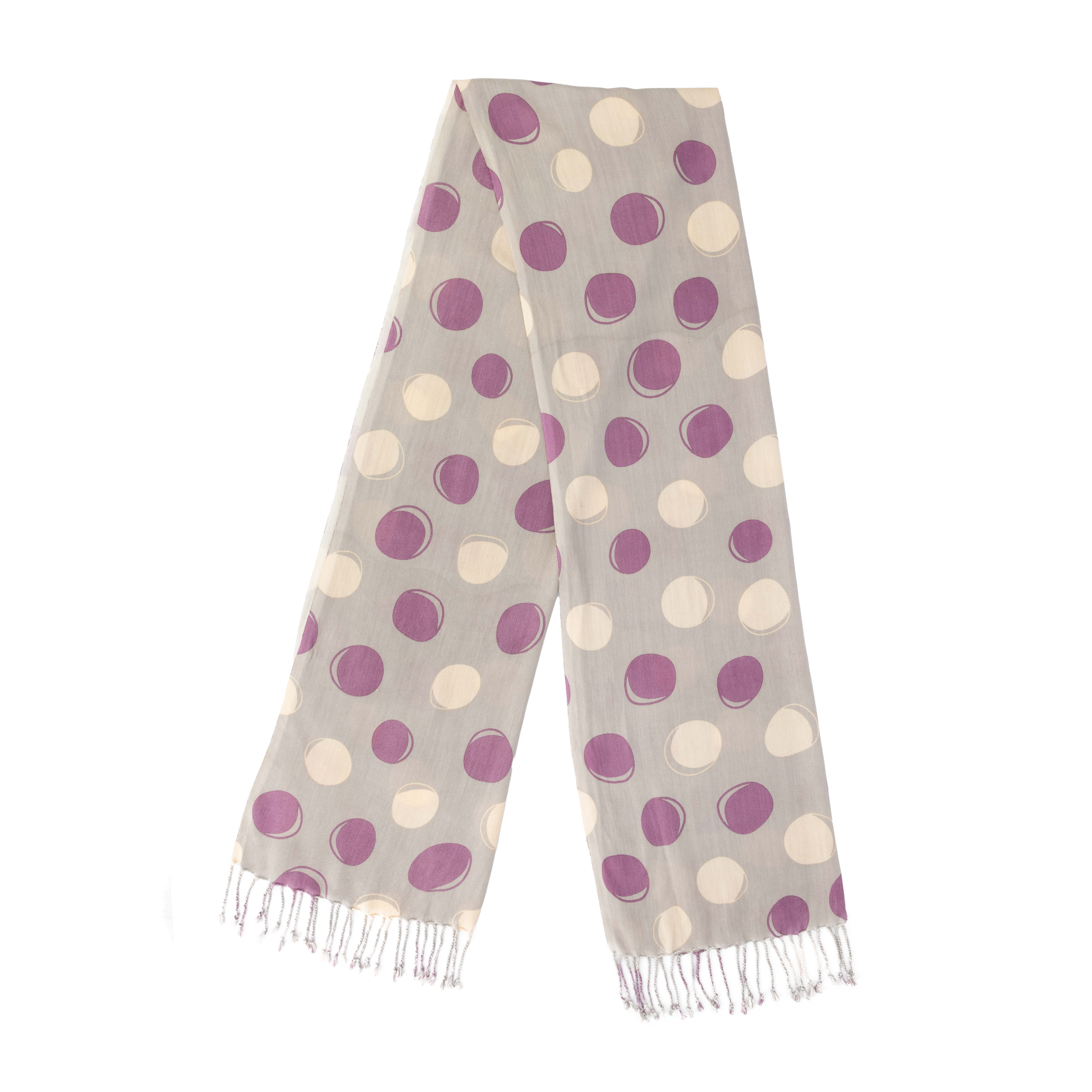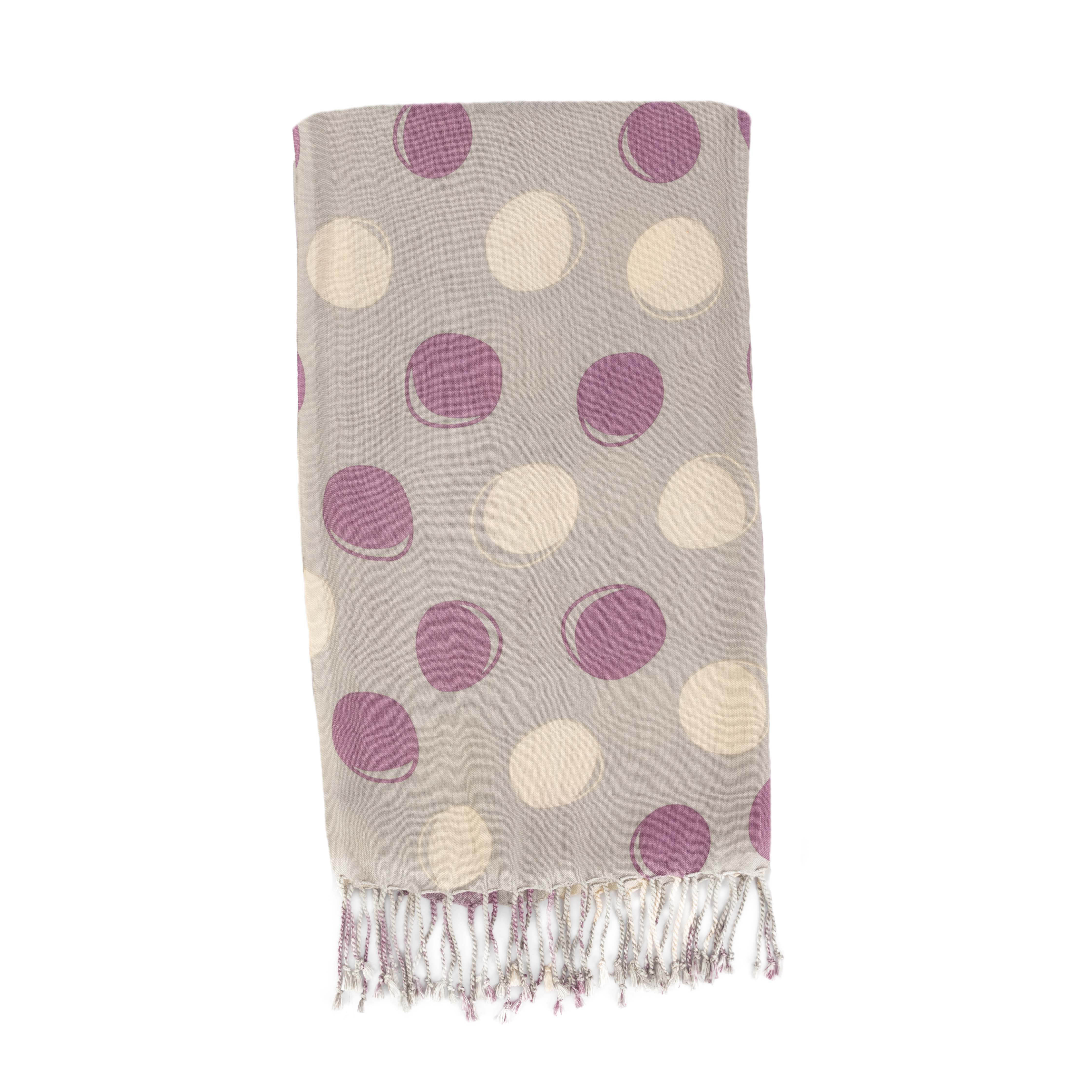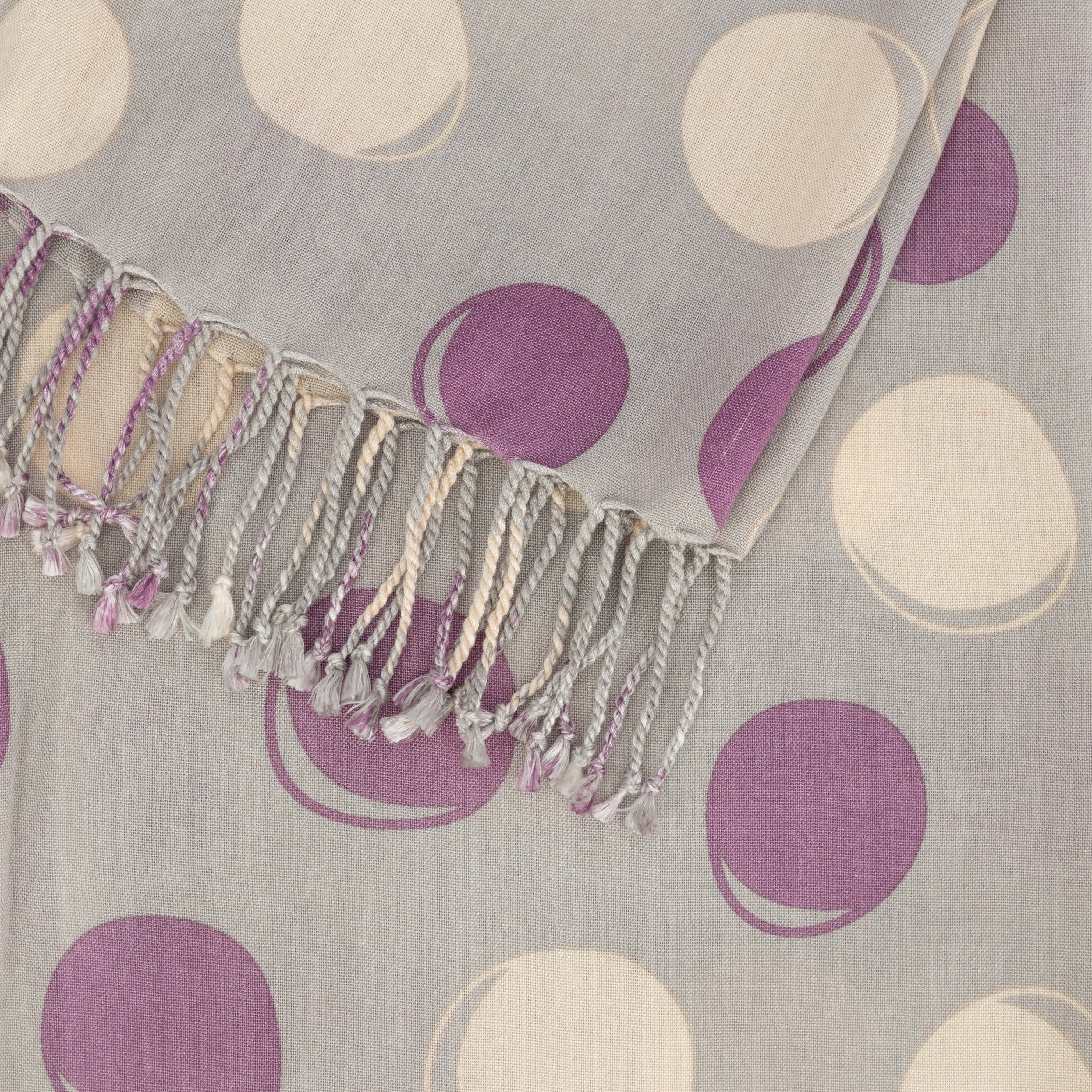 100% Viskose, handgewebt und -bedruckt, grau/weiß/lila, 50 x 180 cm