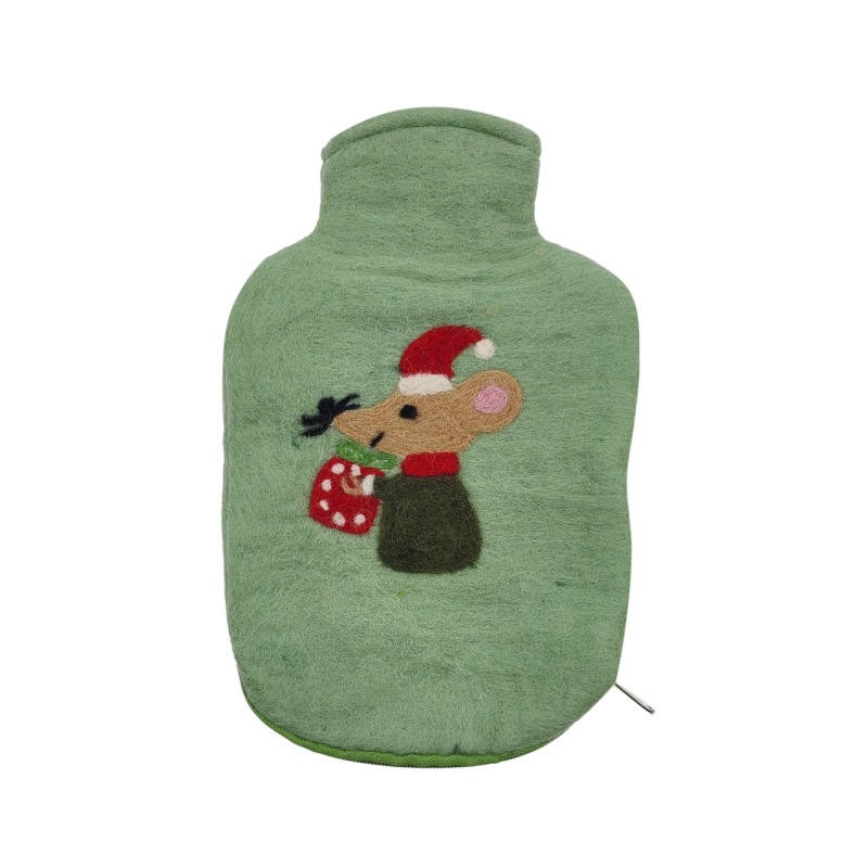 Waermflaschenueberzug Maus mit Geschenk, hellgruen (0,8l)