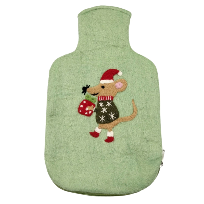 Waermflaschenueberzug Maus mit Geschenk, hellgruen (2,0l)